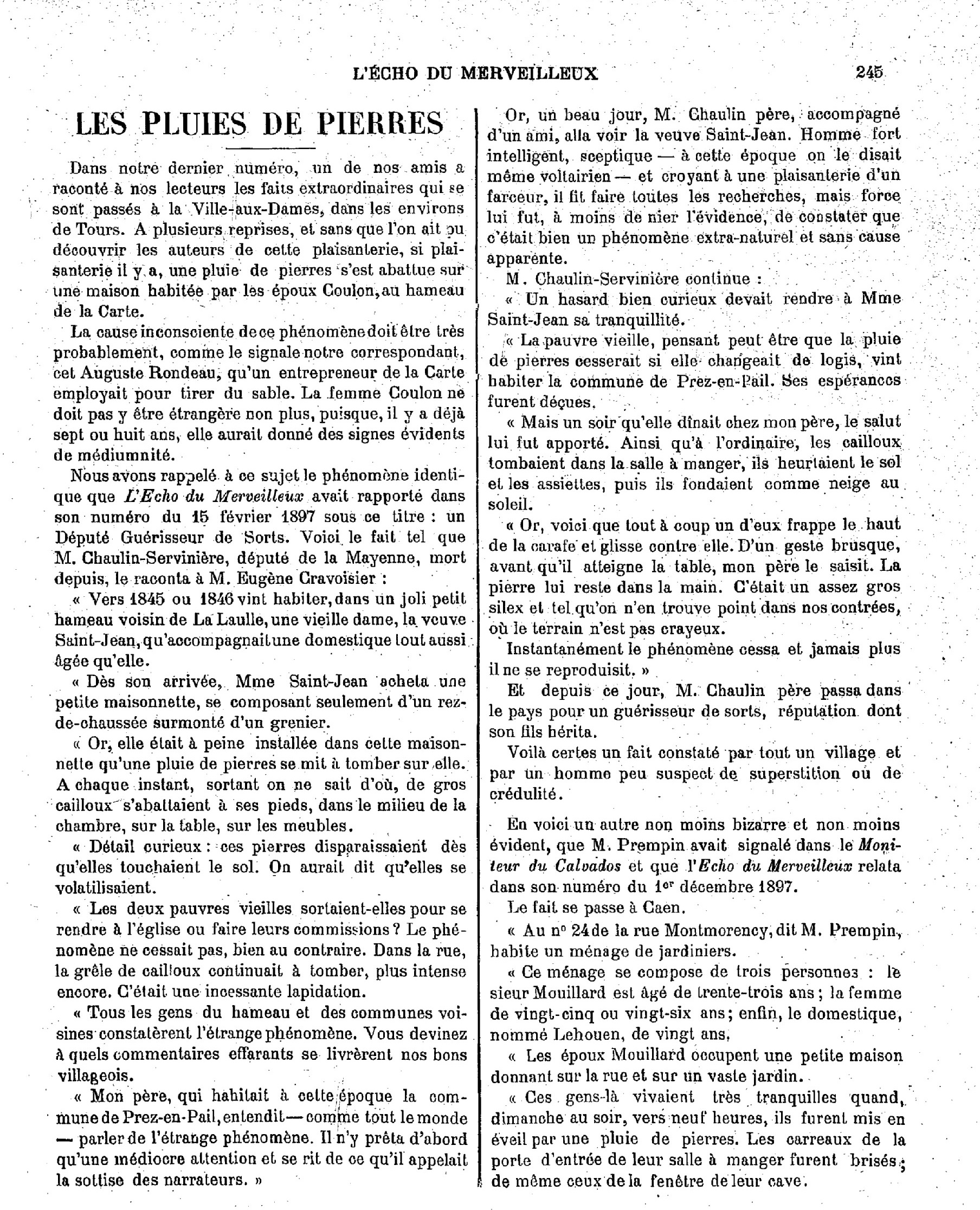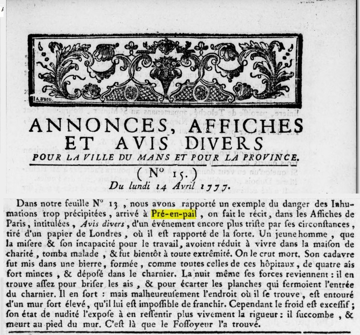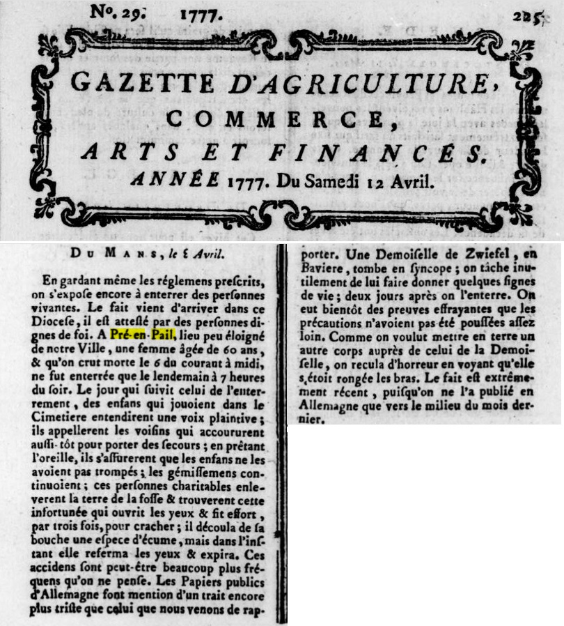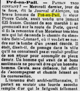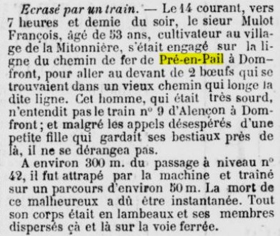 Le mystère de pré-en-pail qui se serait déroulé vers 1845 ou 1846, vu