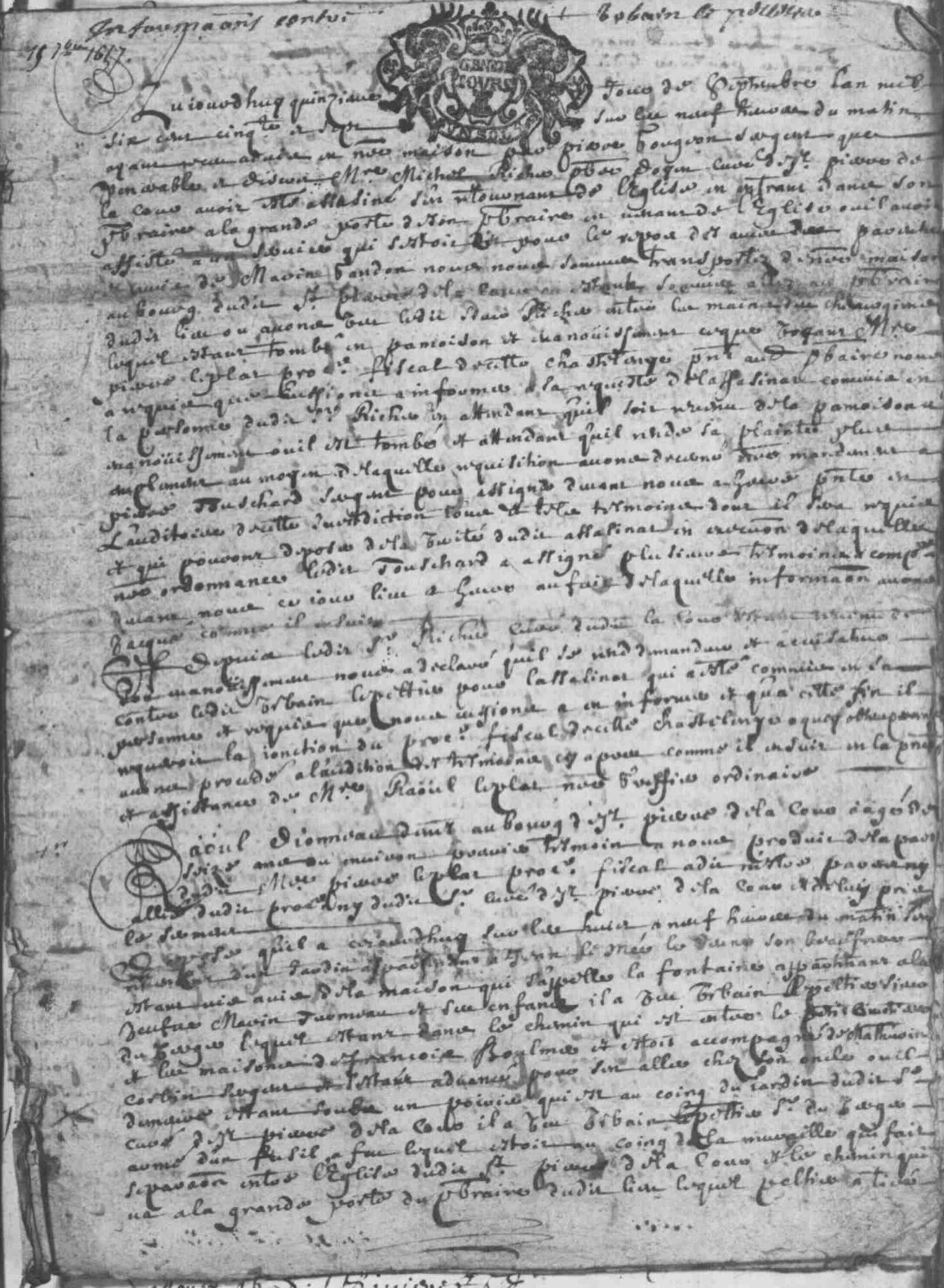 concernant l’assassinat du Sieur curé Michel RICHER le 15/09/1657 entre