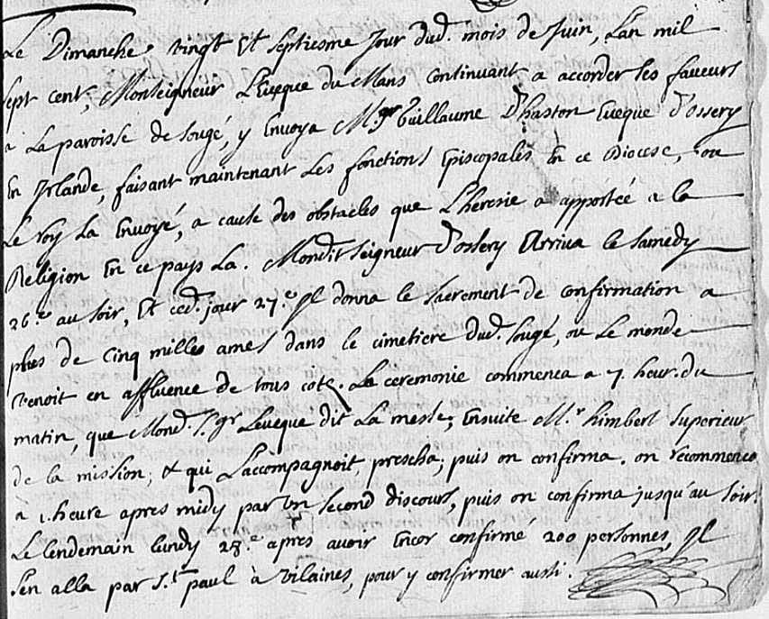 l3 - à la paroisse de Sougé y envoya Mgr Guillaume d'HASTON Evesque d'OSSERY