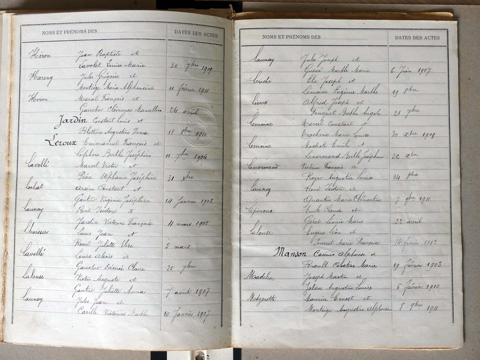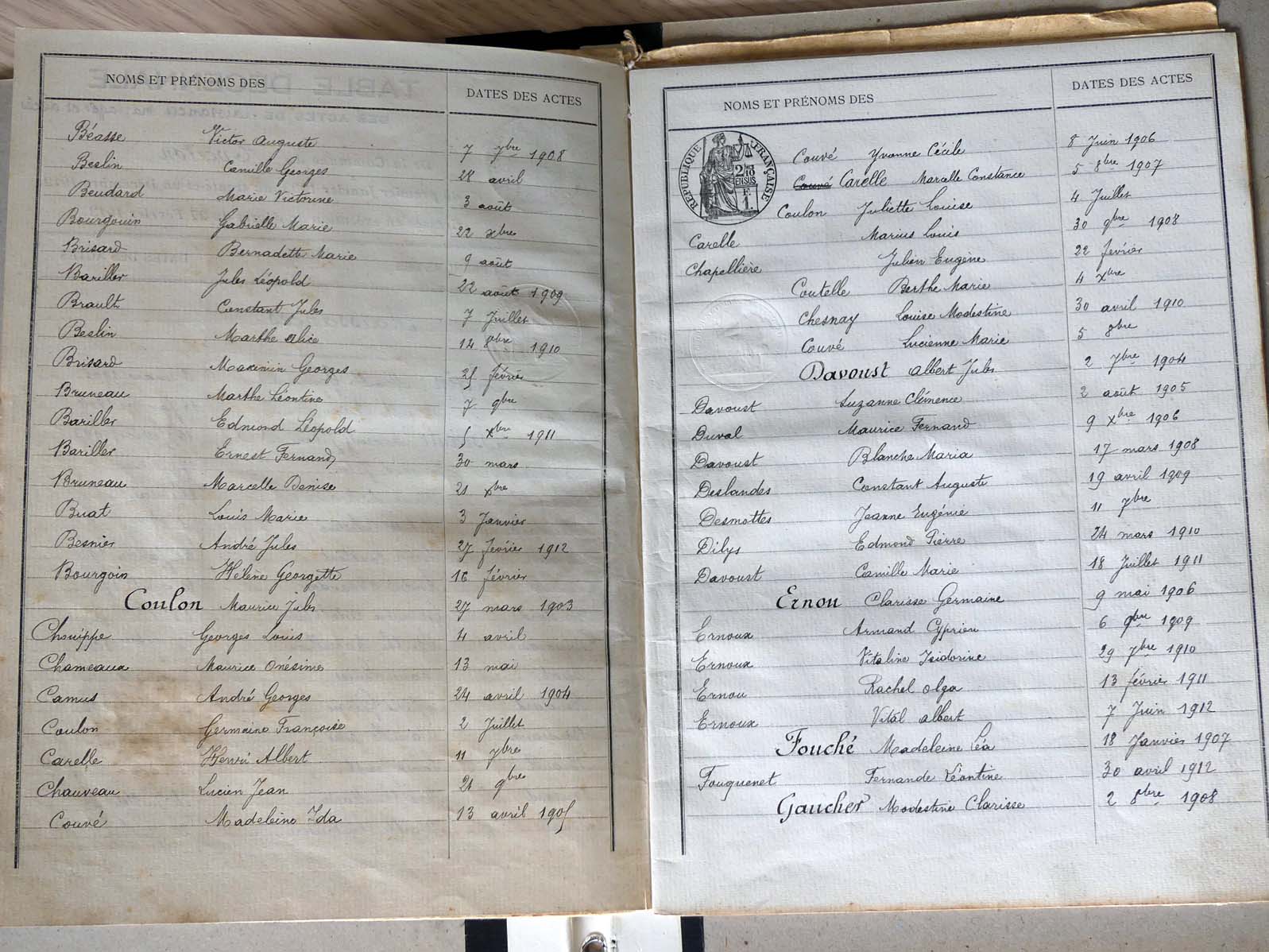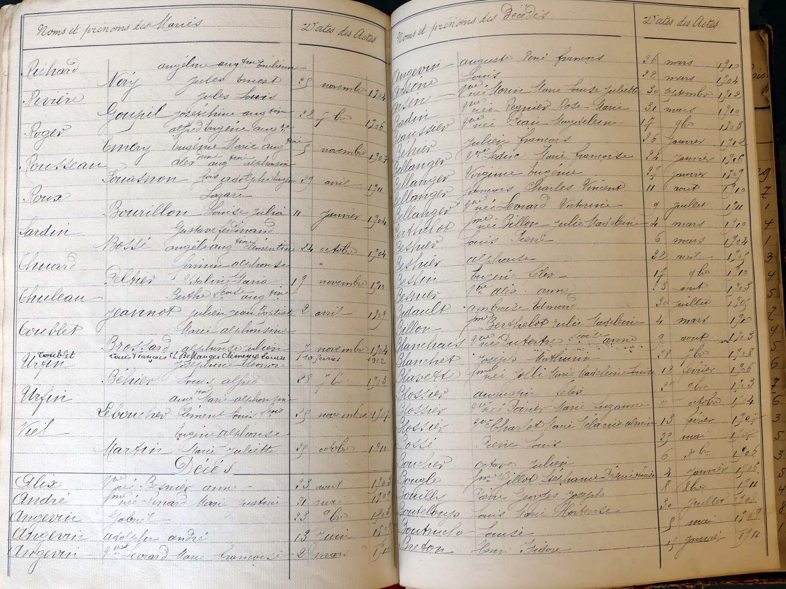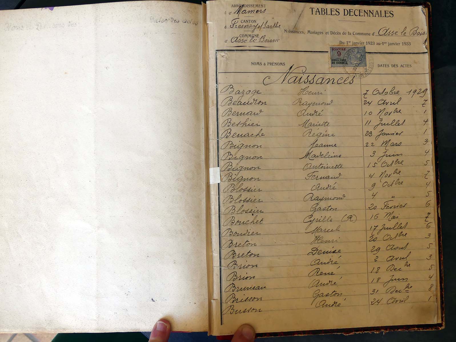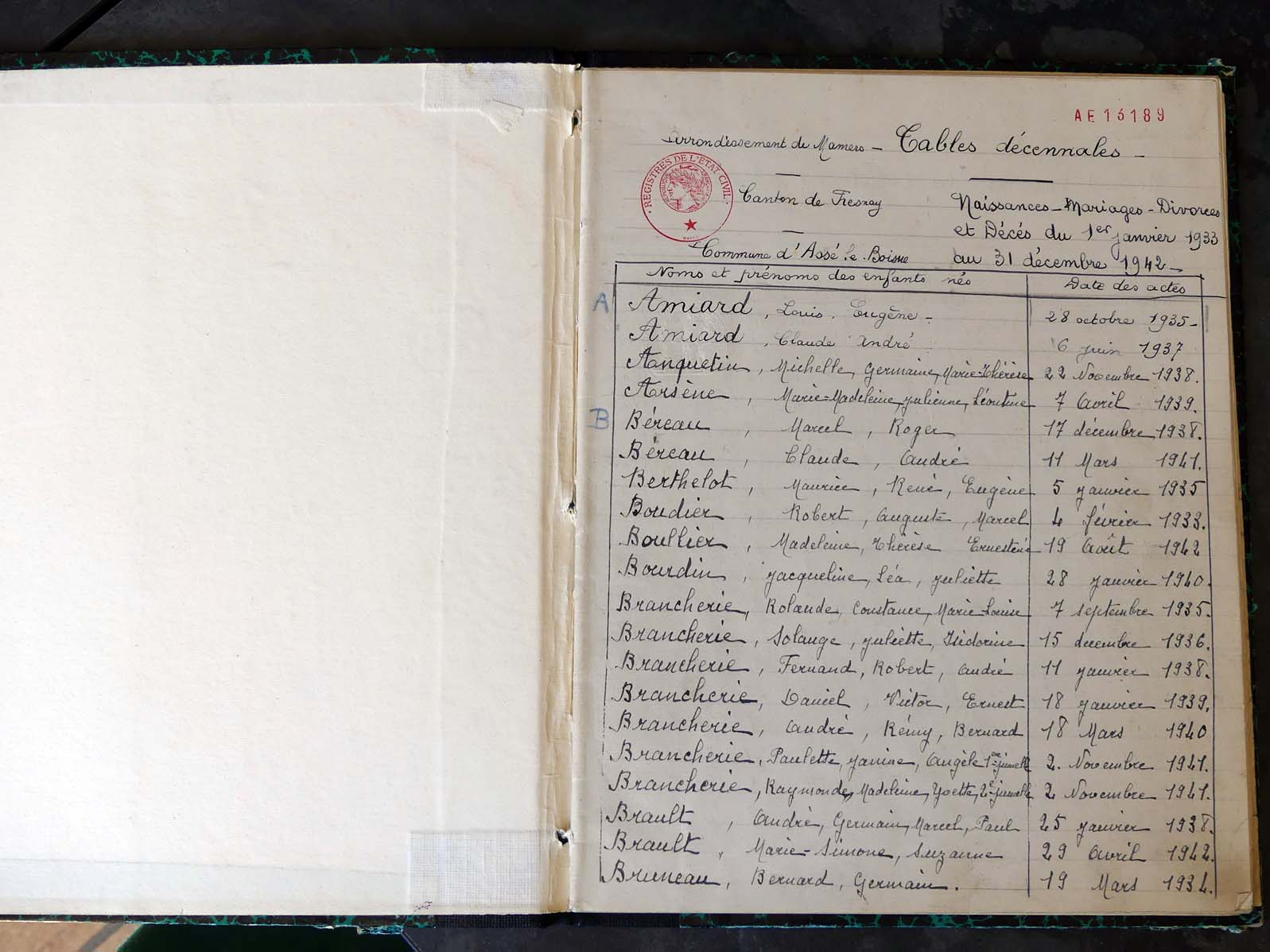 Ressources généalogiques d'Assé-le-Boisne - Tables décennales 1903 → 1942