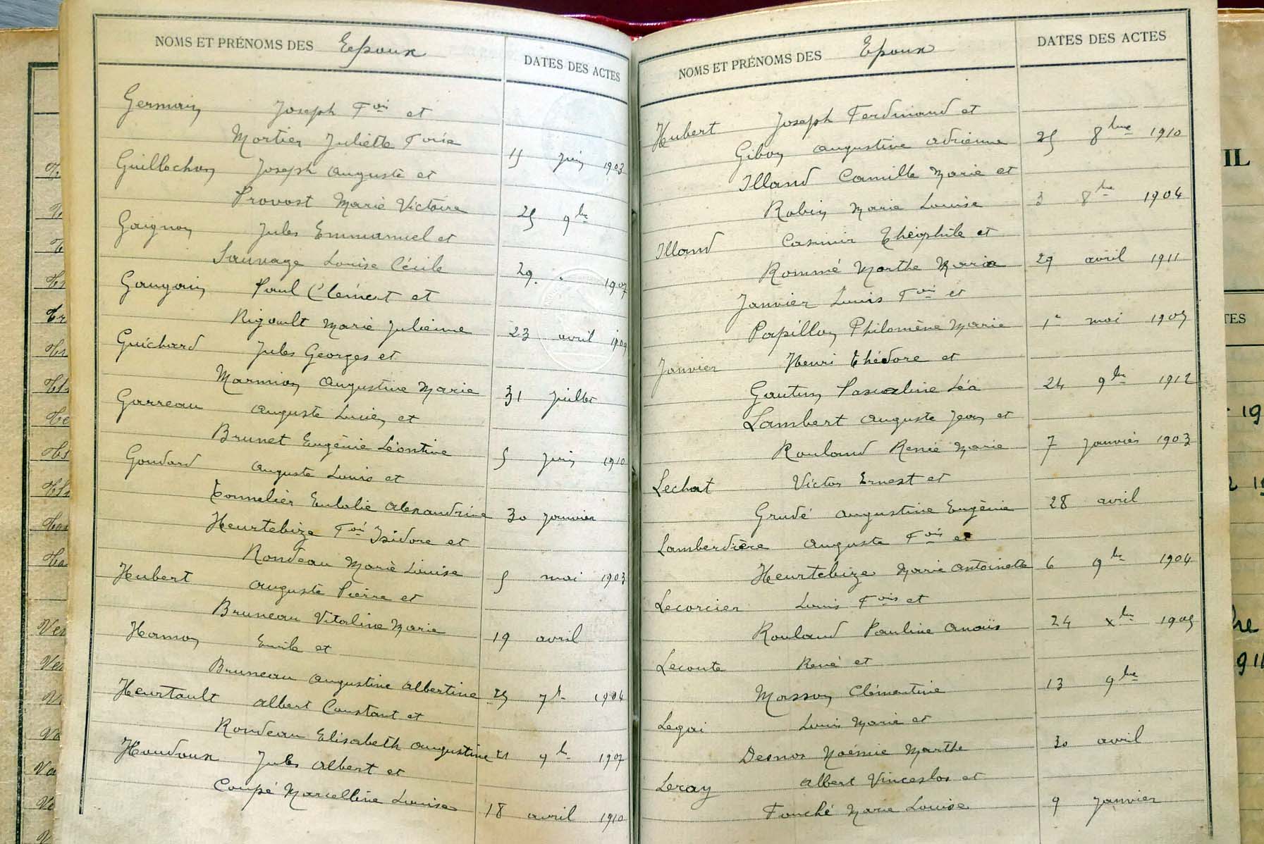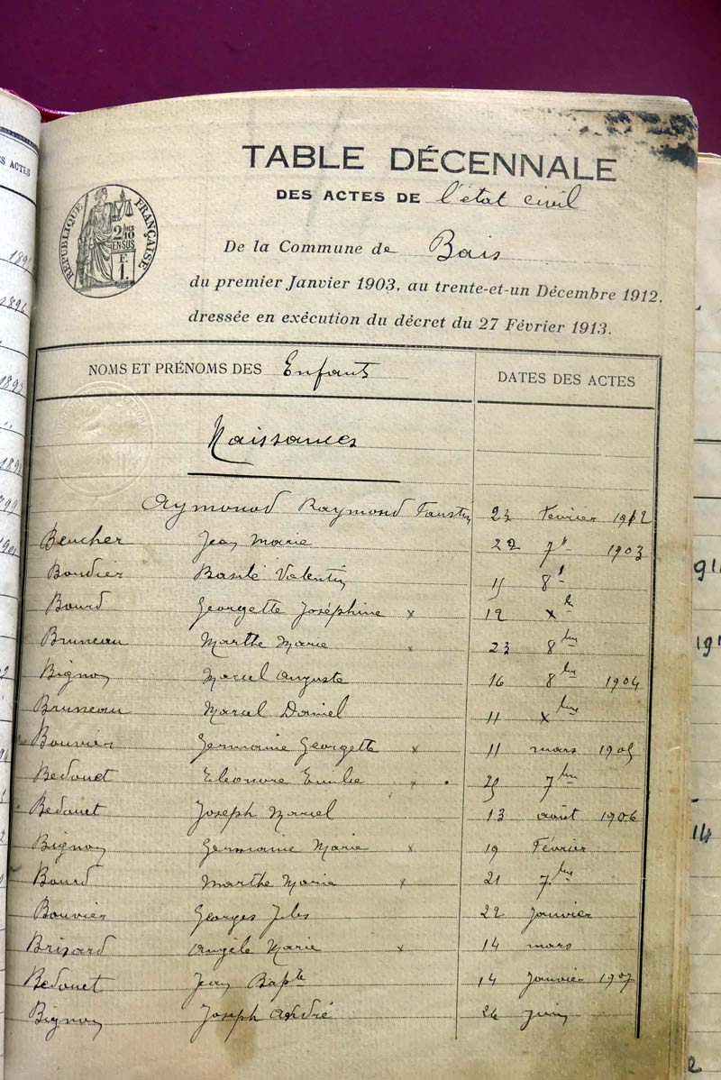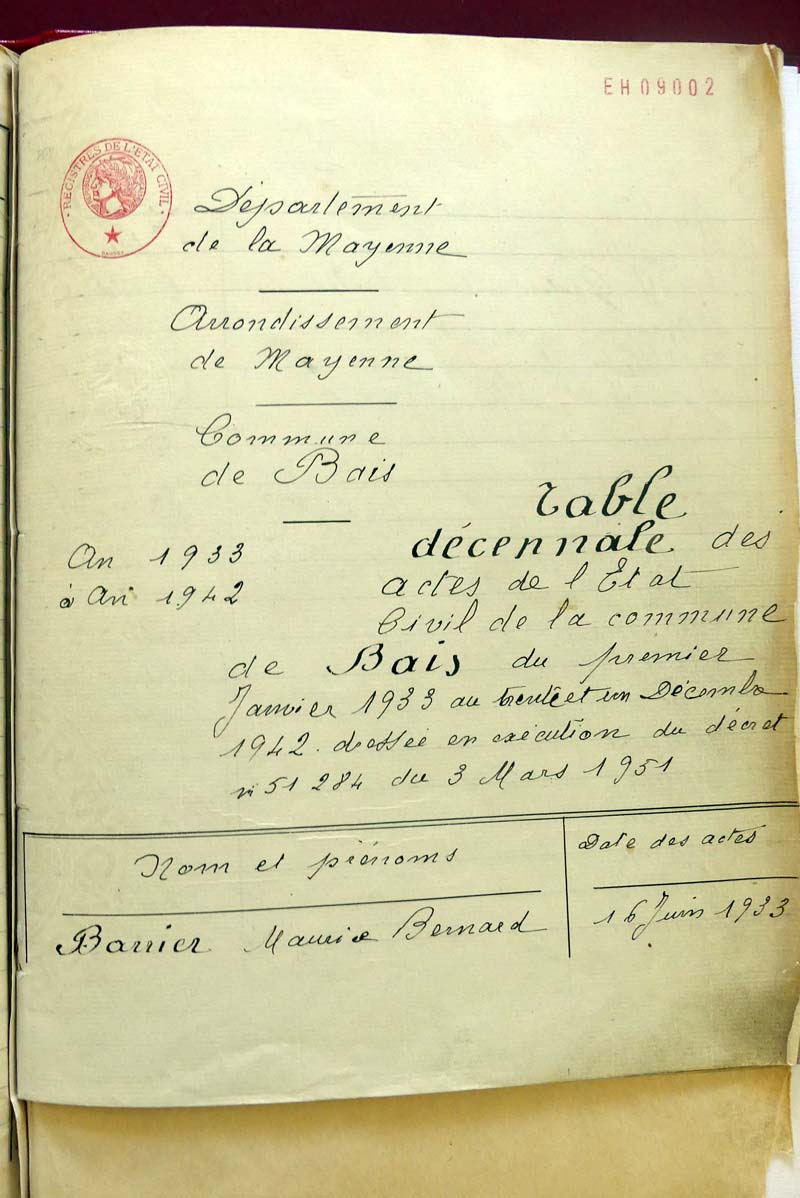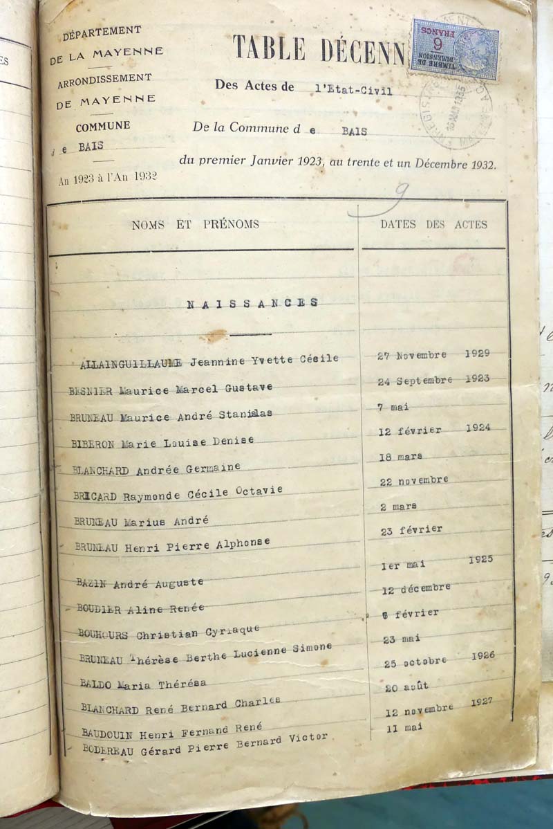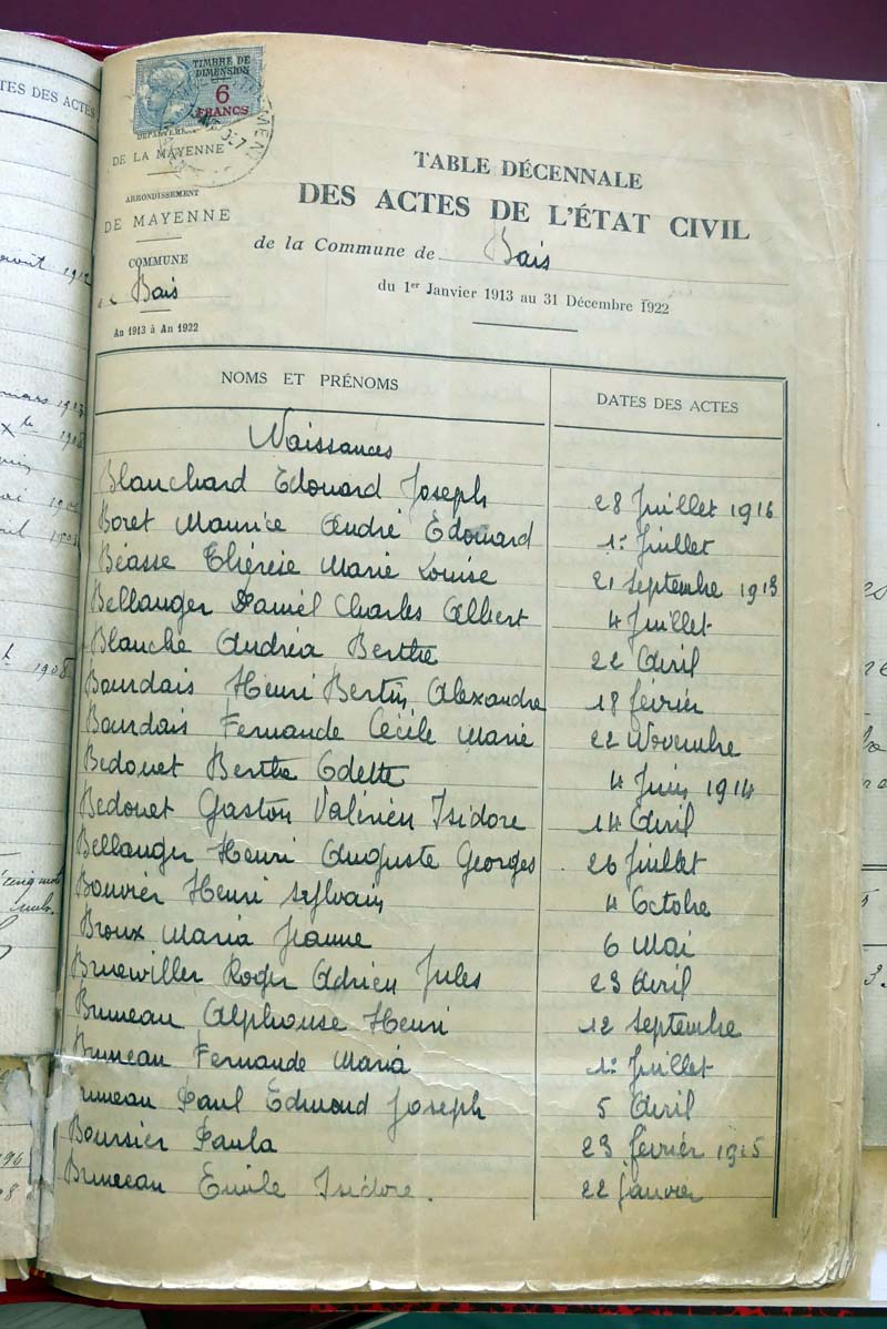 Ressources généalogiques de Bais - Tables décennales 1903 → 1942
