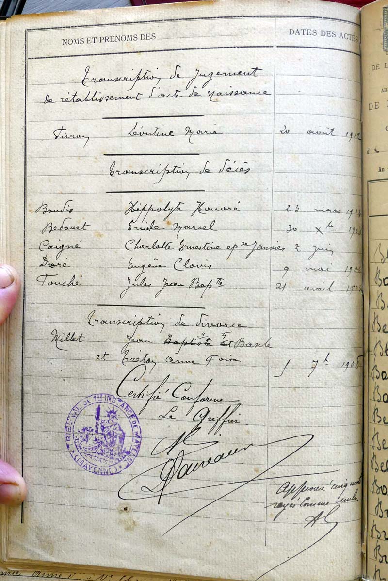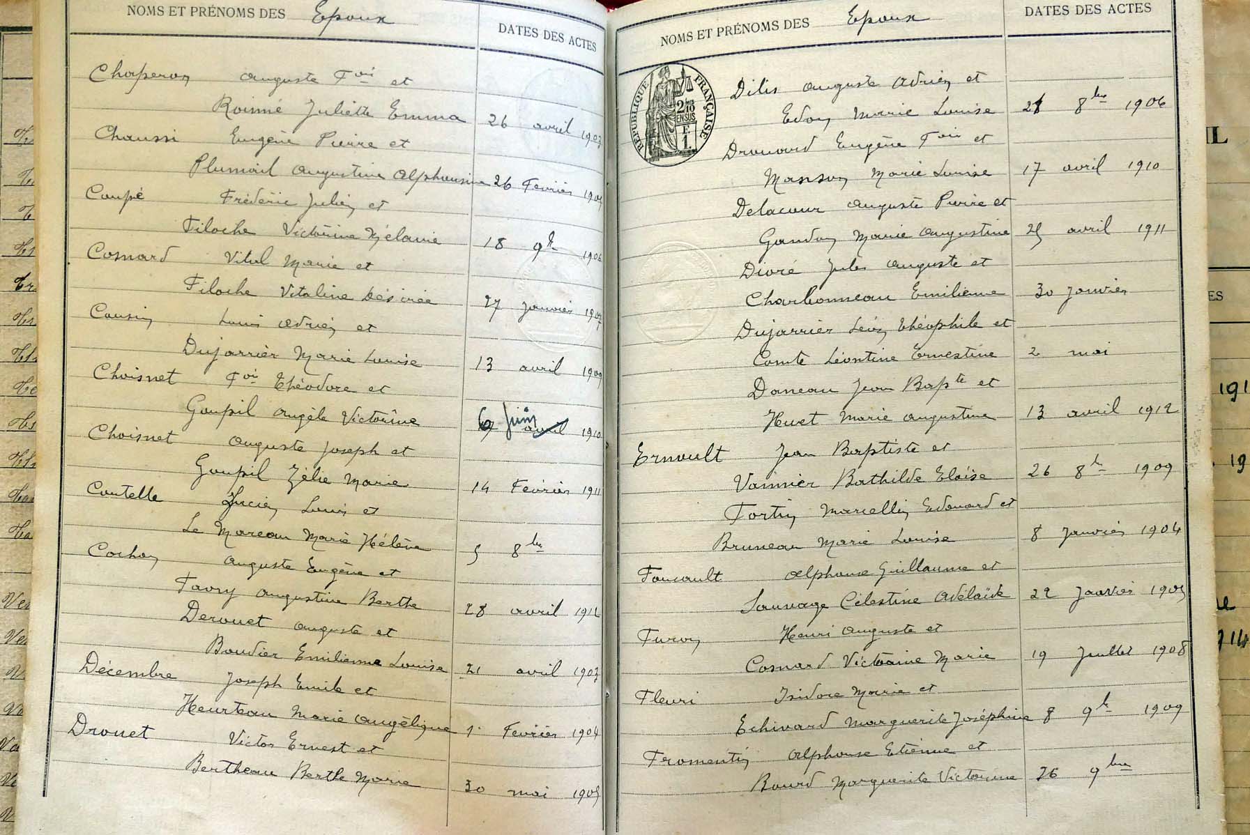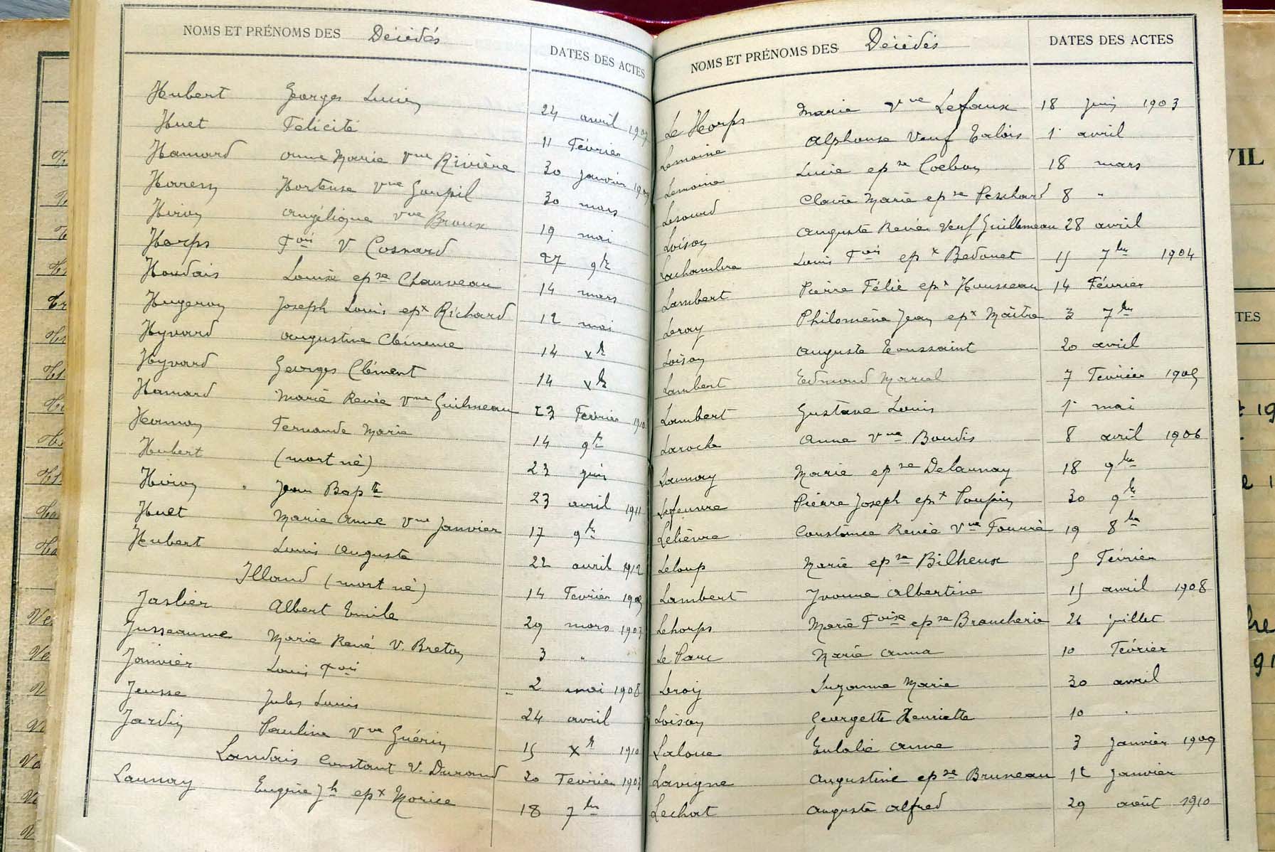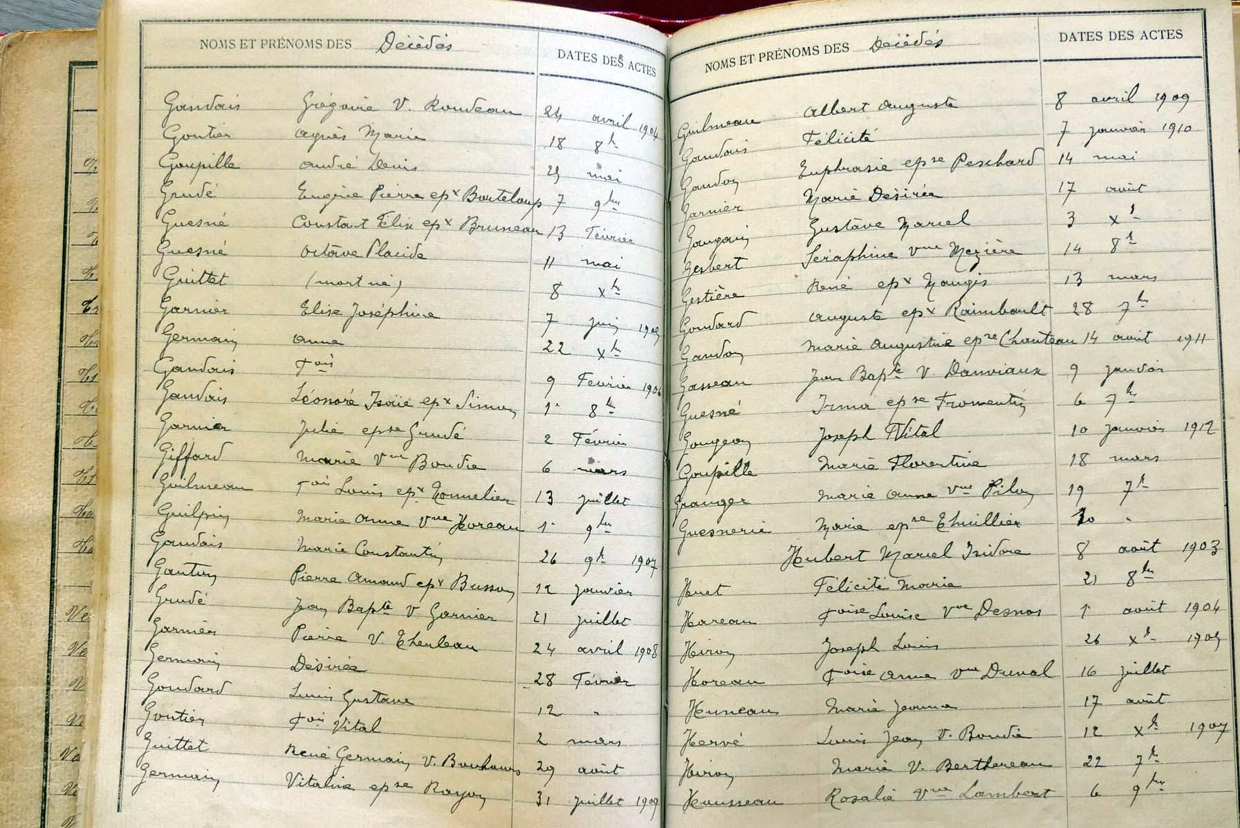 Ressources généalogiques de Bais - Tables décennales 1903 → 1942