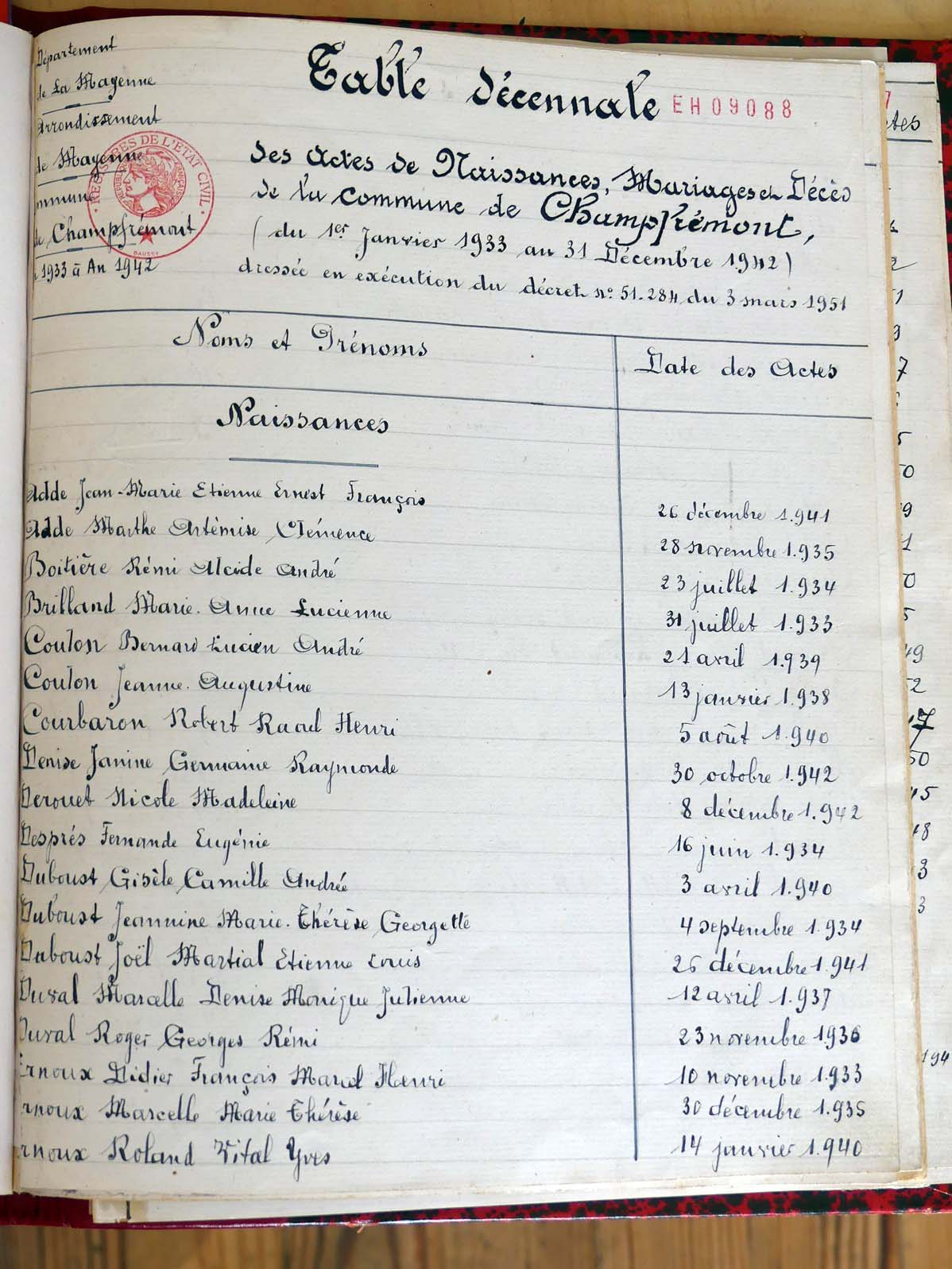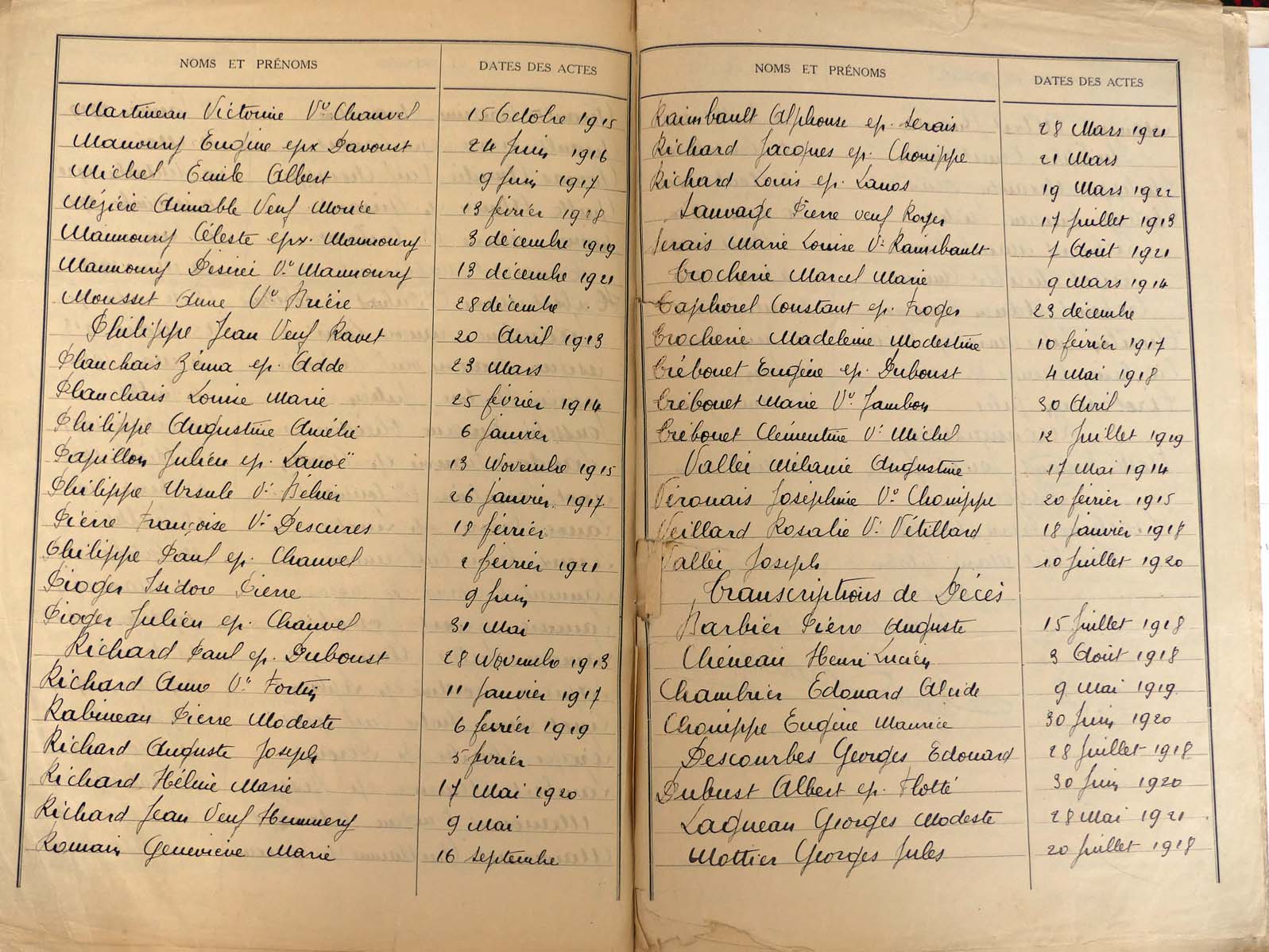 - Tables décennales 1913 → 1942