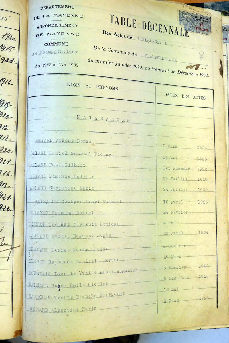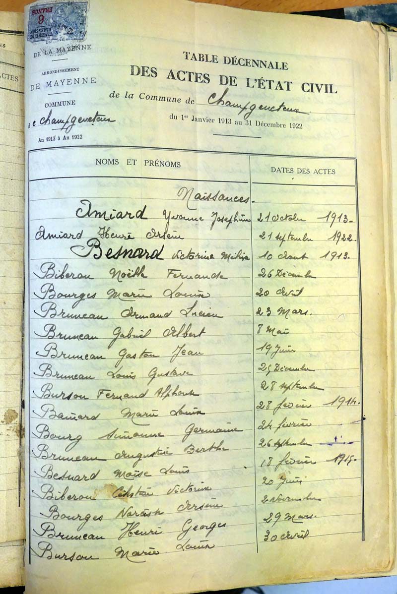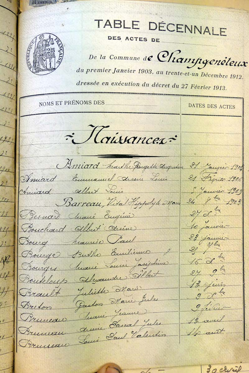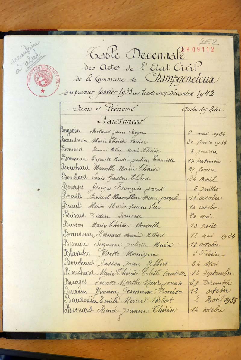 Ressources généalogiques de Champgenéteux - Tables décennales 1903 → 1942