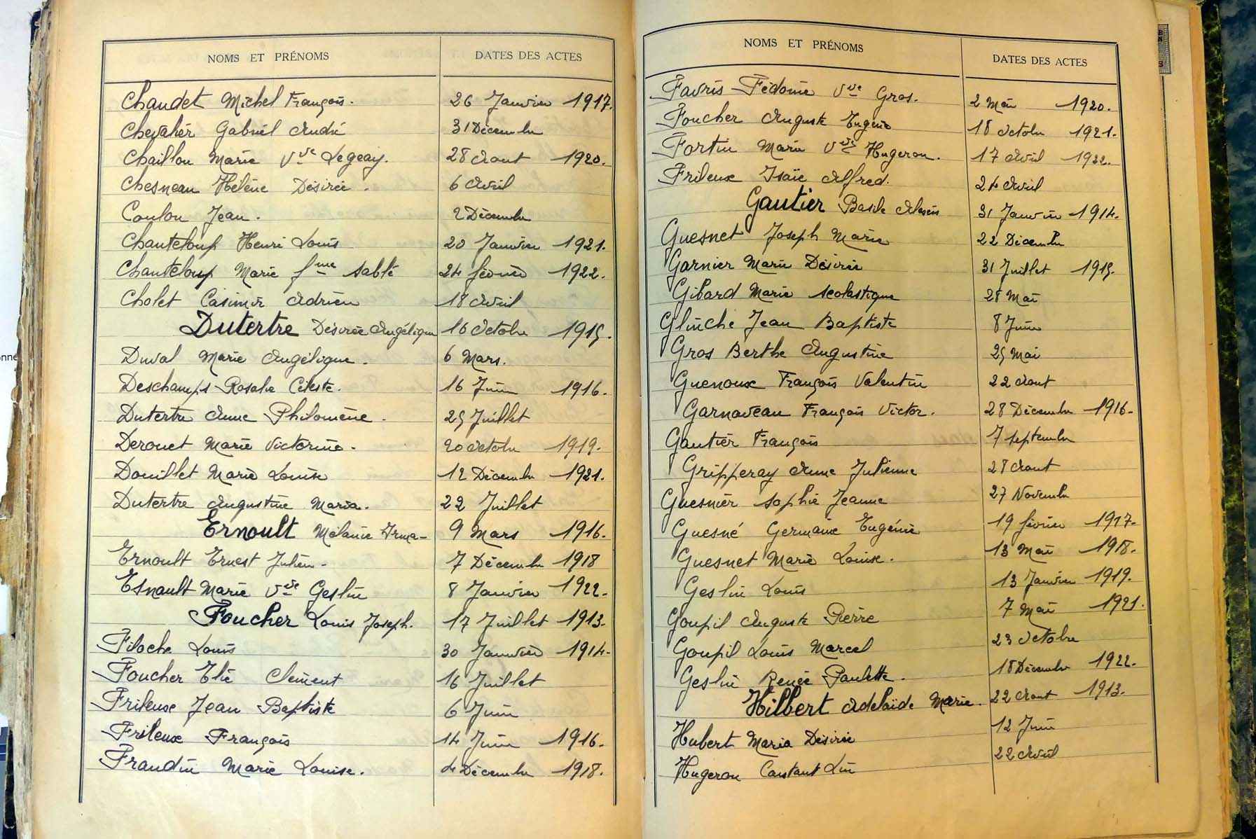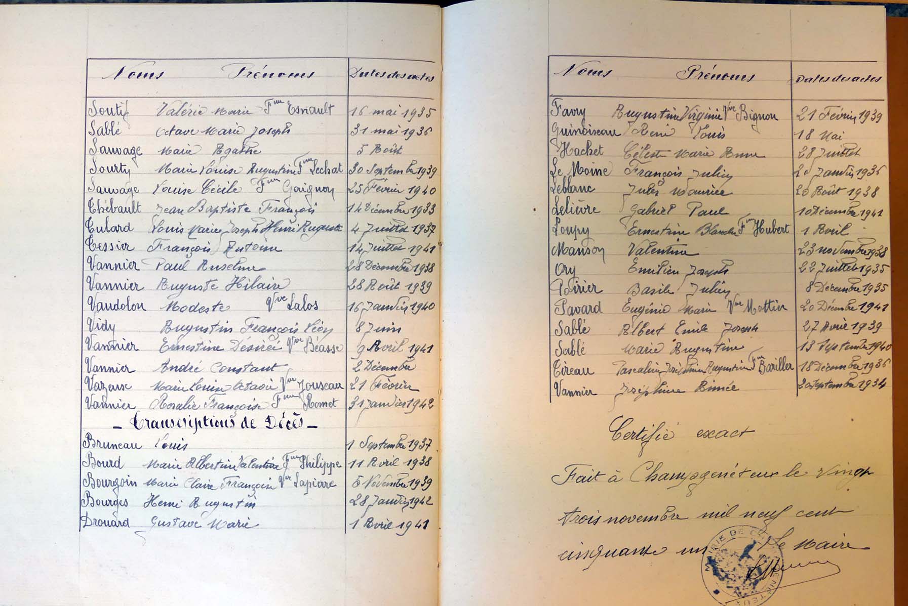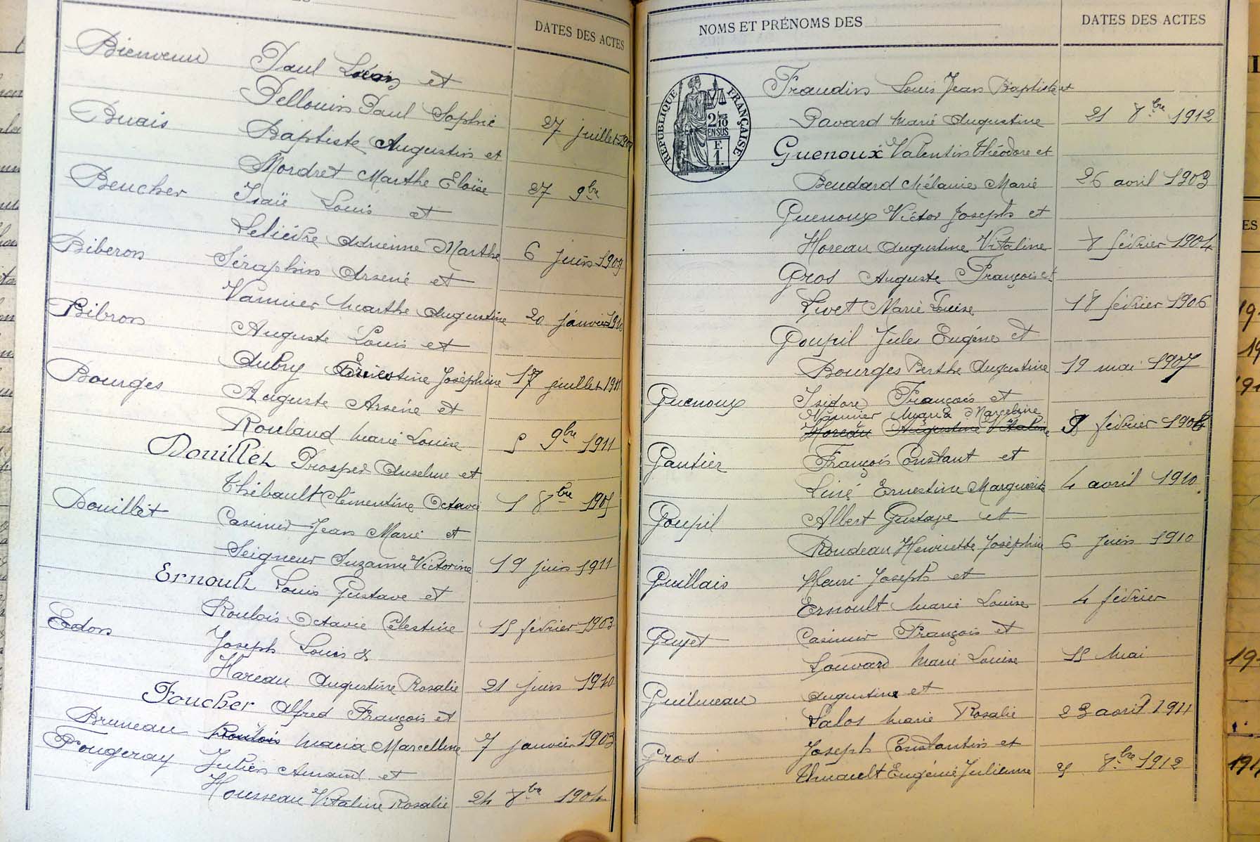 Ressources généalogiques de Champgenéteux - Tables décennales 1903 → 1942