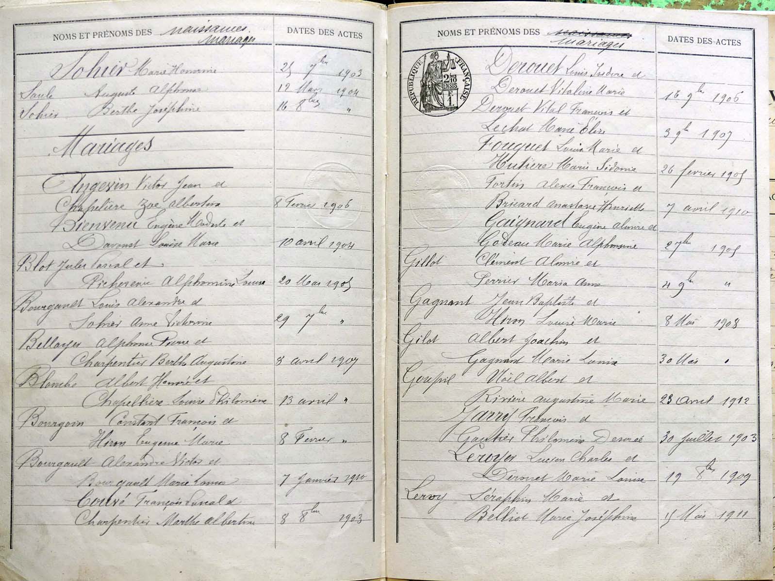Mariages & Divorces :