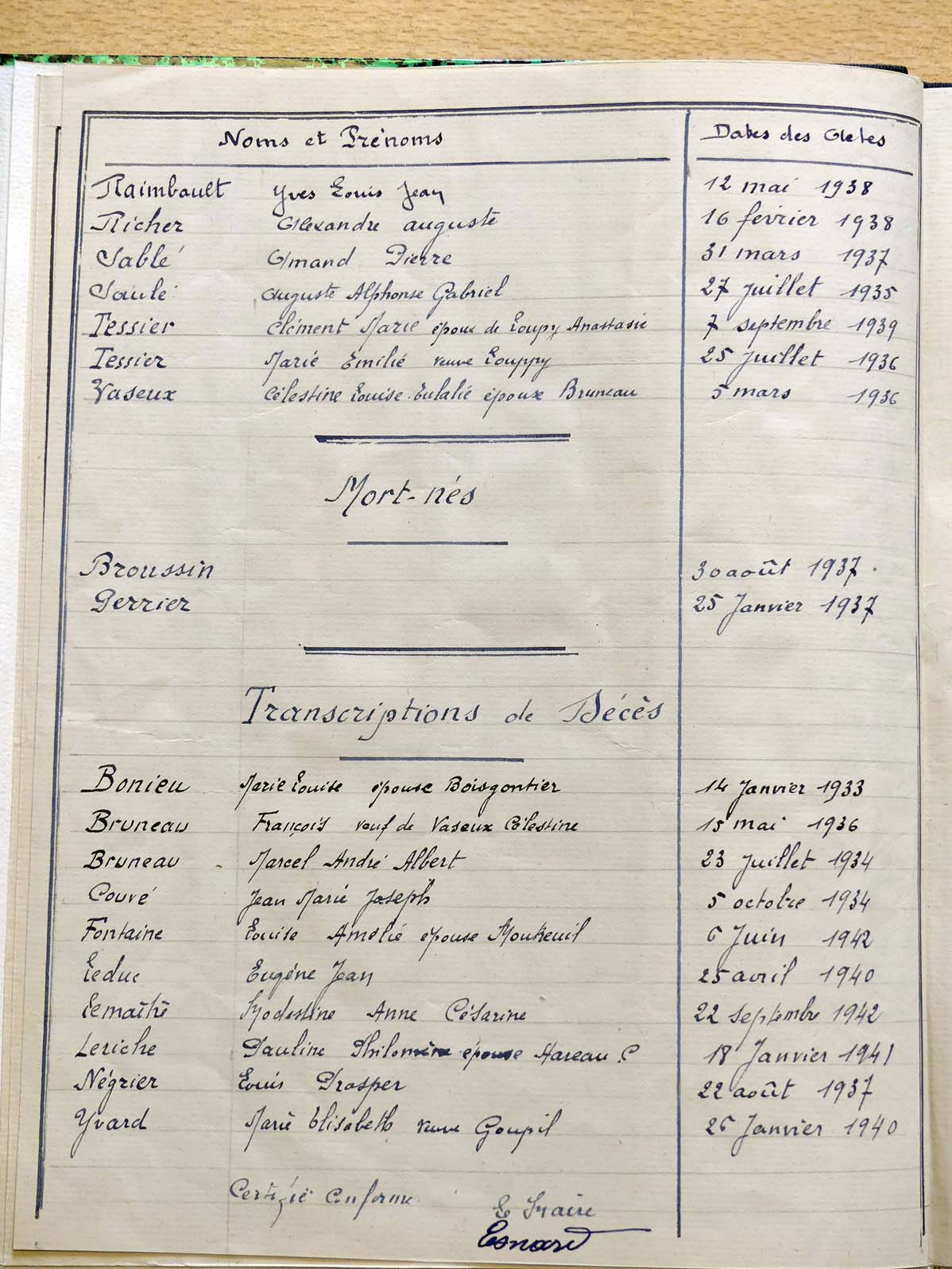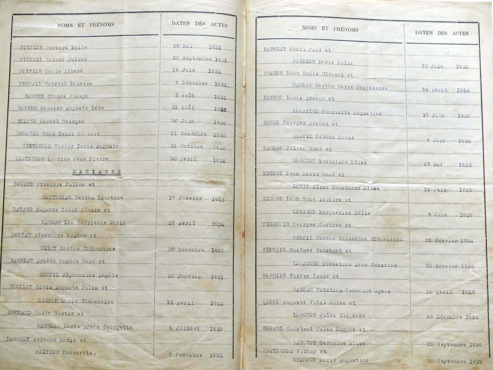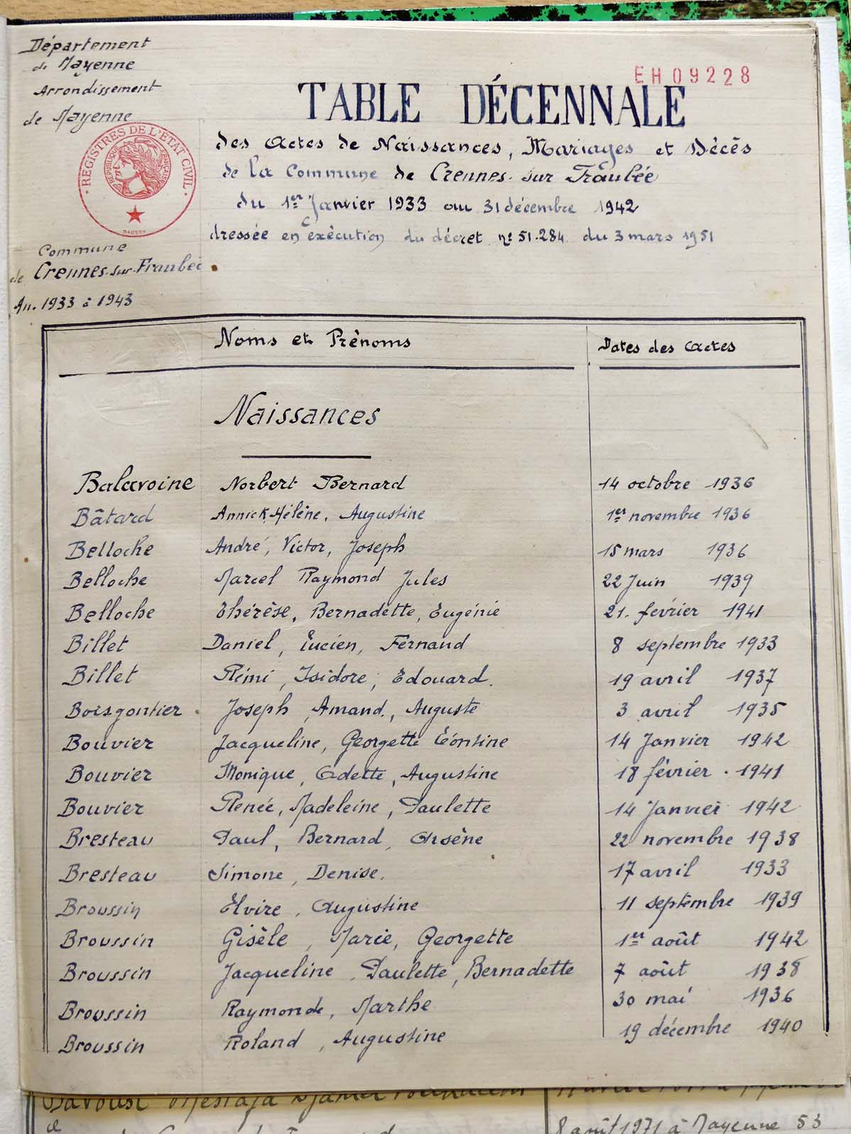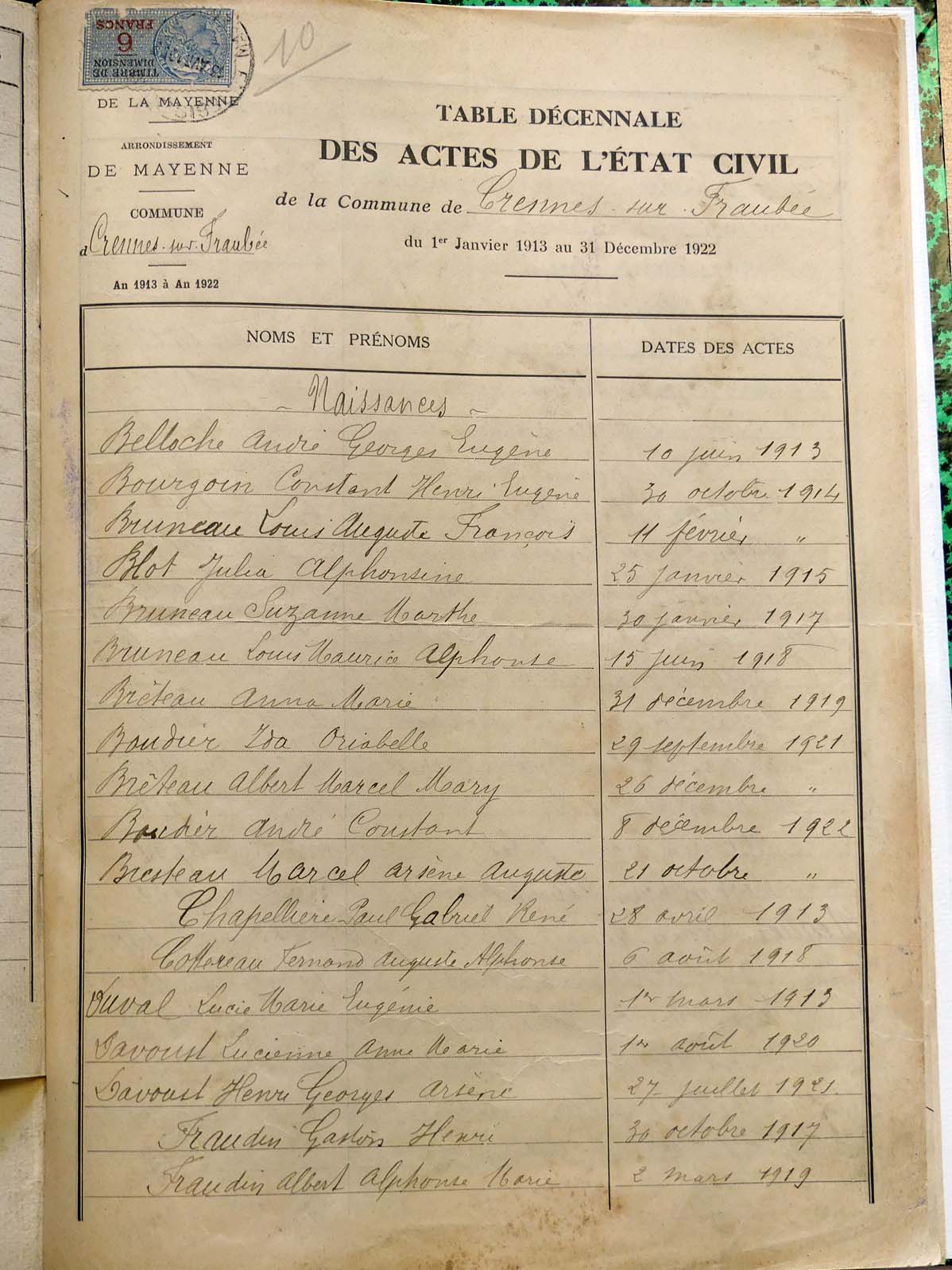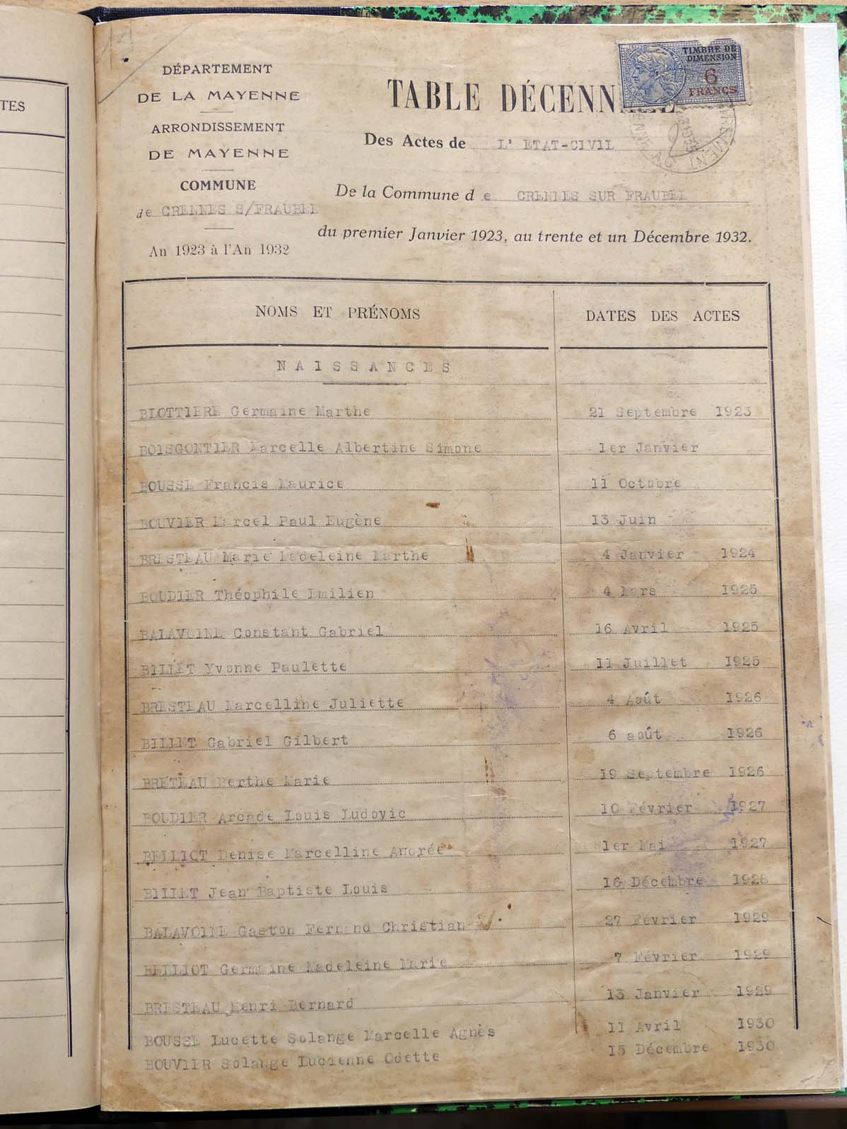 généalogiques de Crennes-sur-Fraubée - Tables décennales 1903 → 1942