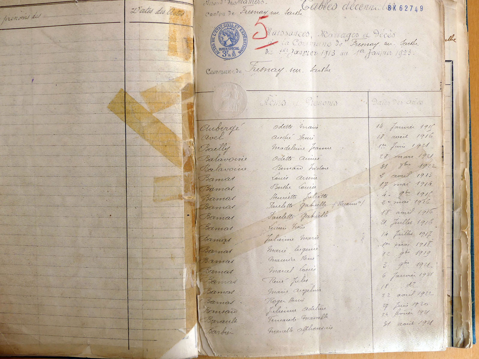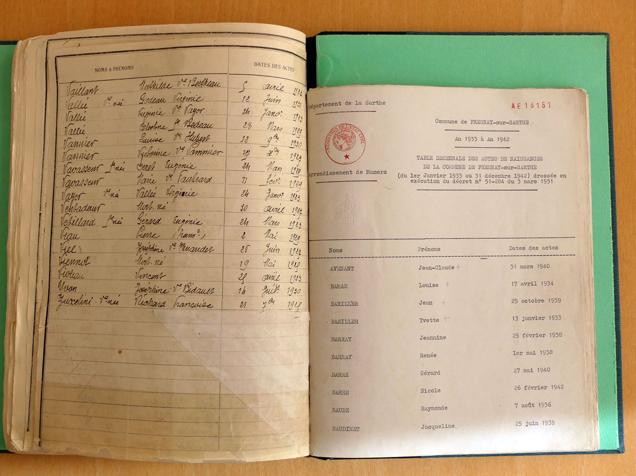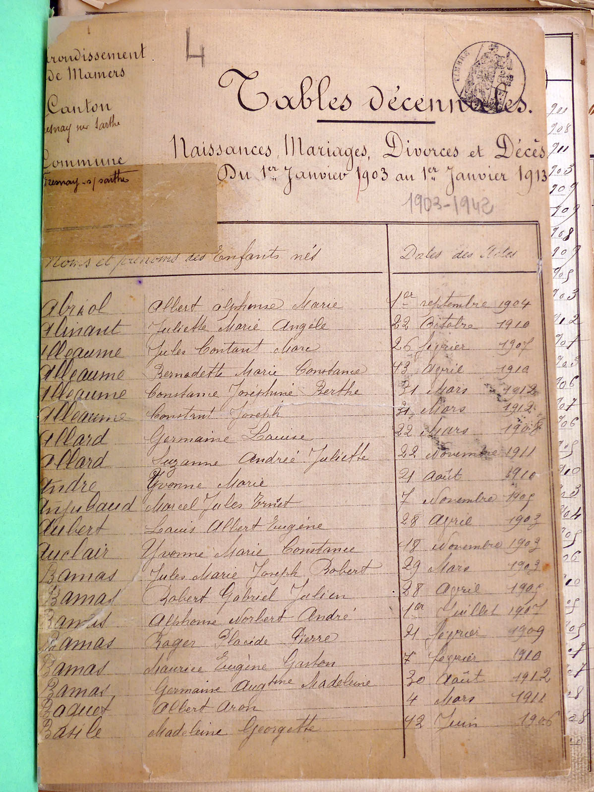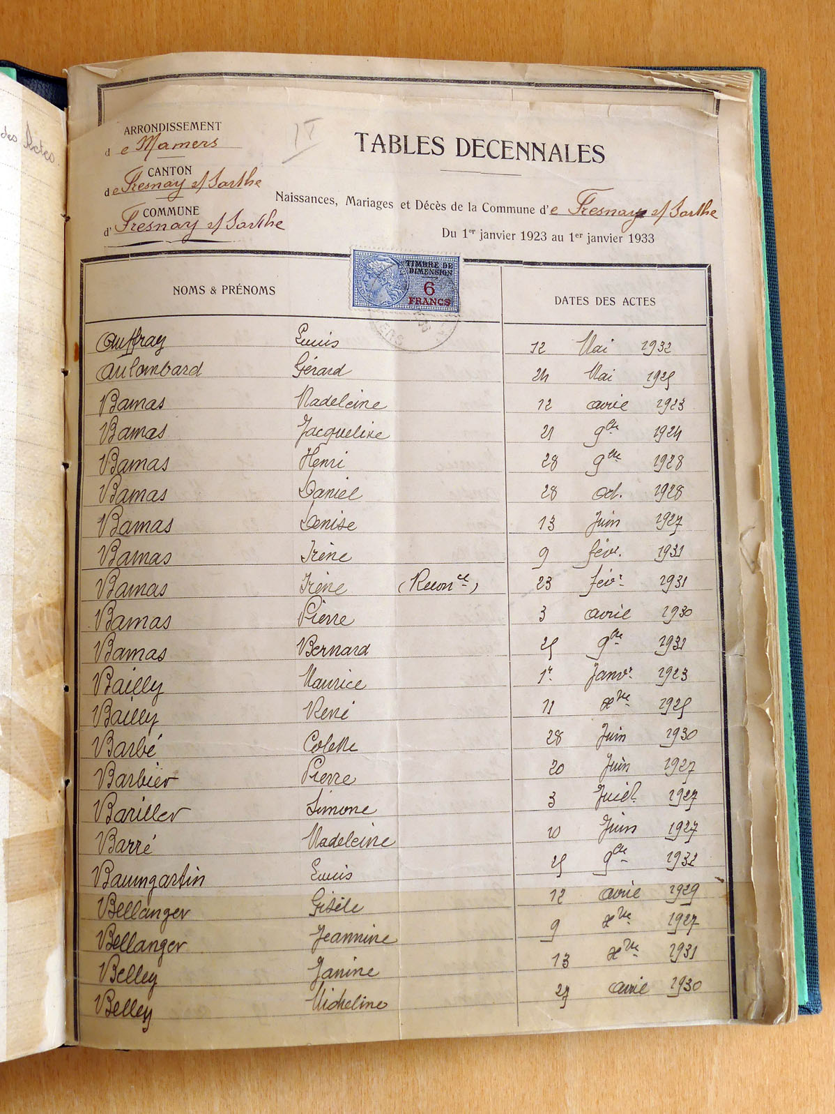 Ressources généalogiques de Fresnay-Sur-Sarthe - Tables décennales 1903 → 1942