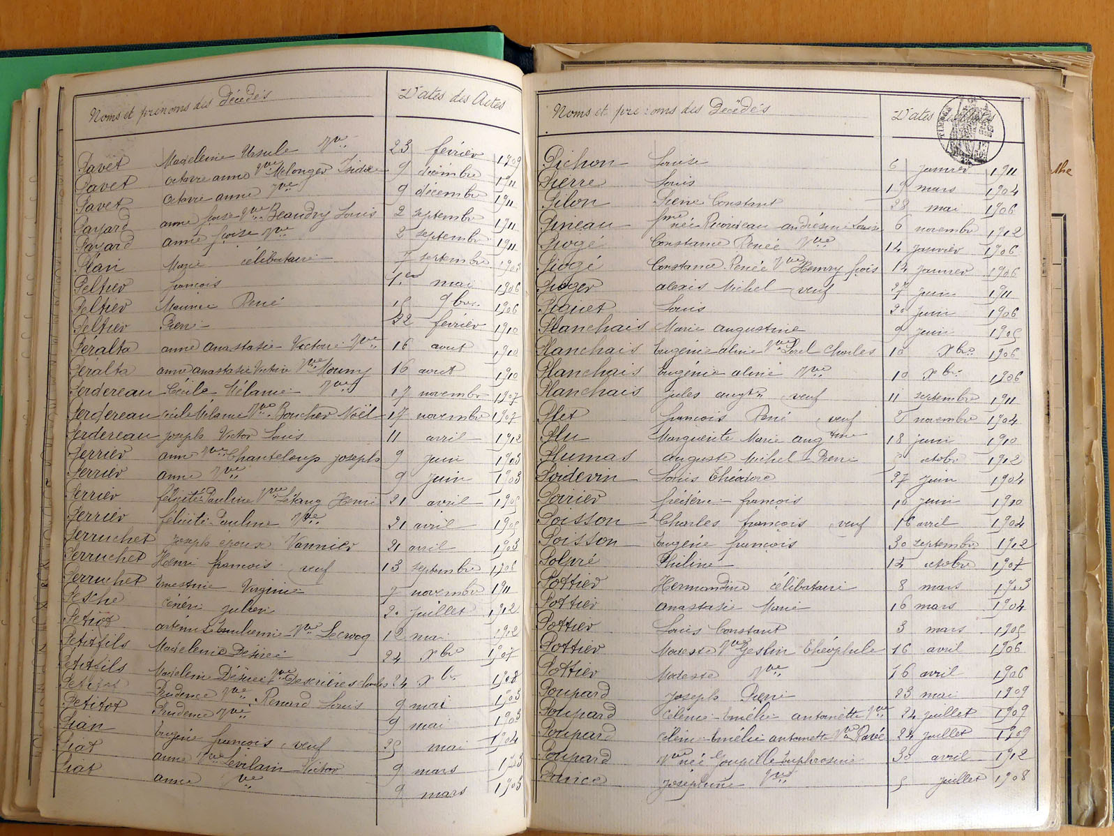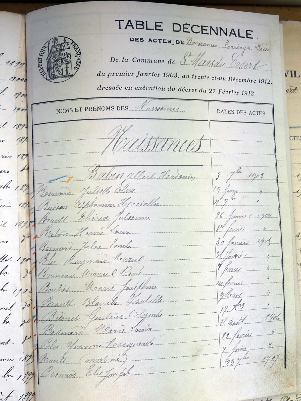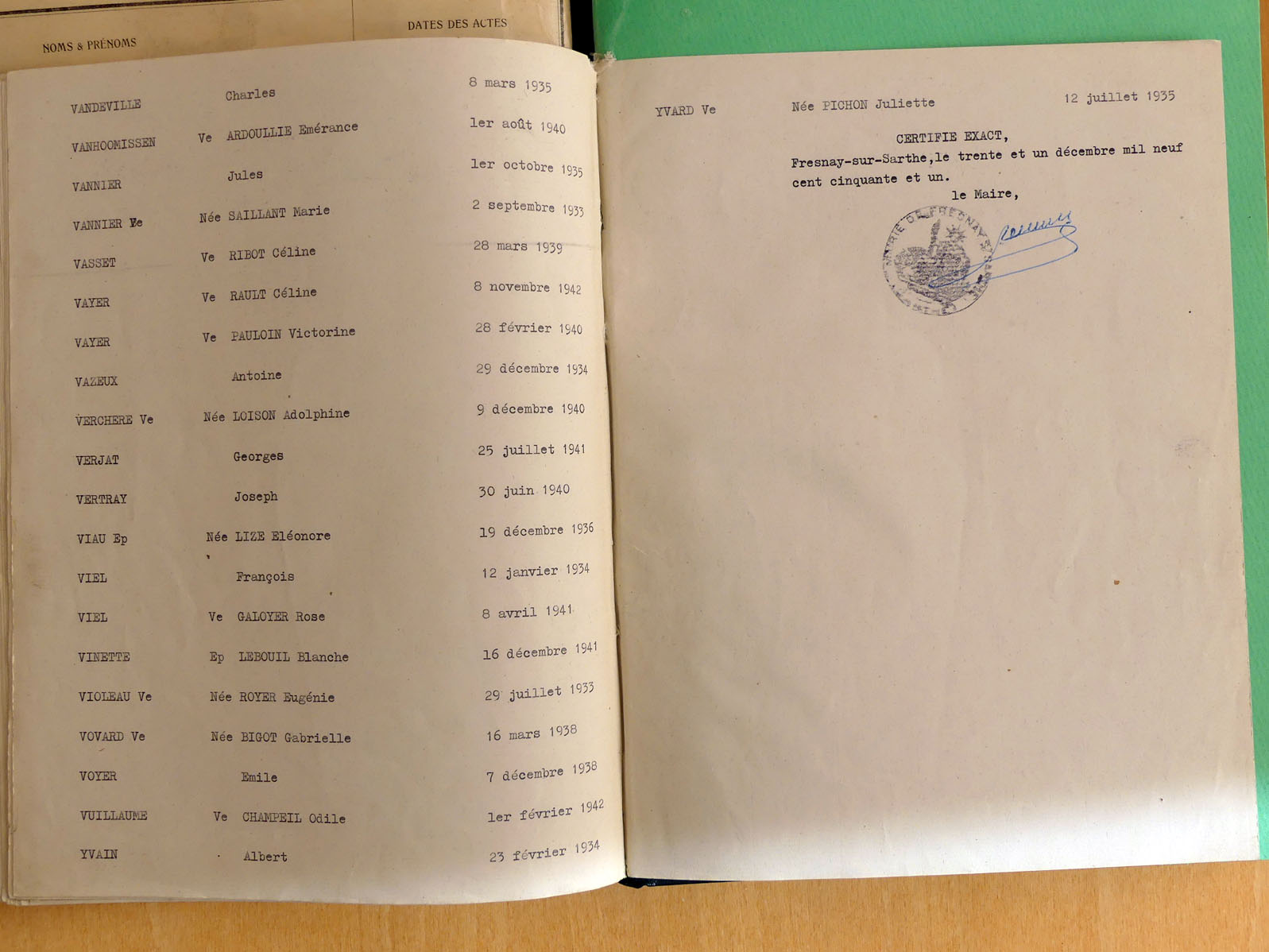 Ressources généalogiques de Fresnay-Sur-Sarthe - Tables décennales 1903 → 1942