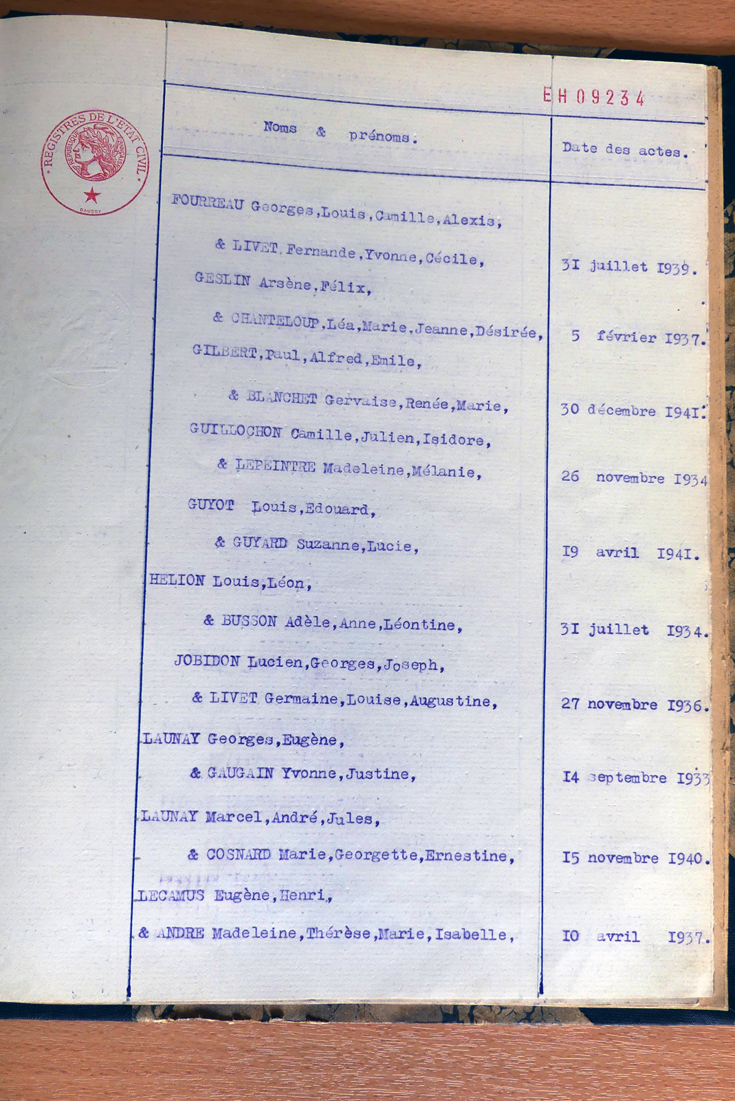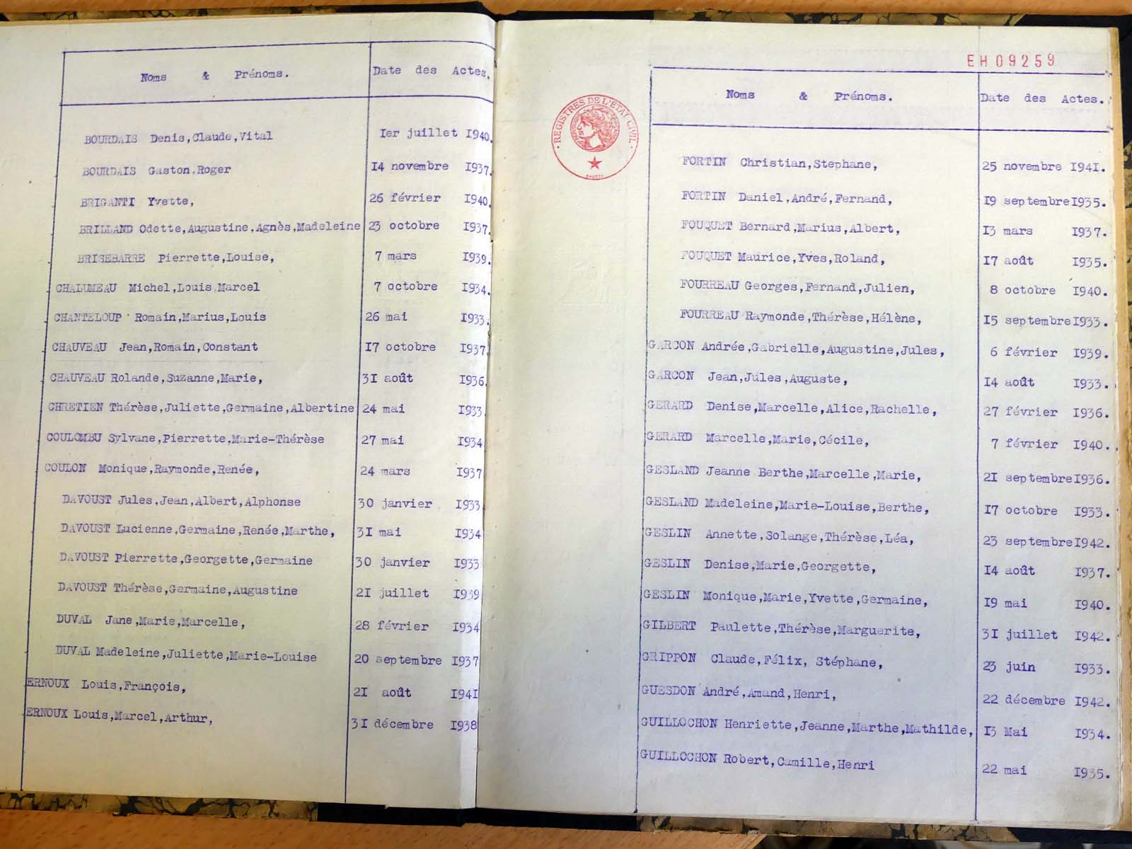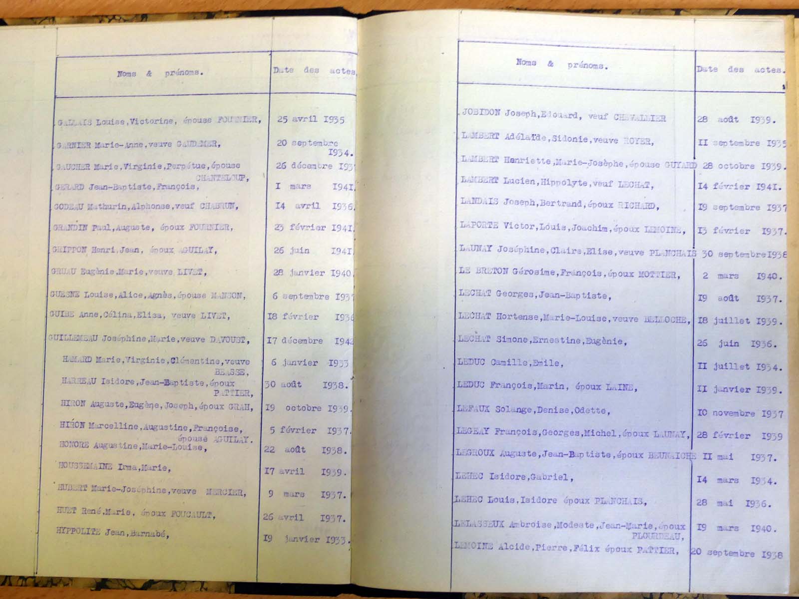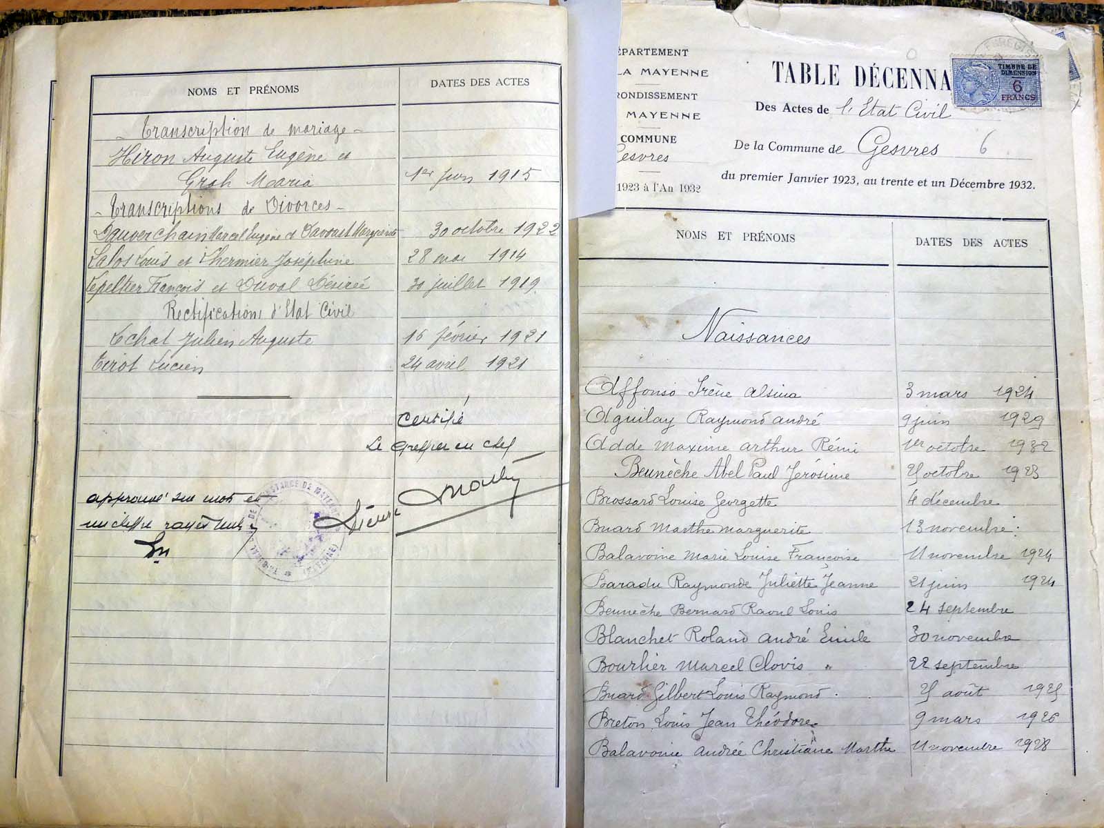 généalogiques de Gesvres - Tables décennales 1903 → 1942