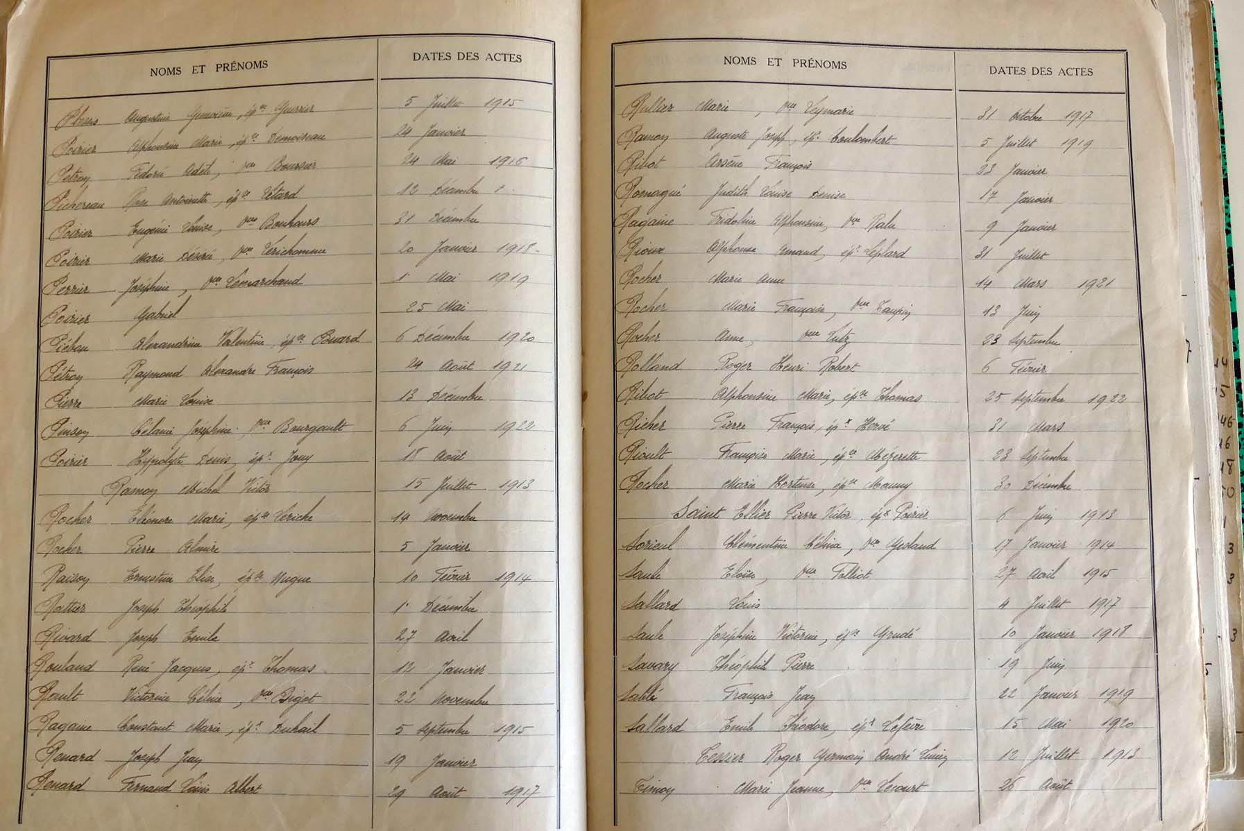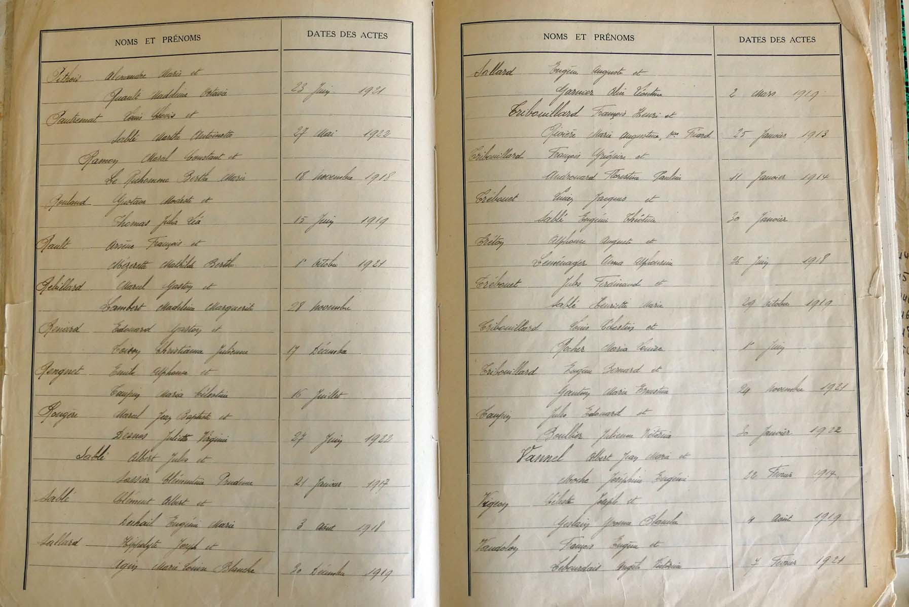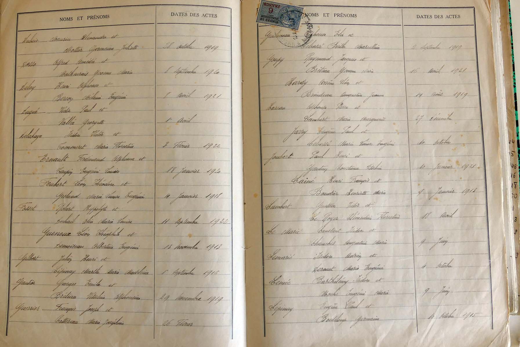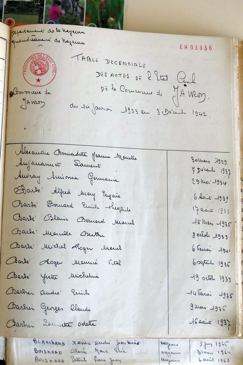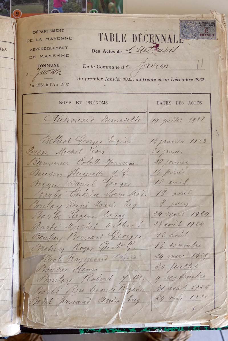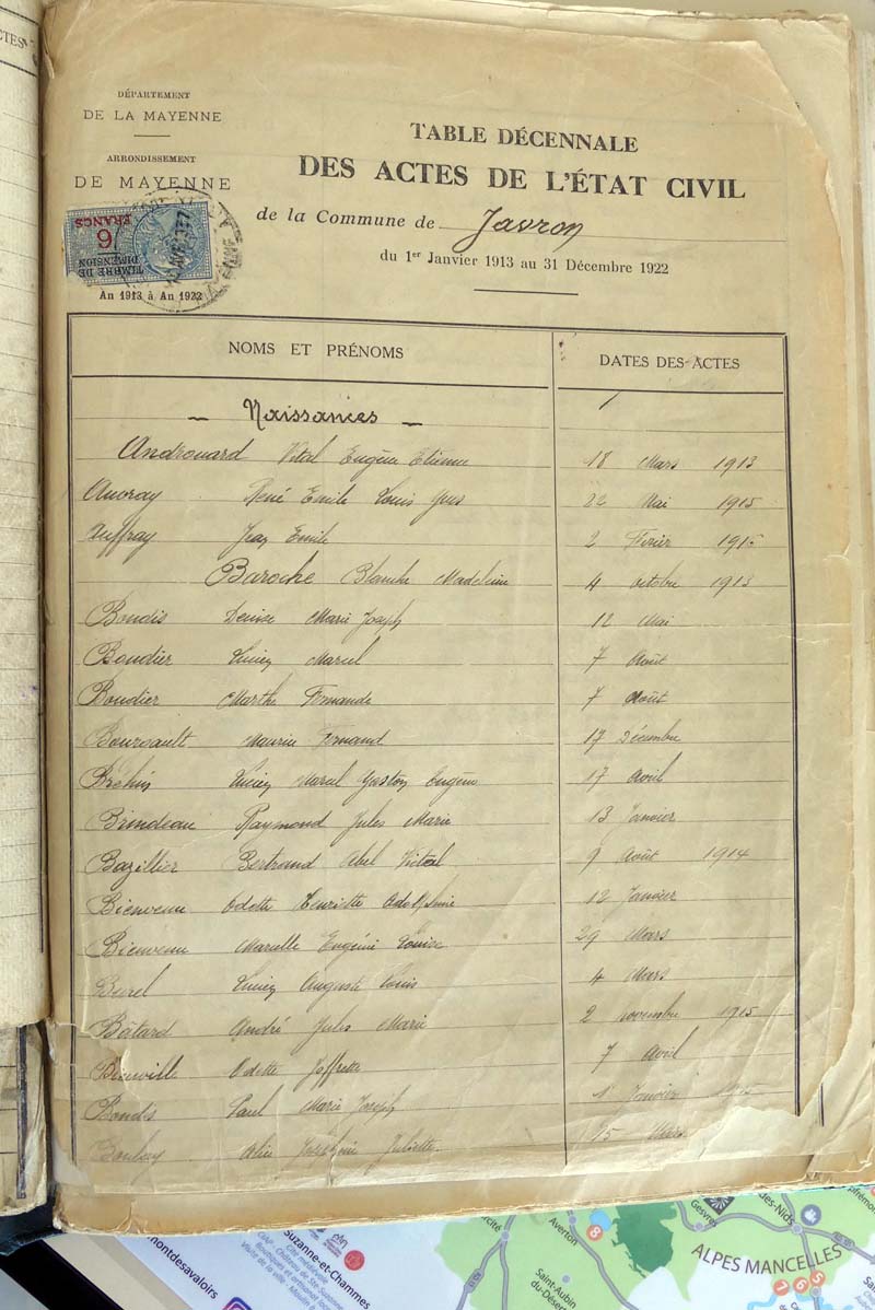 généalogiques de Javron - Tables décennales 1903 → 1942