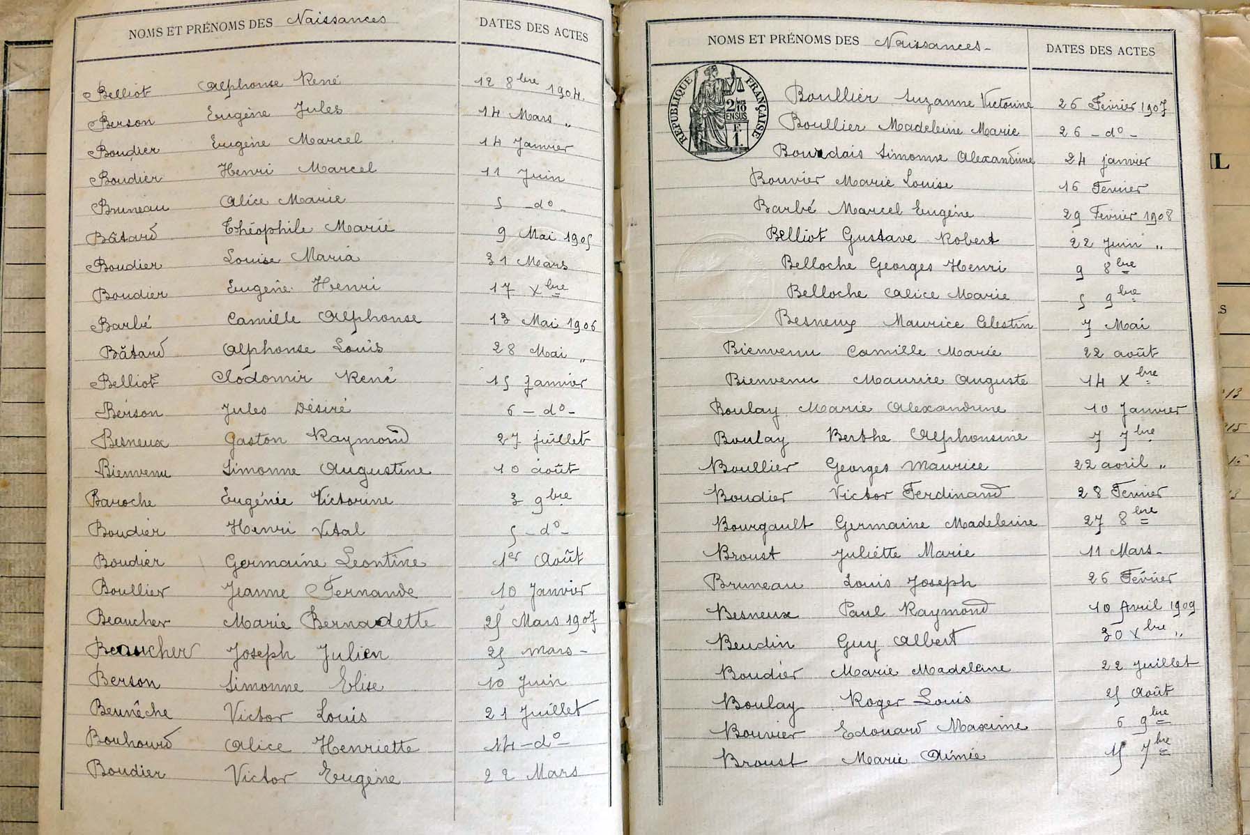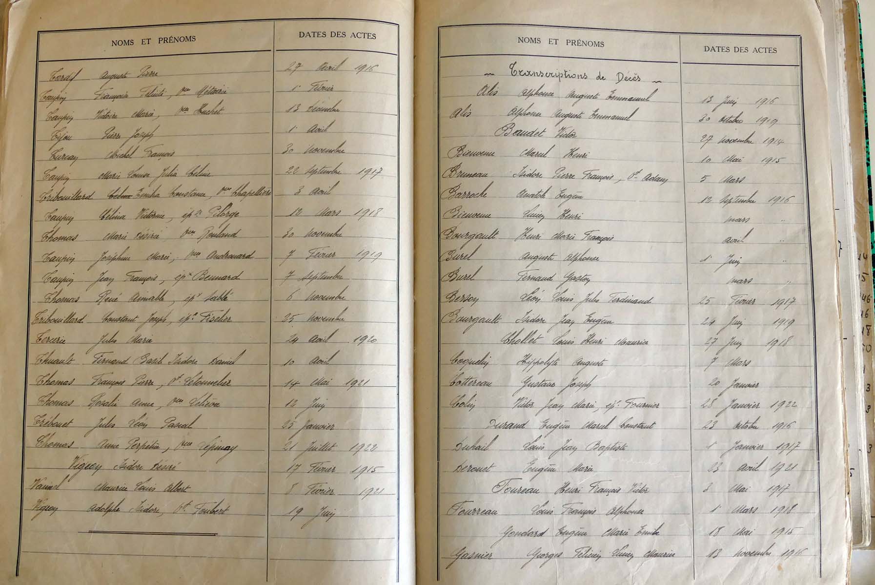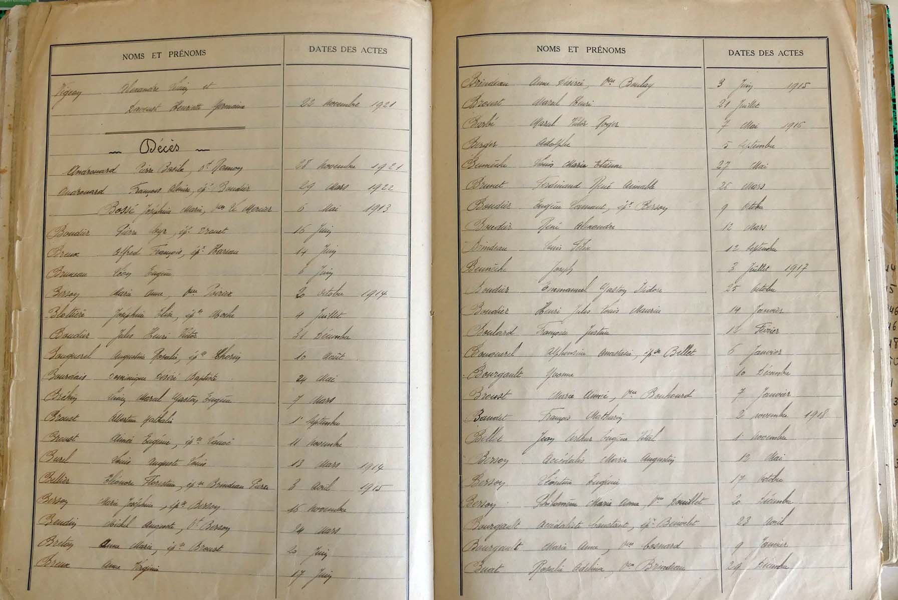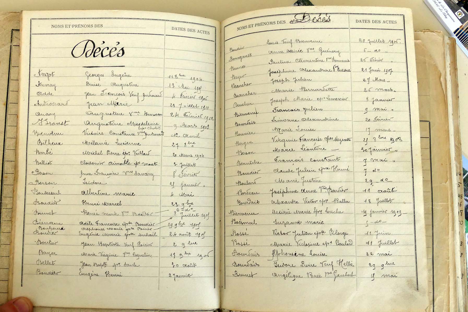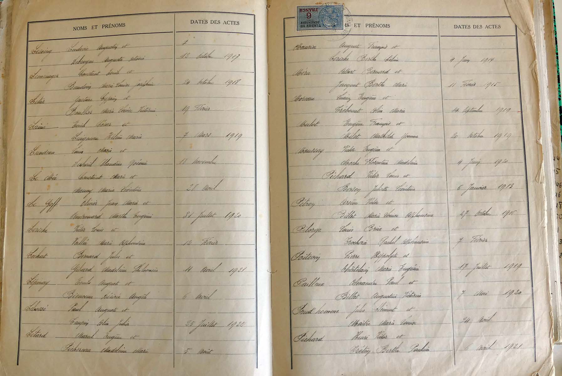 généalogiques de Javron - Tables décennales 1903 → 1942