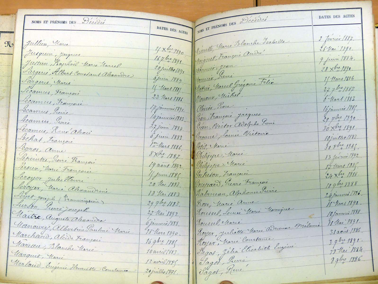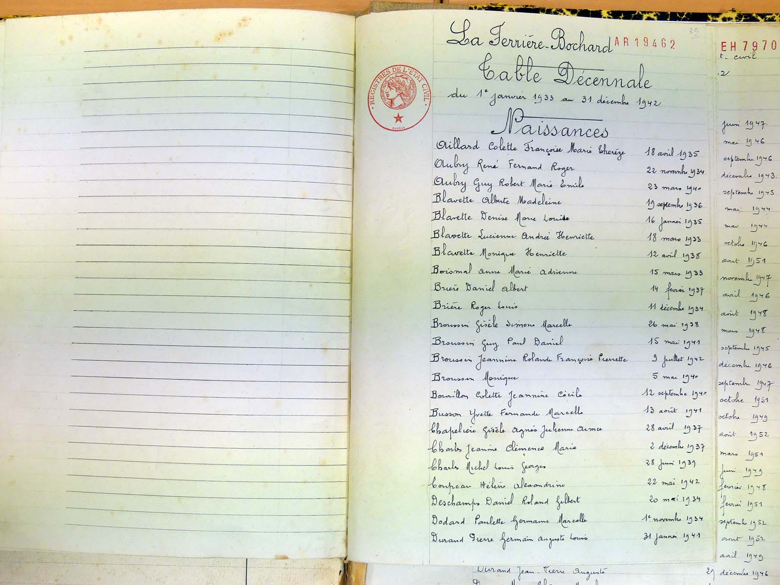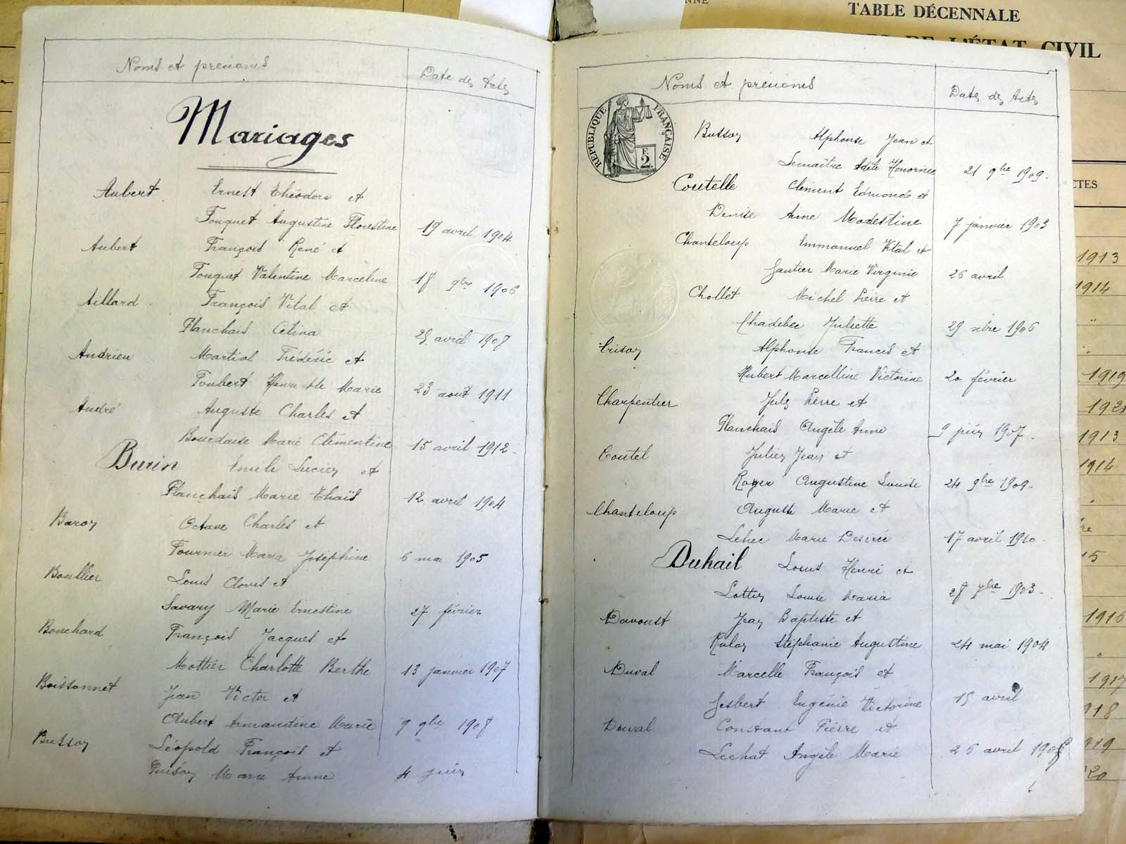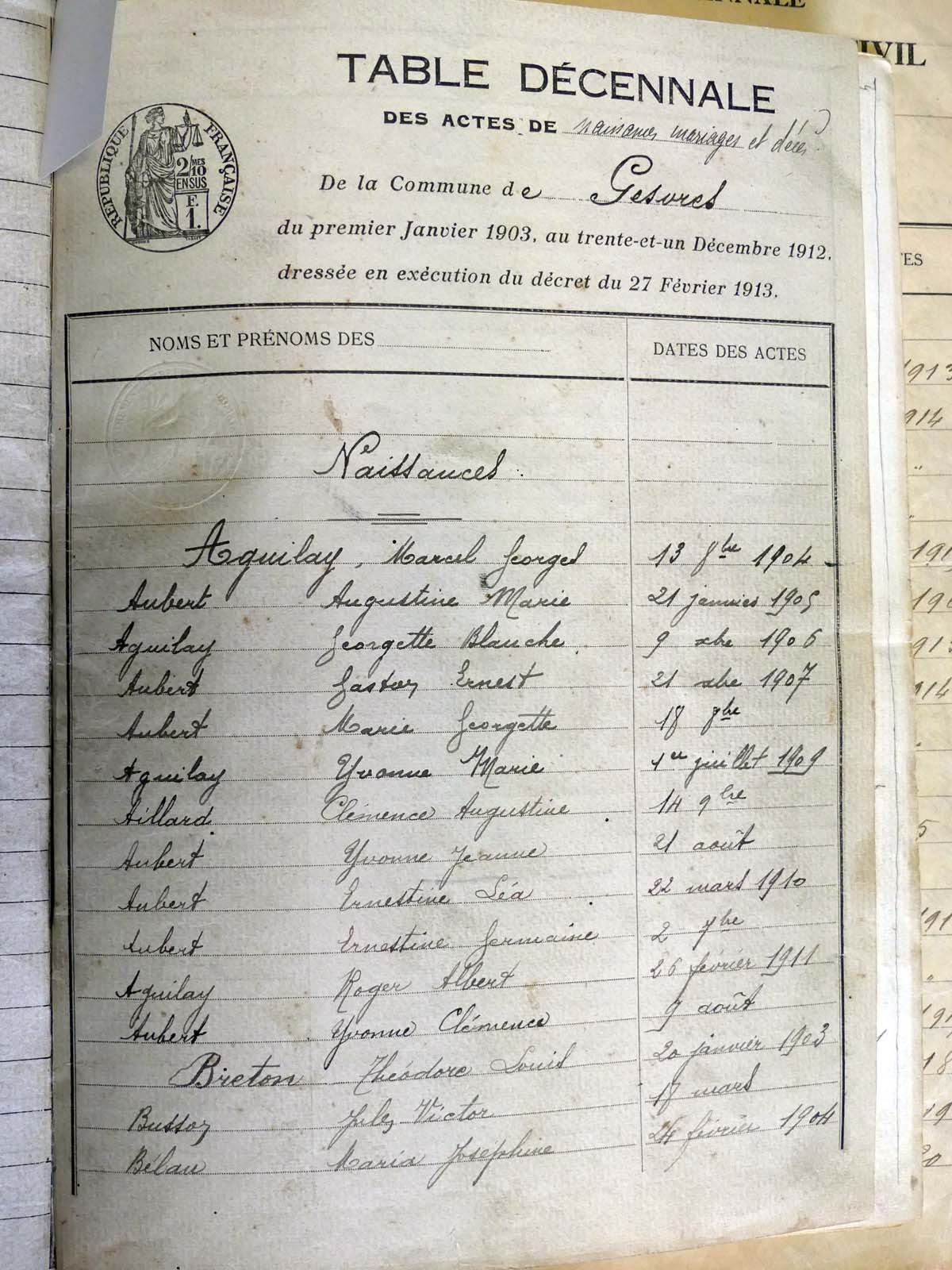 - Tables décennales 1883 → 1942