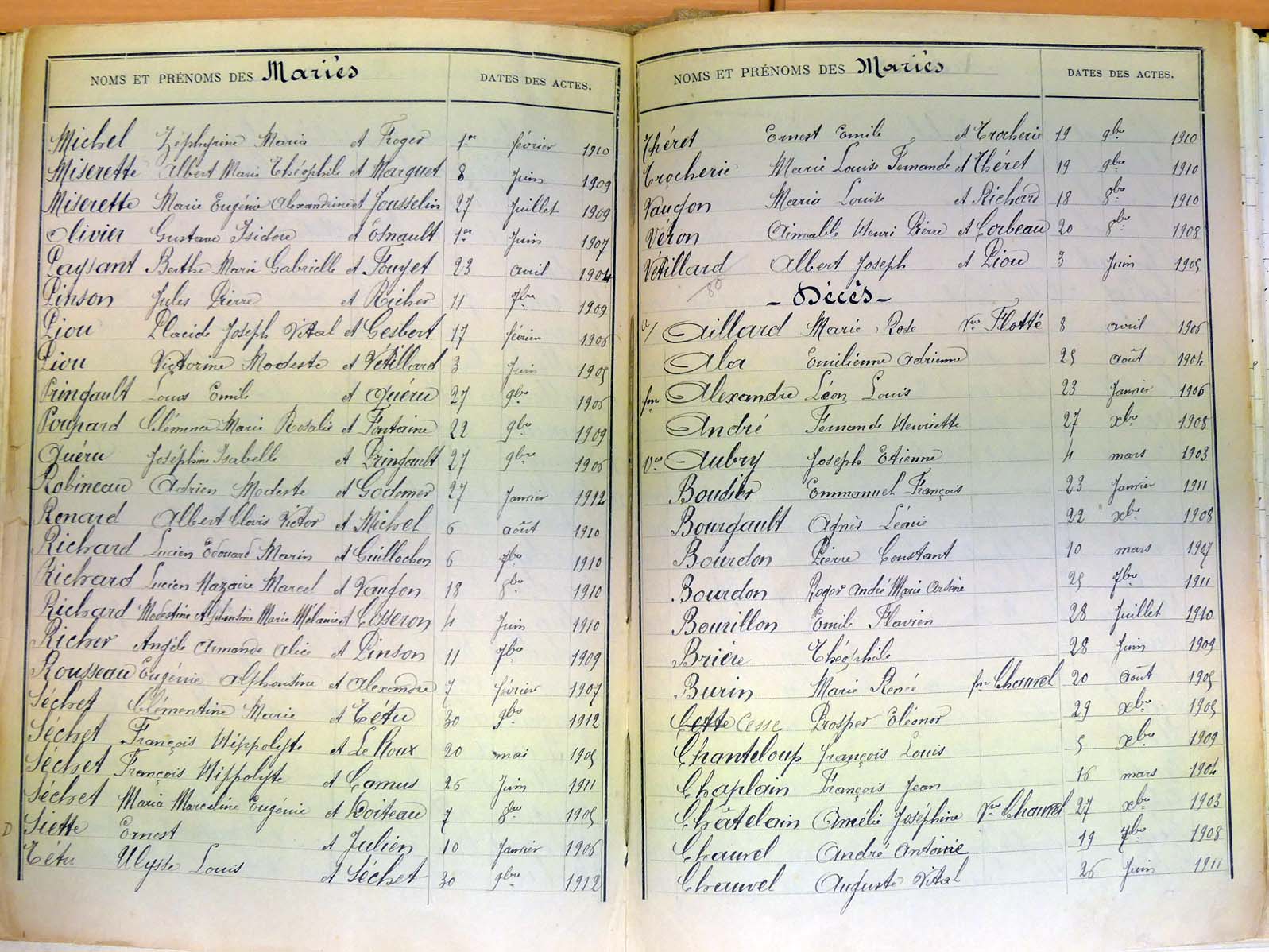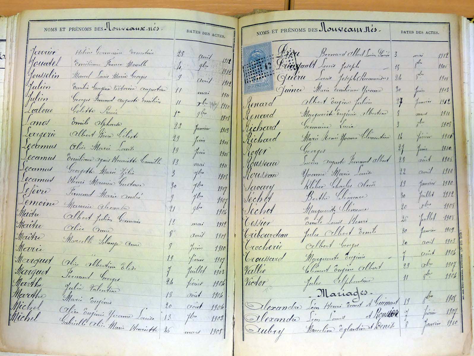 Mariages :