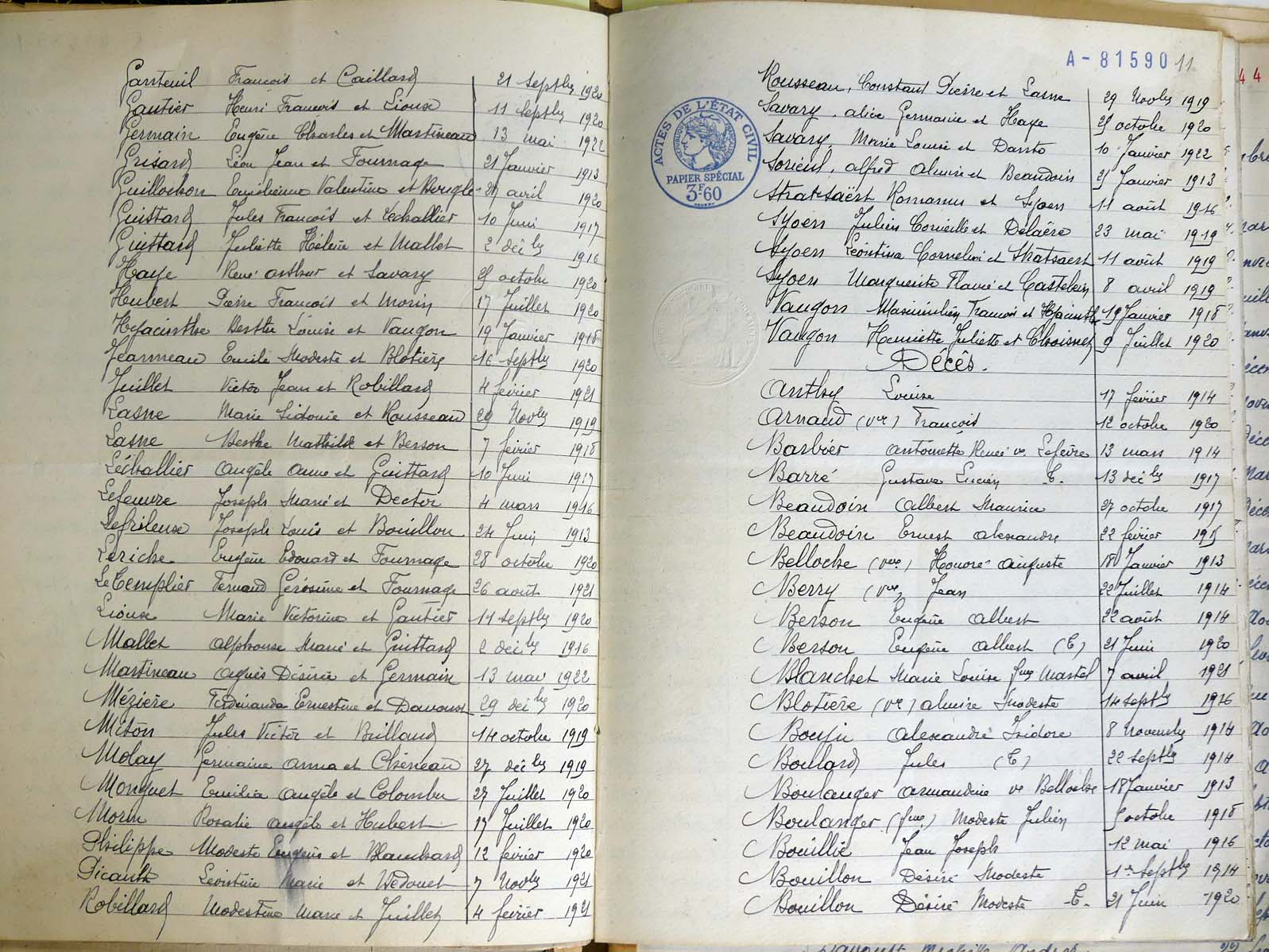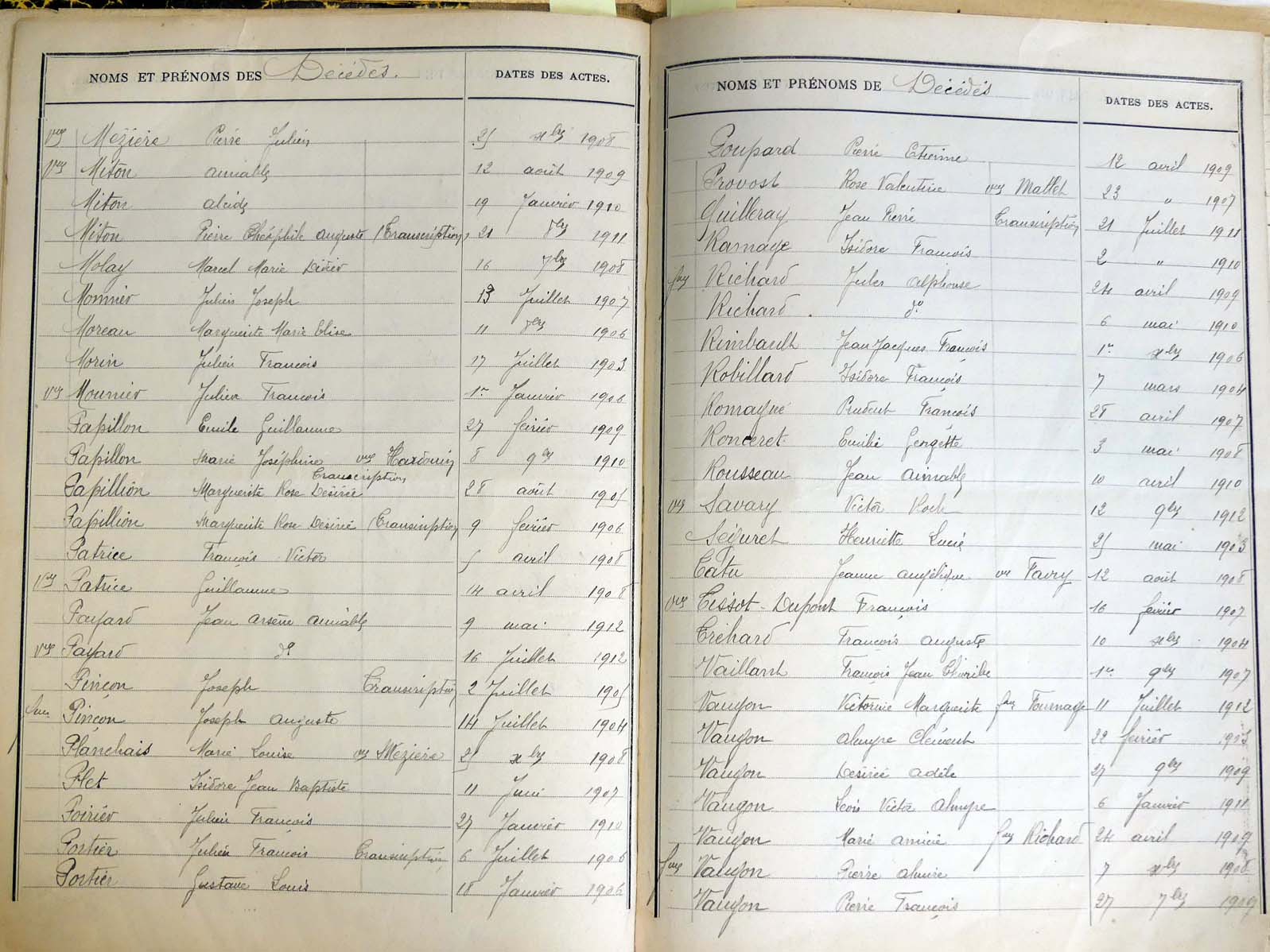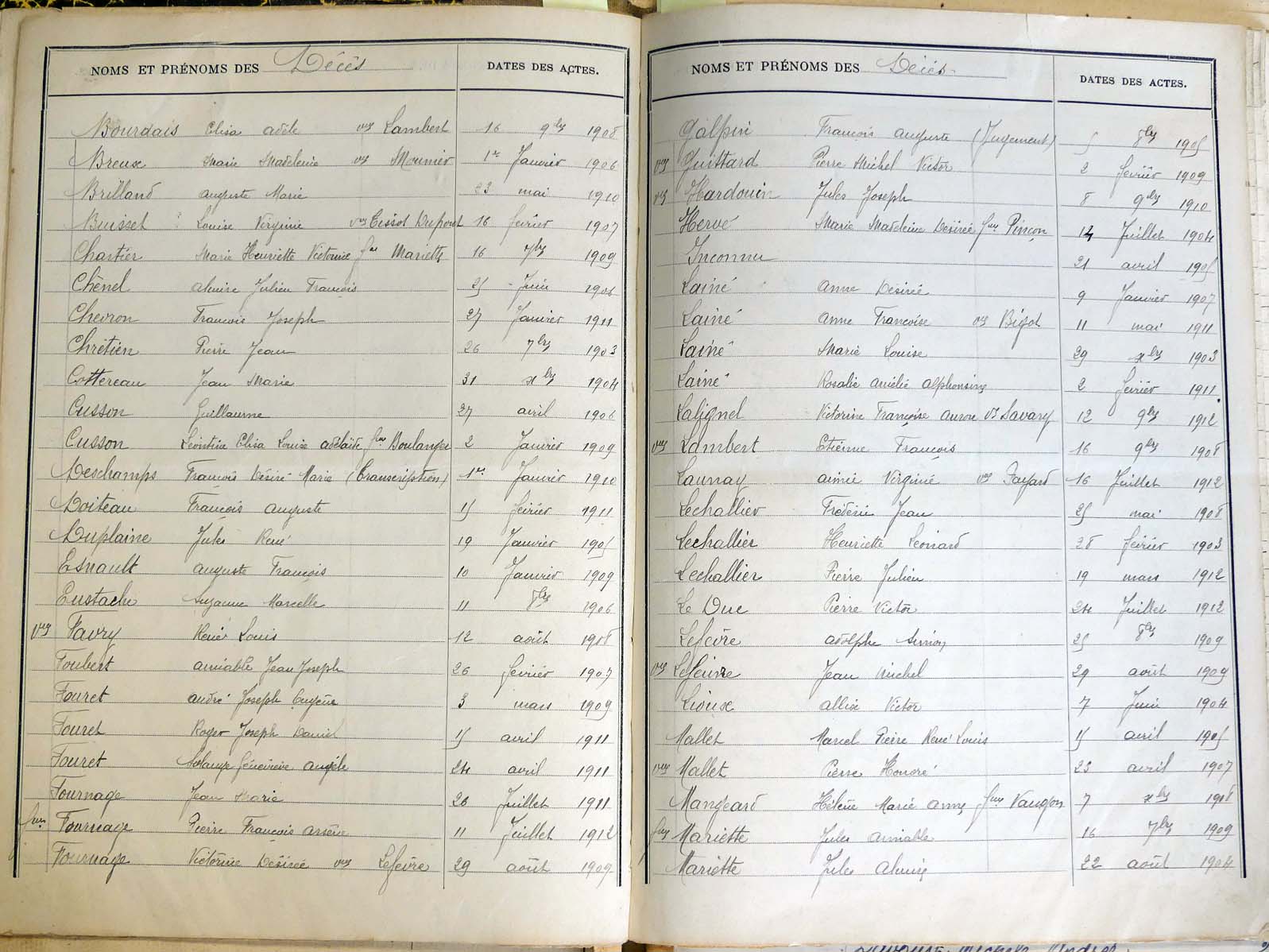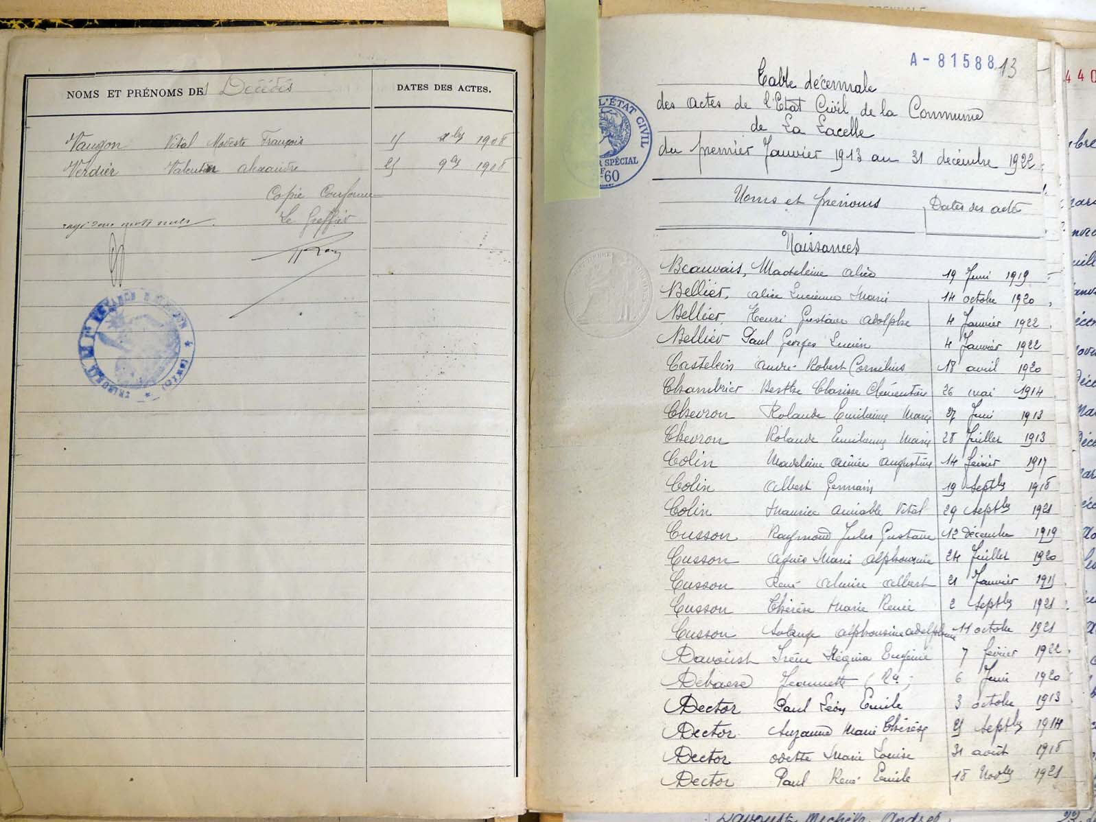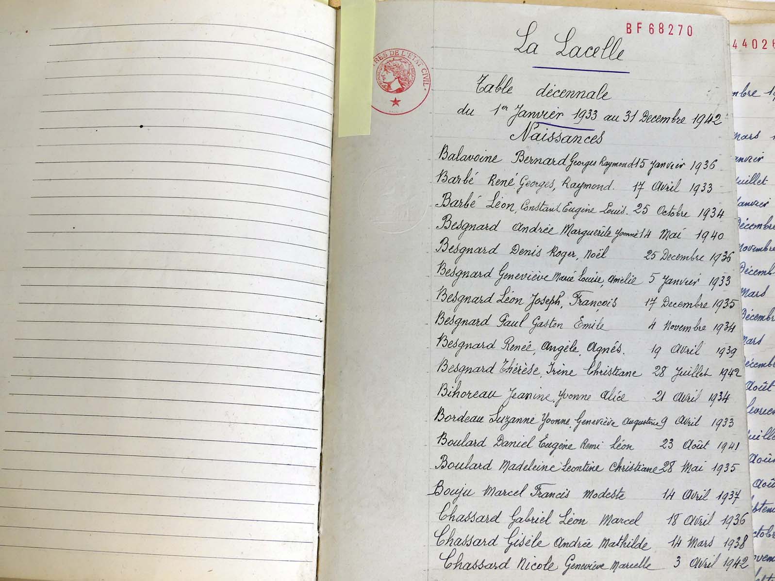 Ressources généalogiques de Lalacelle - Tables décennales 1903 → 1942