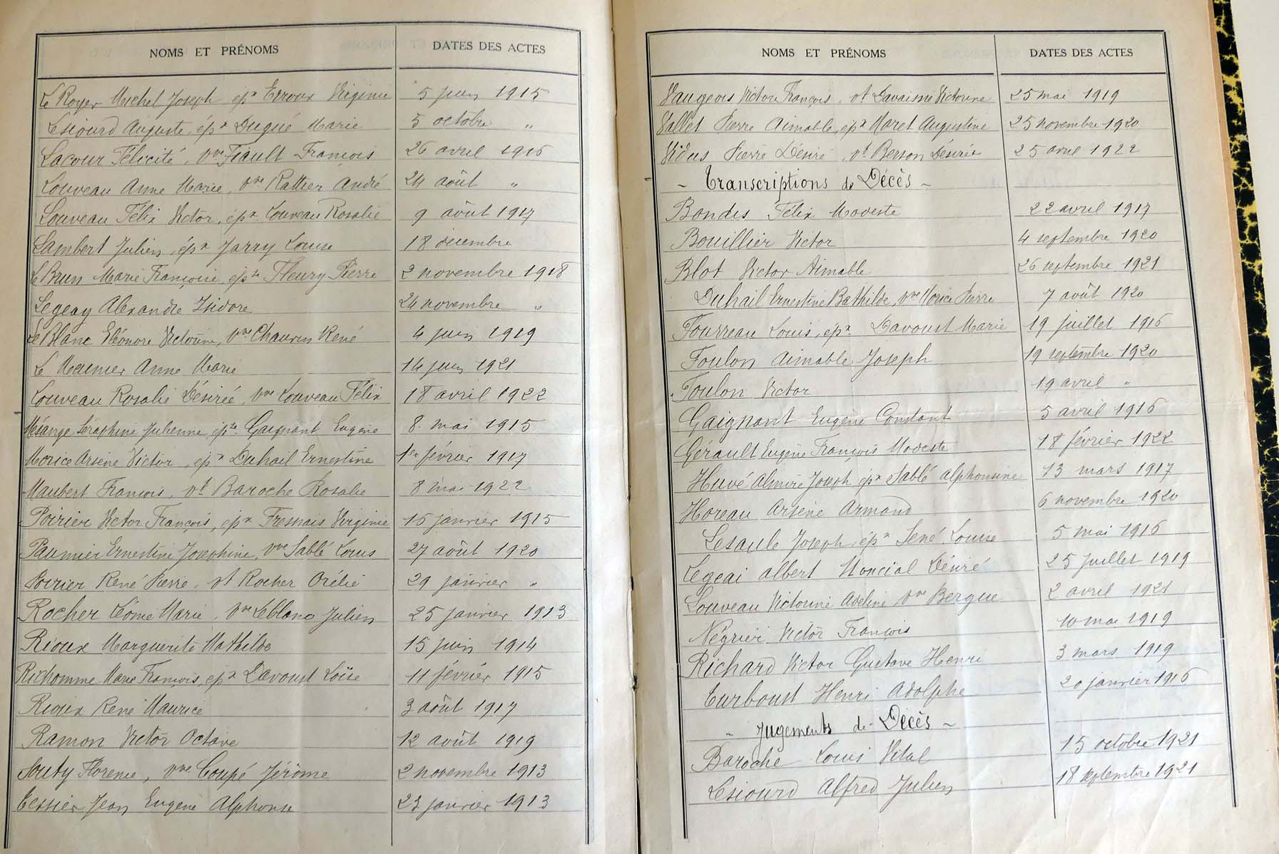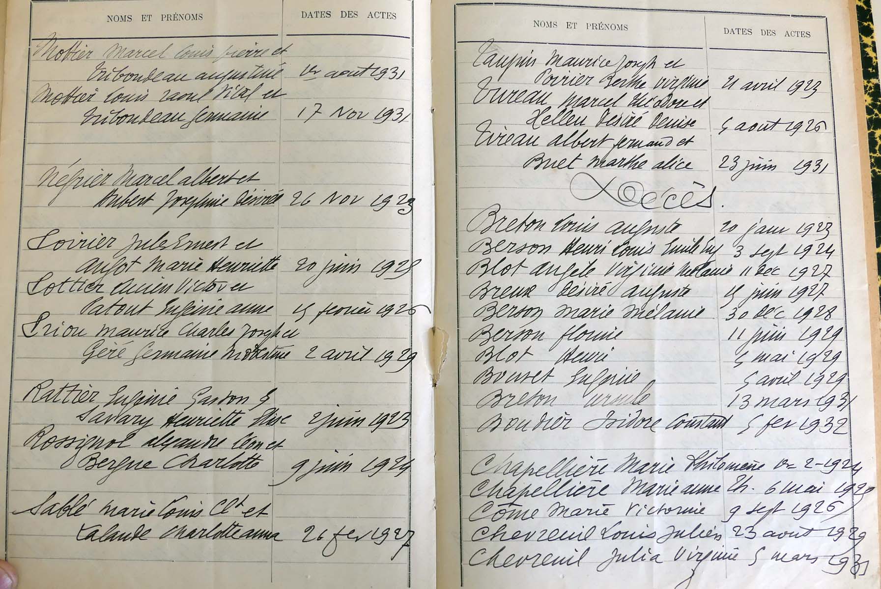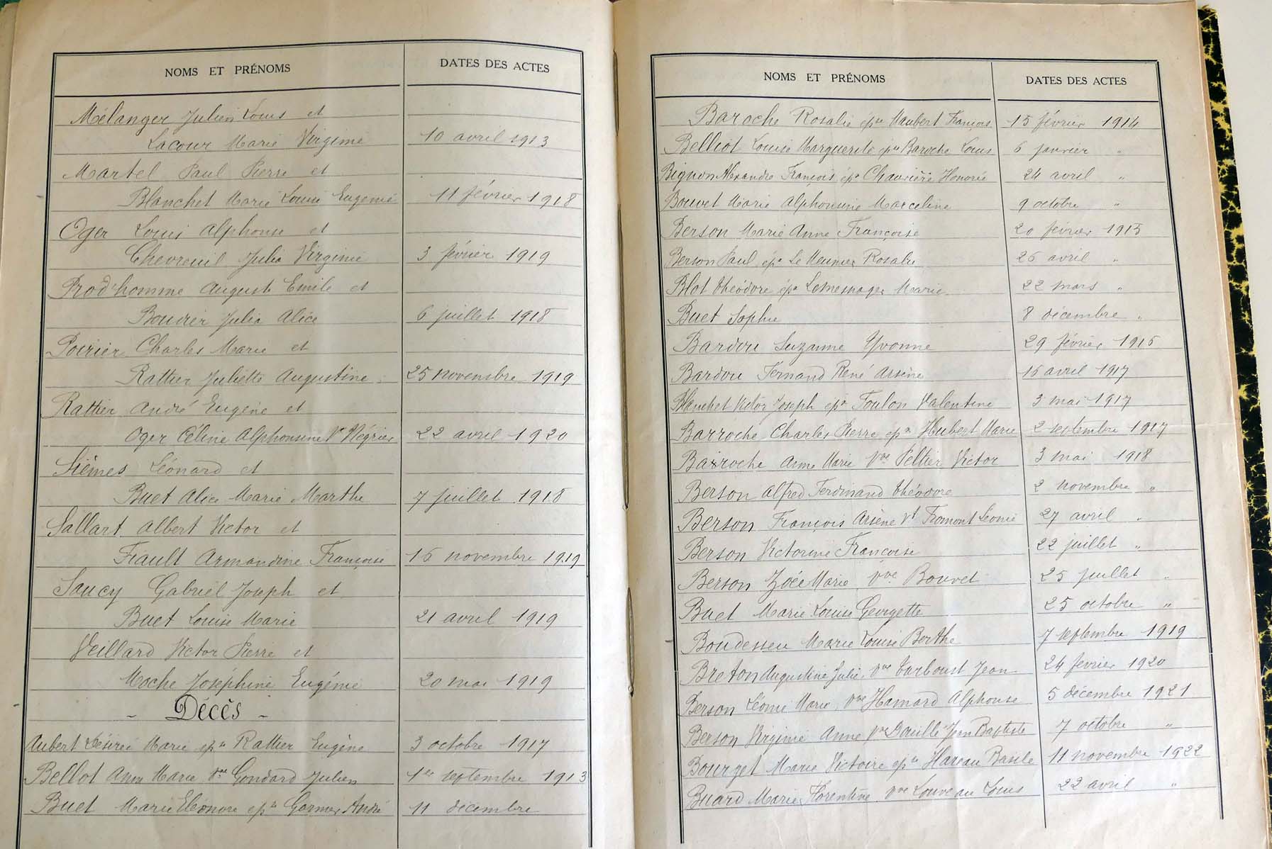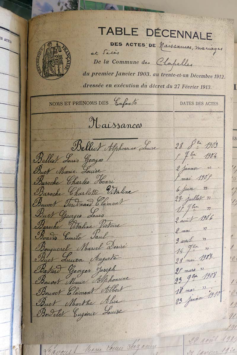 Ressources généalogiques de Les Chapelles - Tables décennales 1903 → 1942