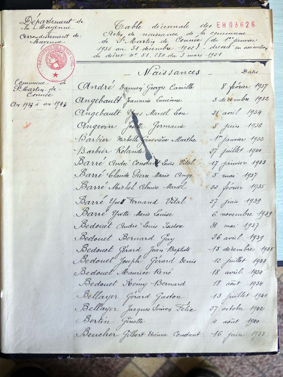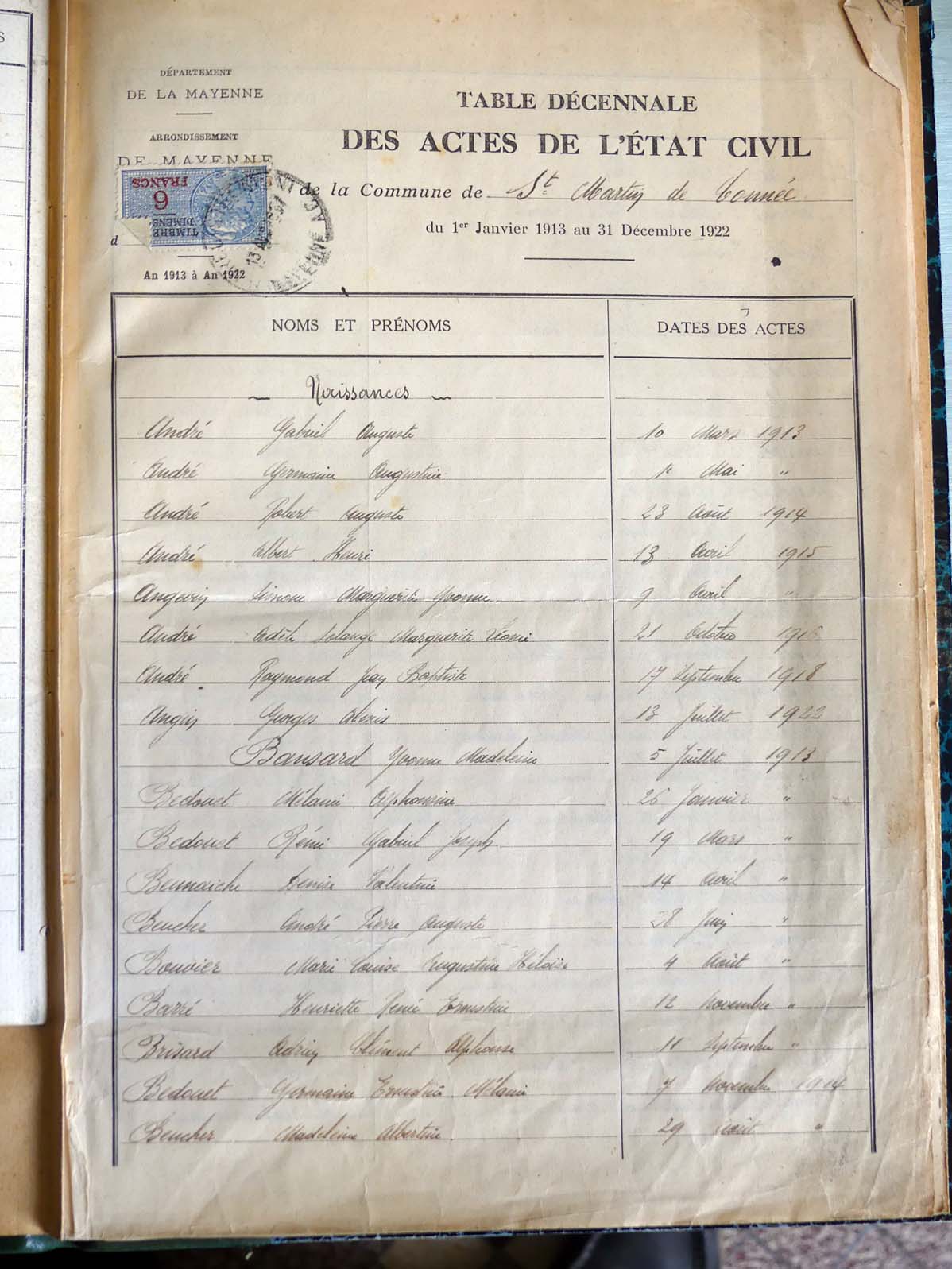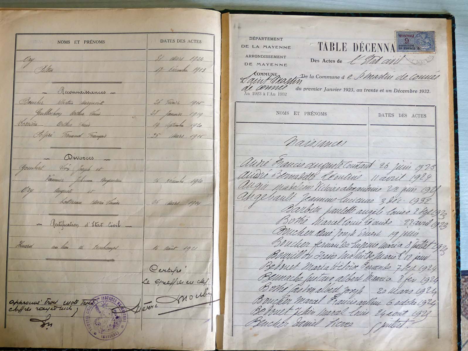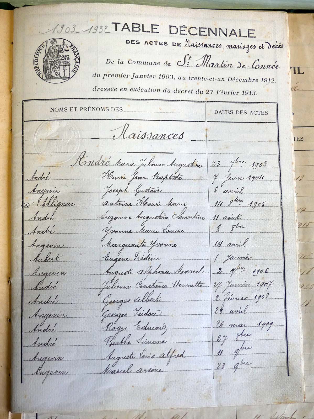 généalogiques de Saint-Martin-de-Connee - Tables décennales 1903 → 1942