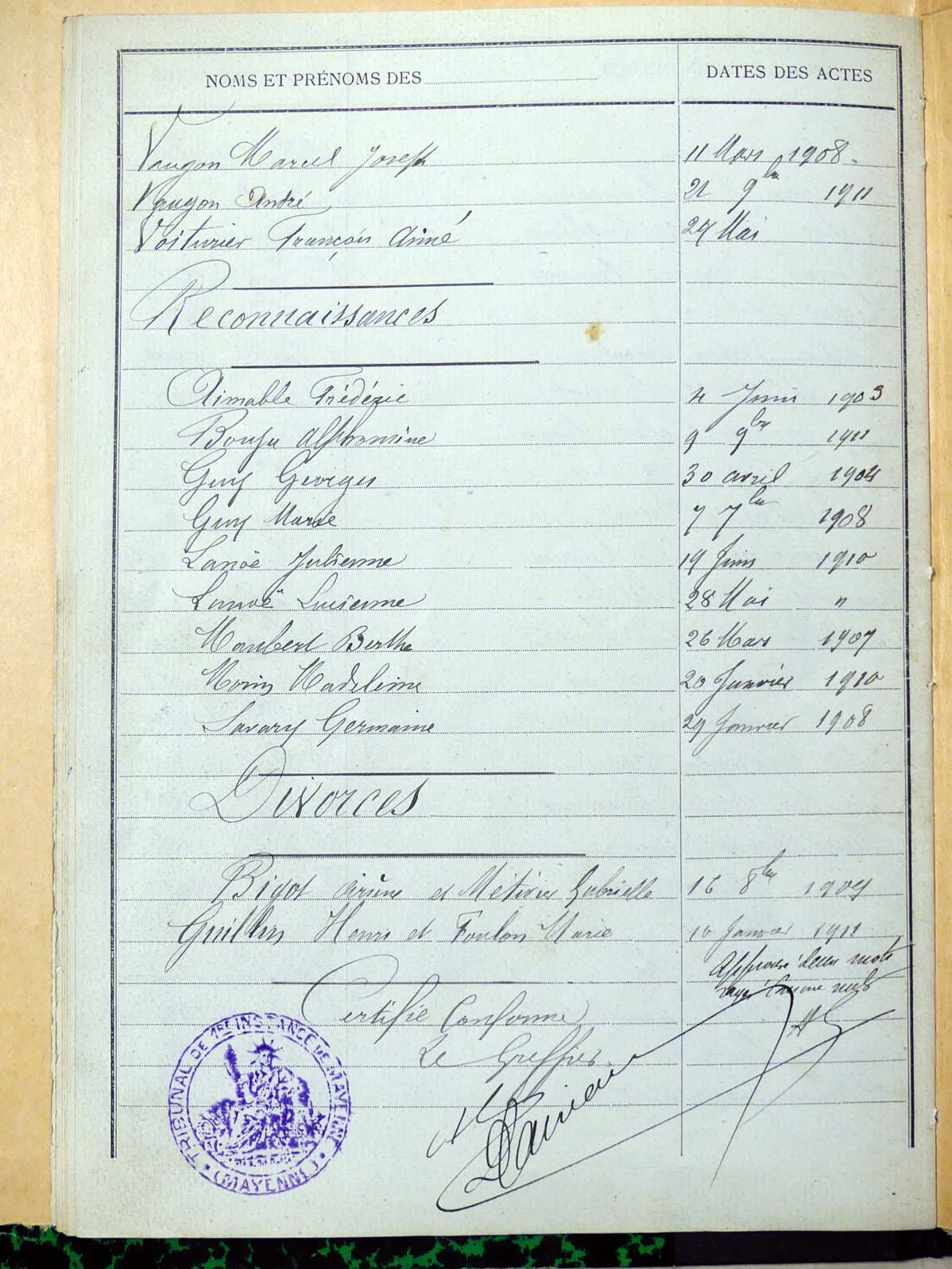 V + Reconnaissances + Divorces |