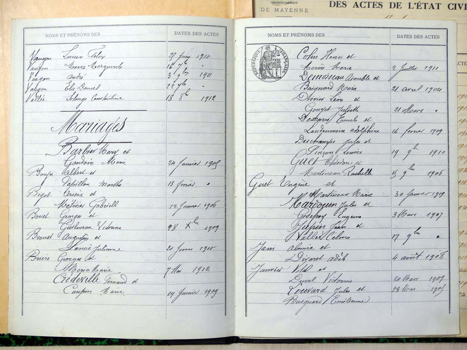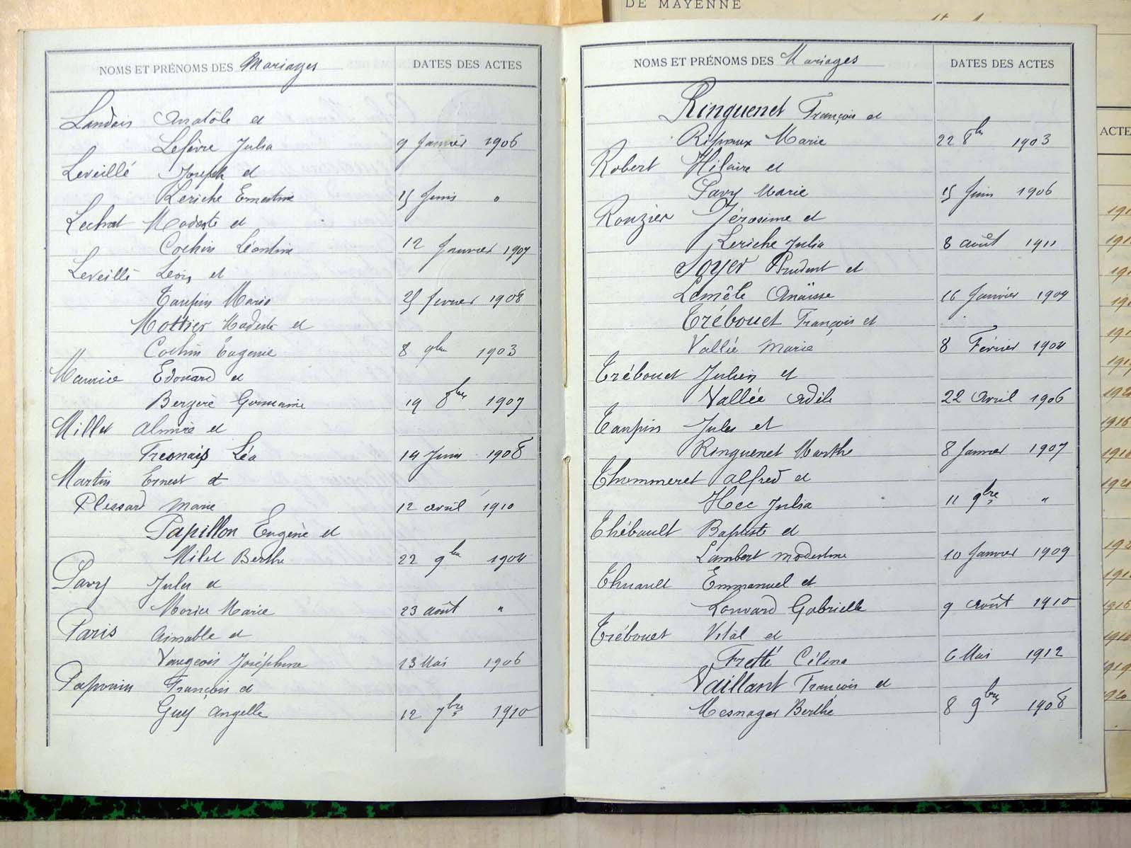 Mariages :
