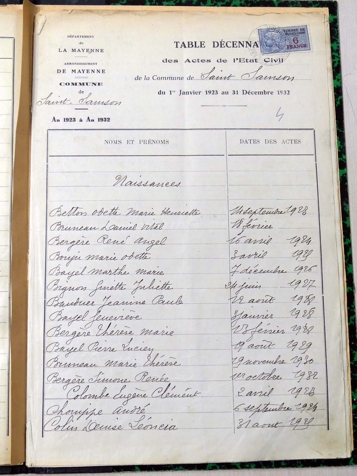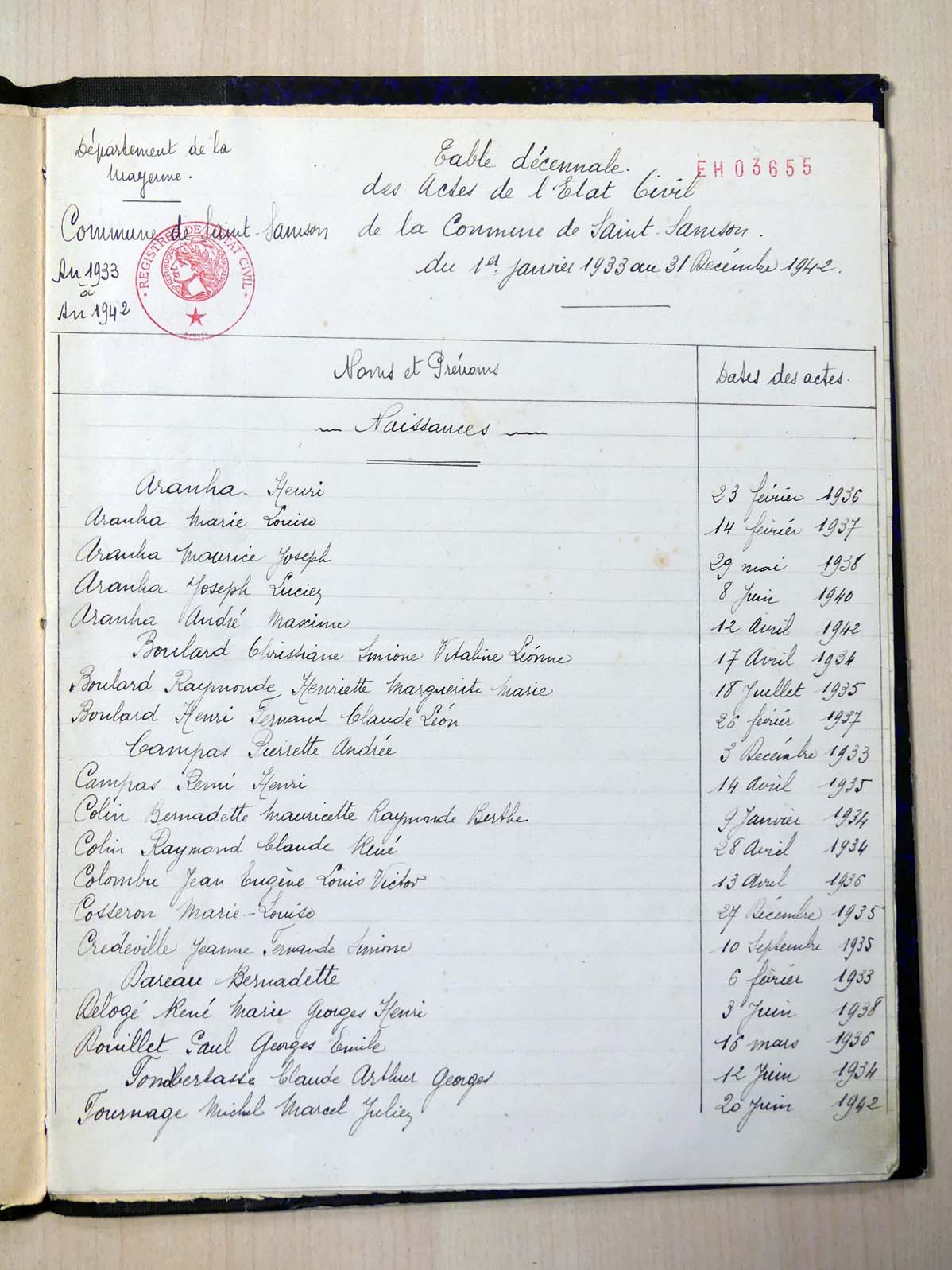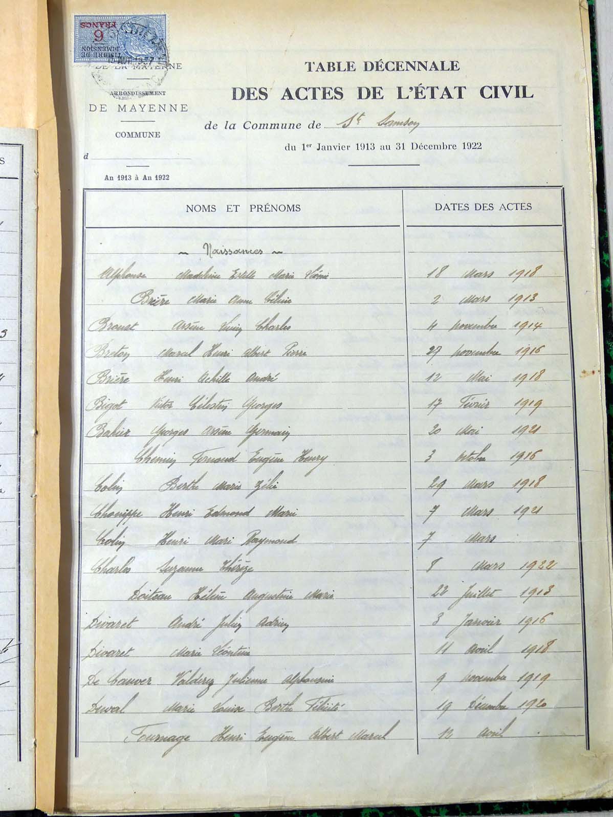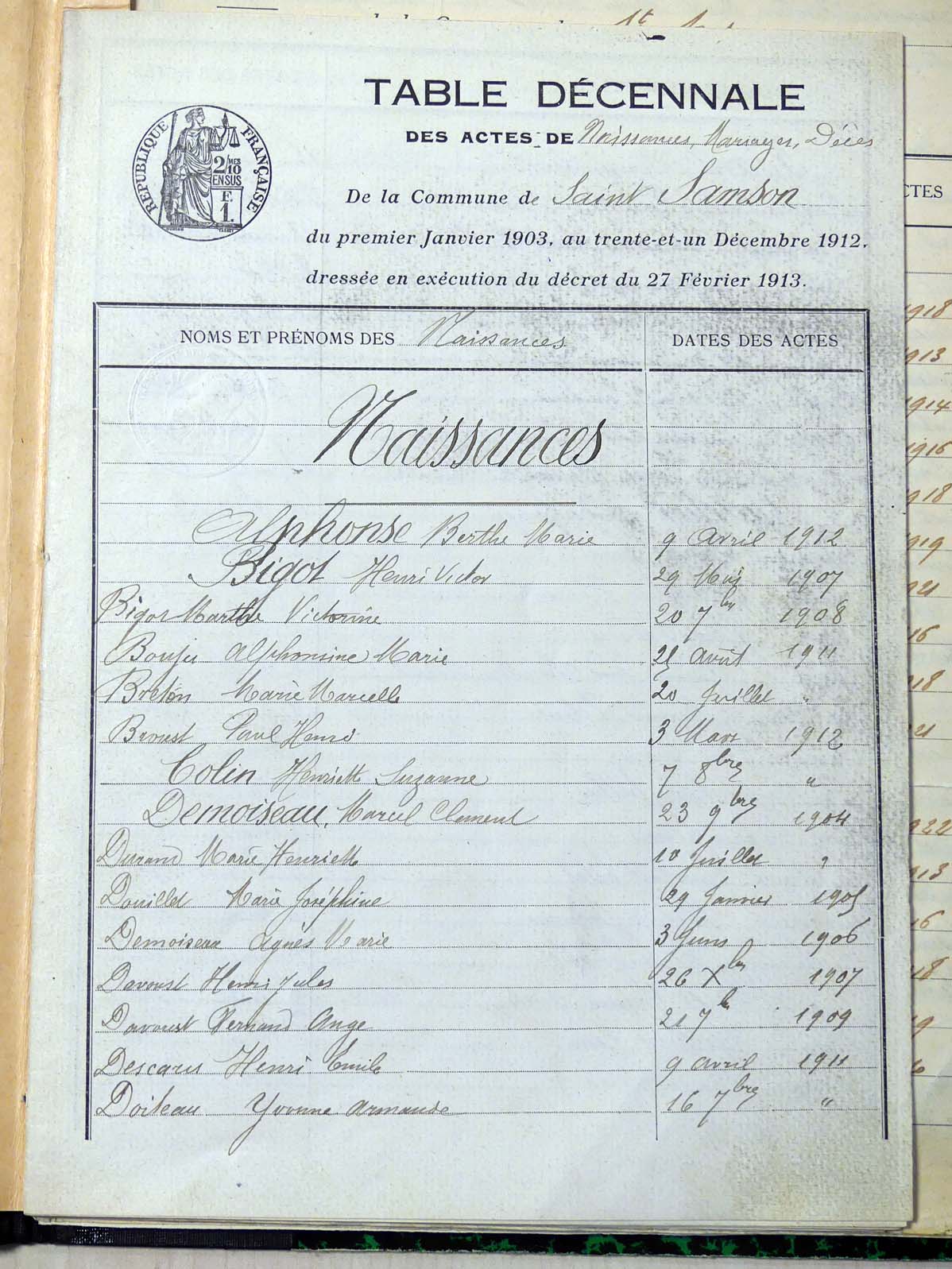 généalogiques de Saint-Samson - Tables décennales 1903 → 1942