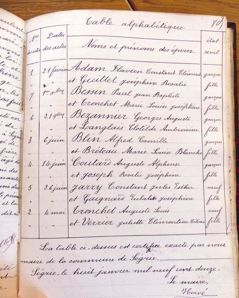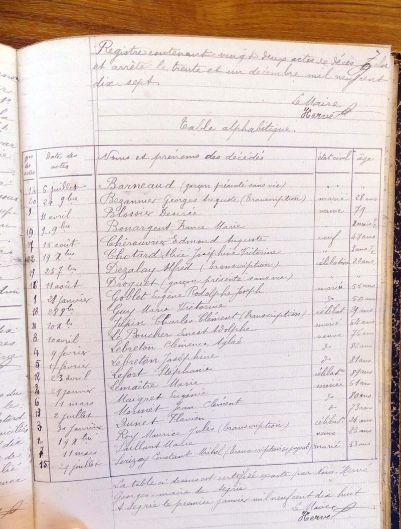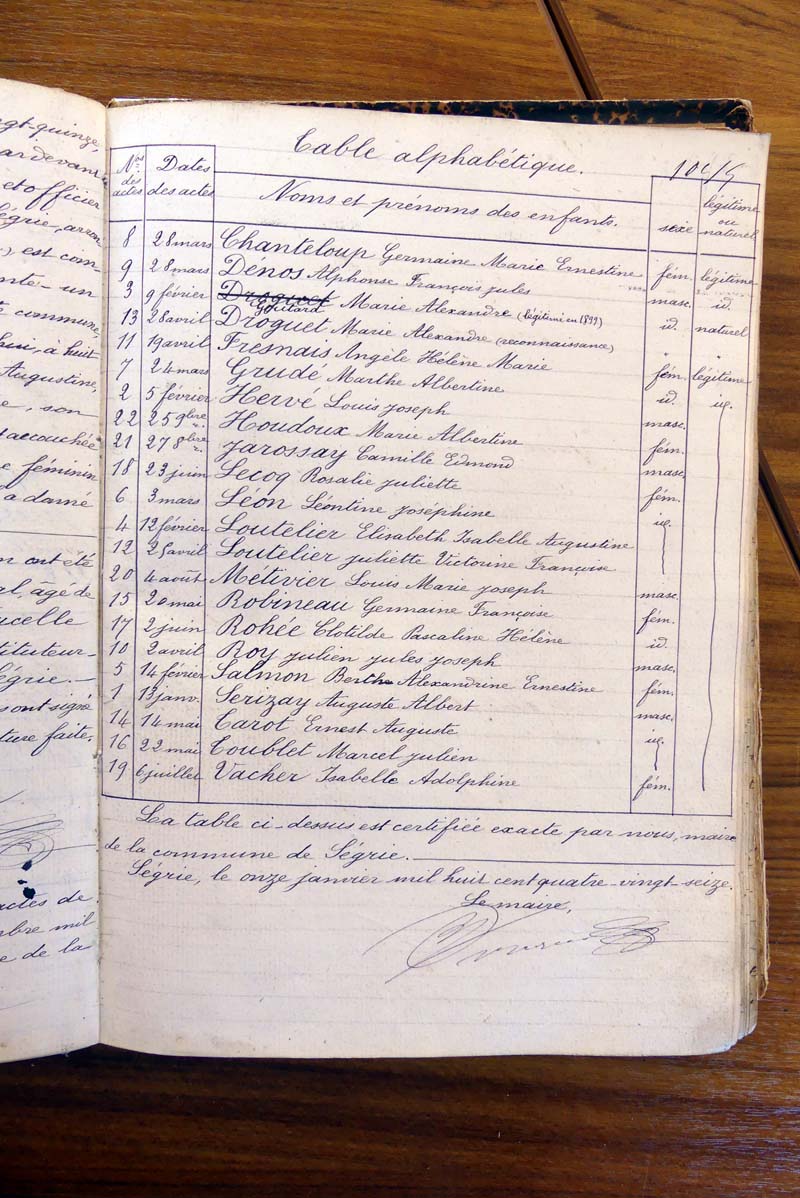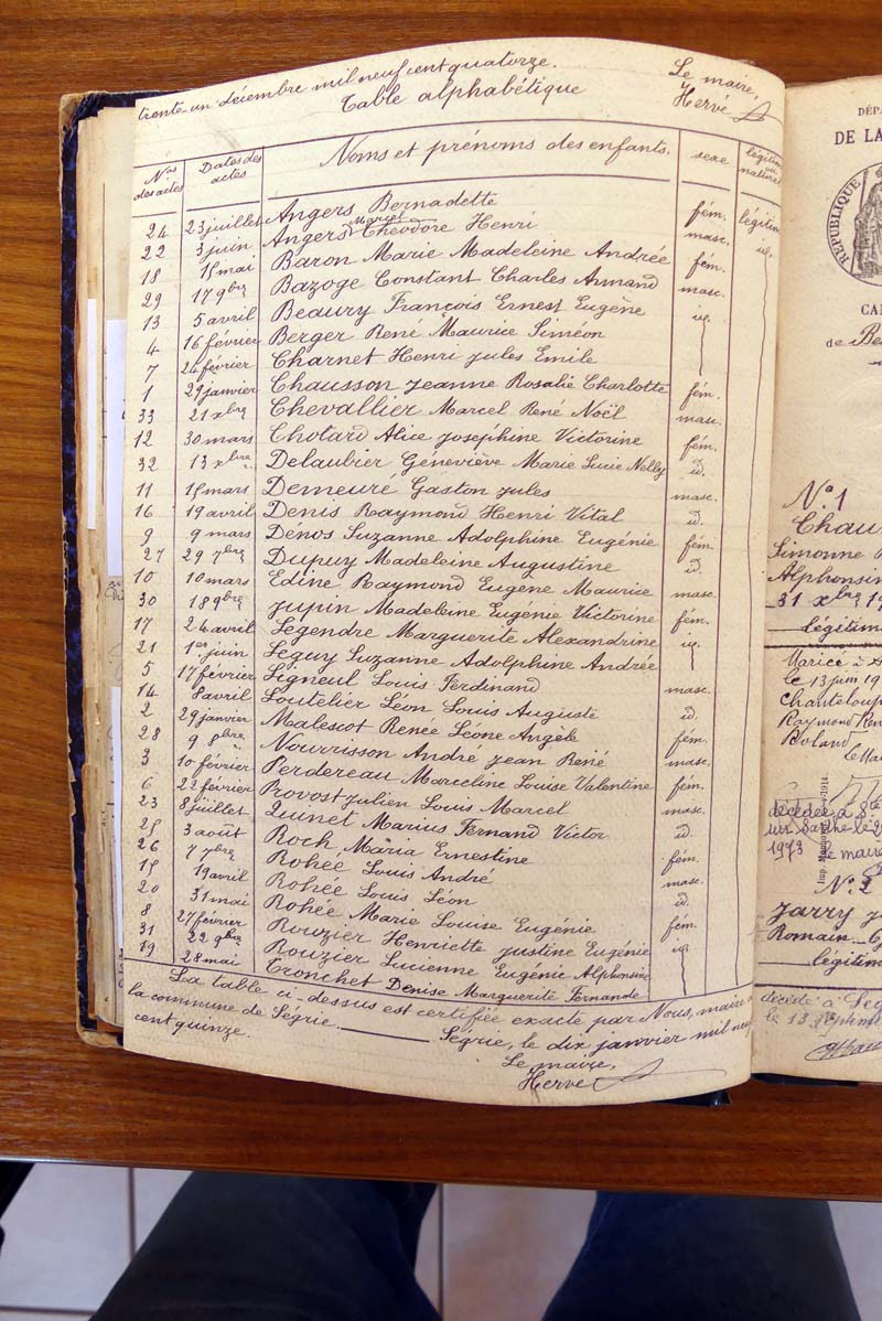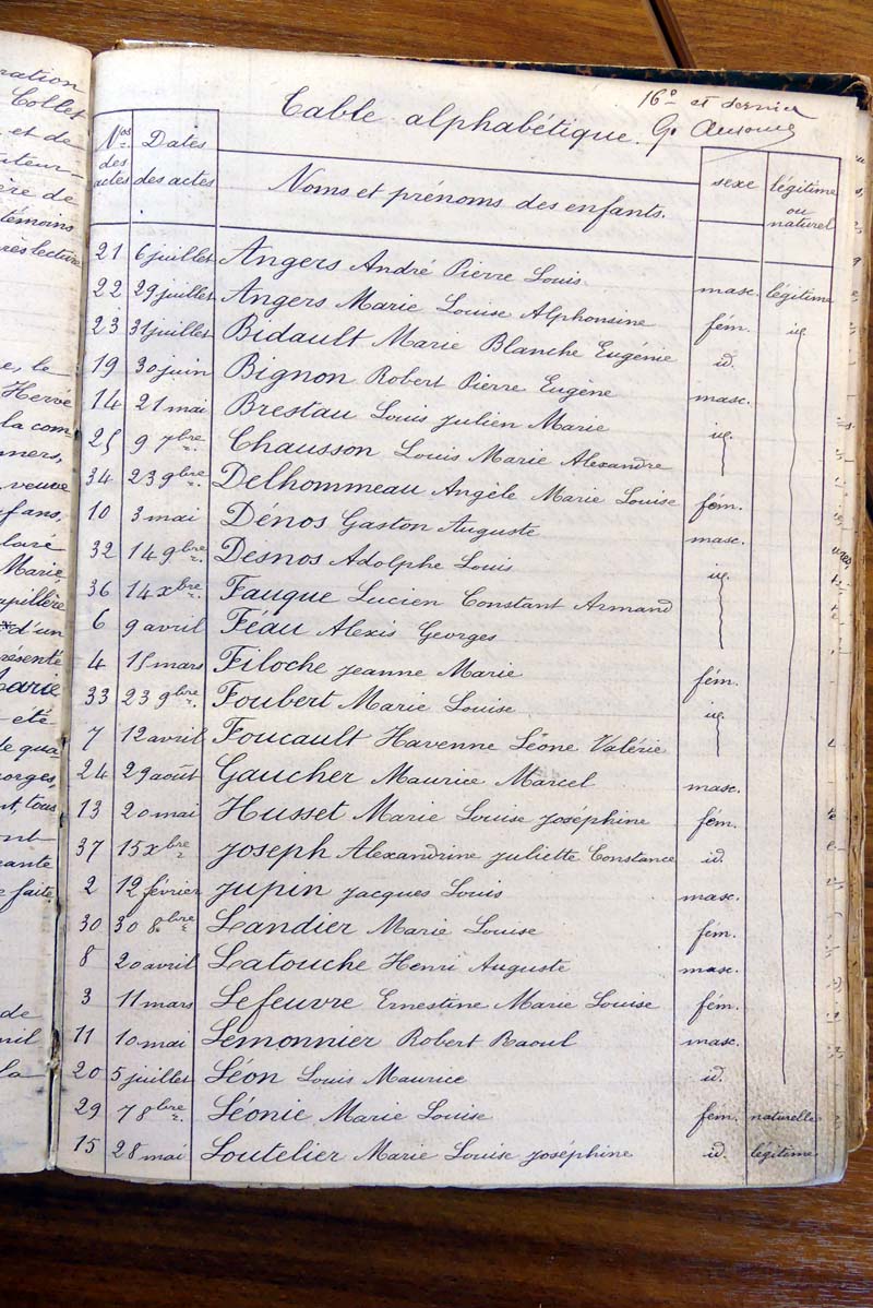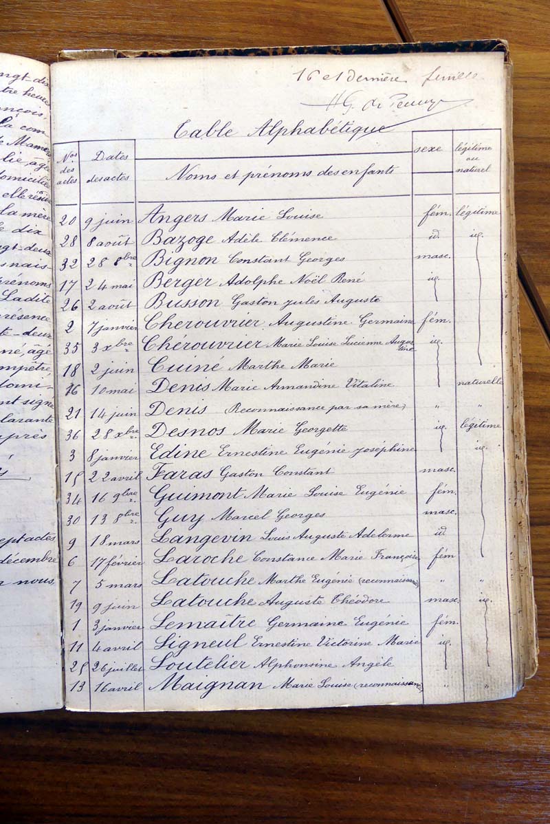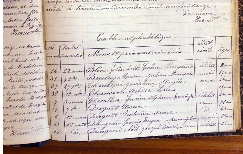 par ordre alphabétique (Elles proviennent des registres d'actes de naissance, de mariage et décès)...
