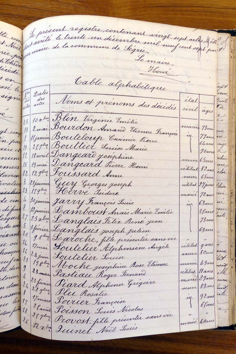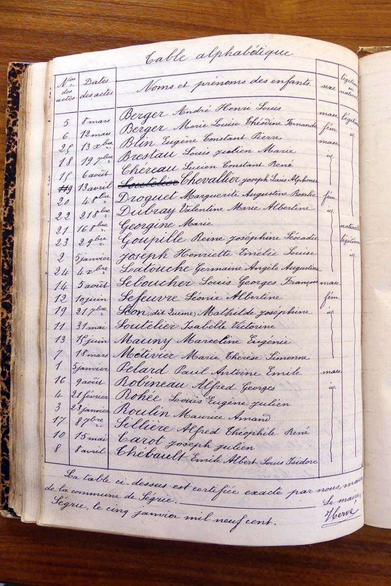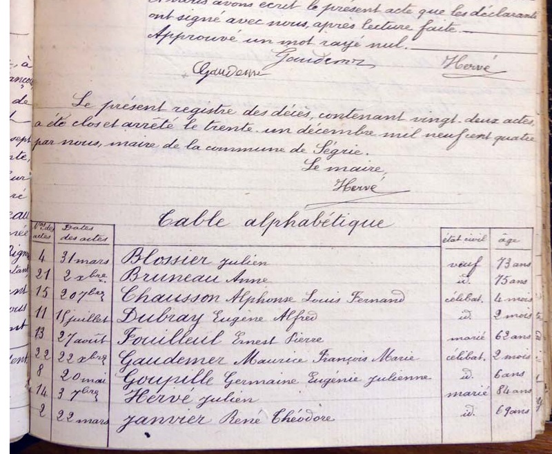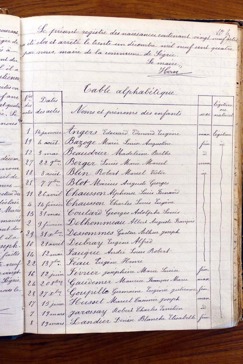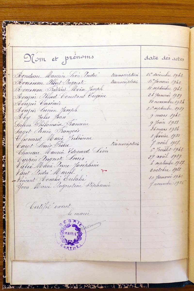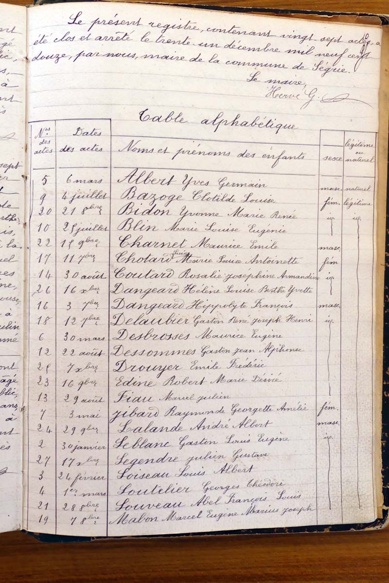 par ordre alphabétique (Elles proviennent des registres d'actes de naissance, de mariage et décès)...