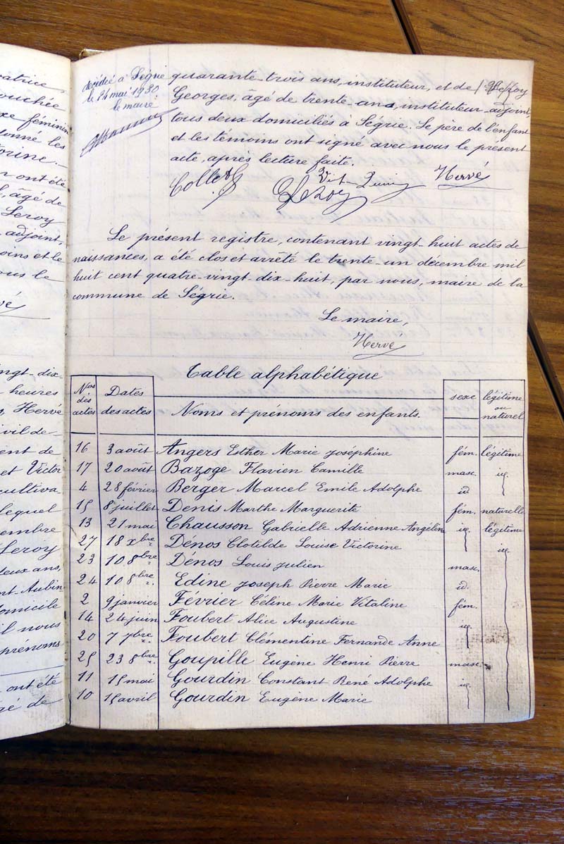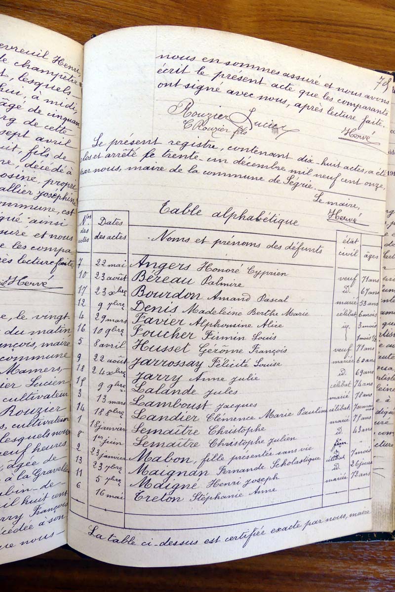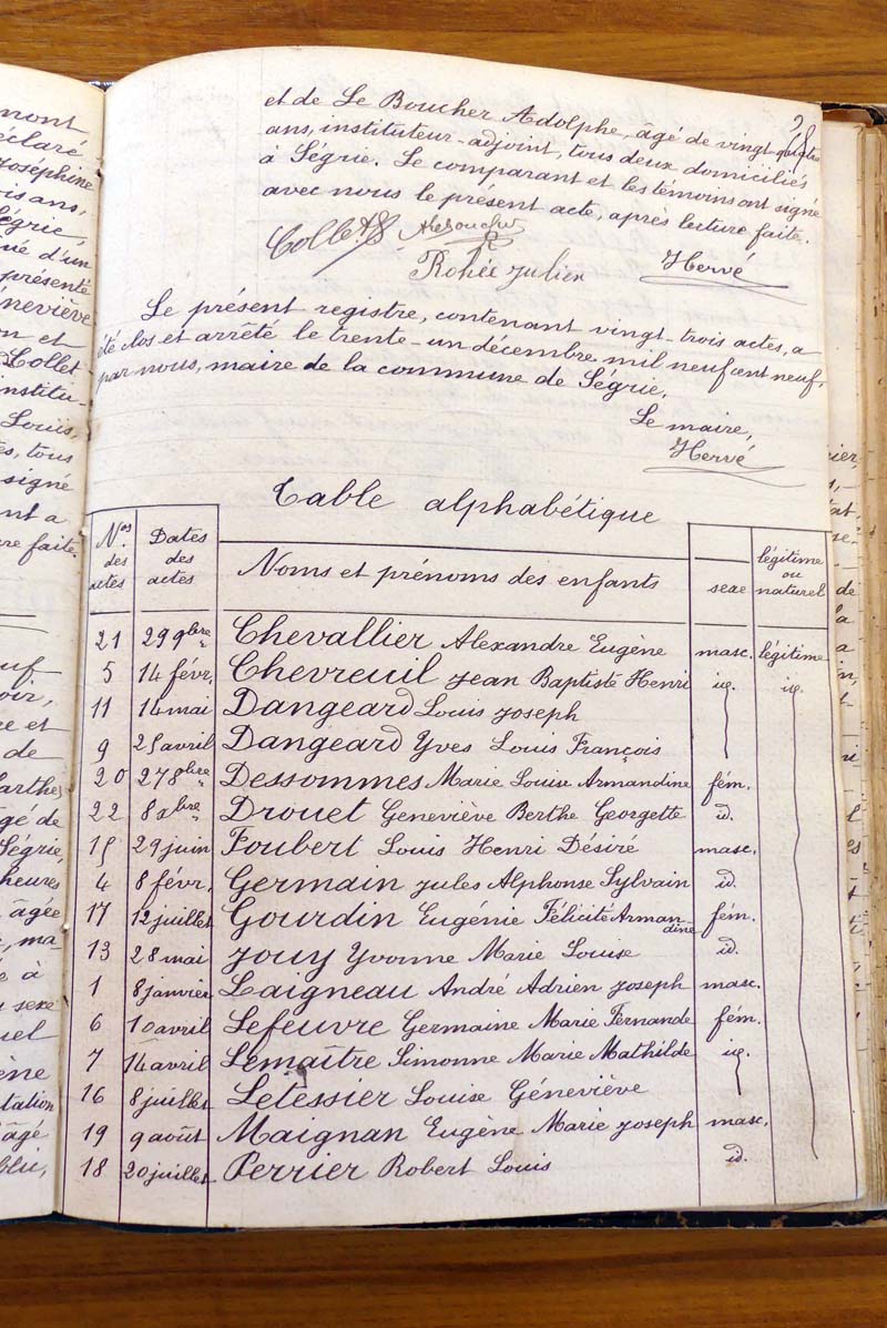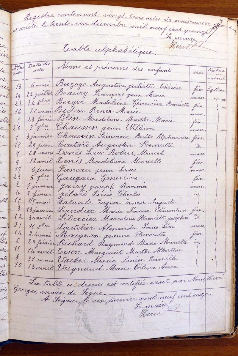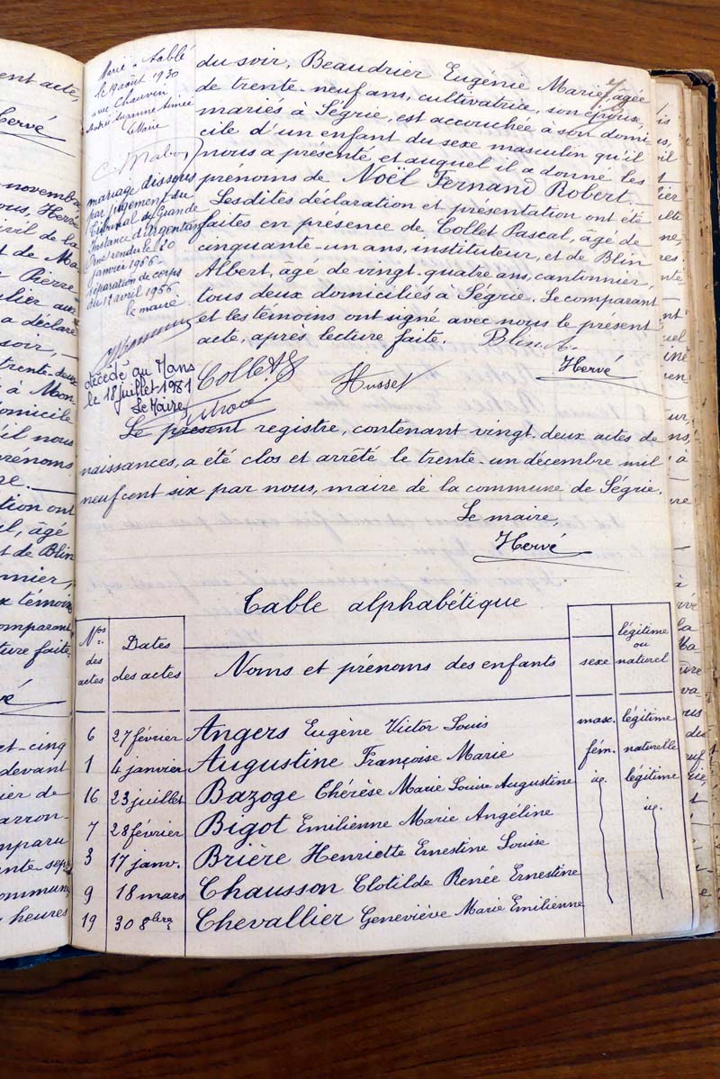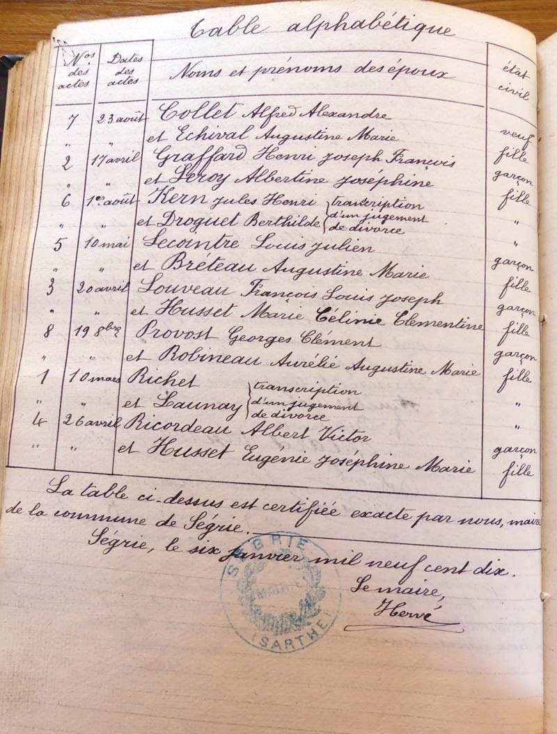 par ordre alphabétique (Elles proviennent des registres d'actes de naissance, de mariage et décès)...