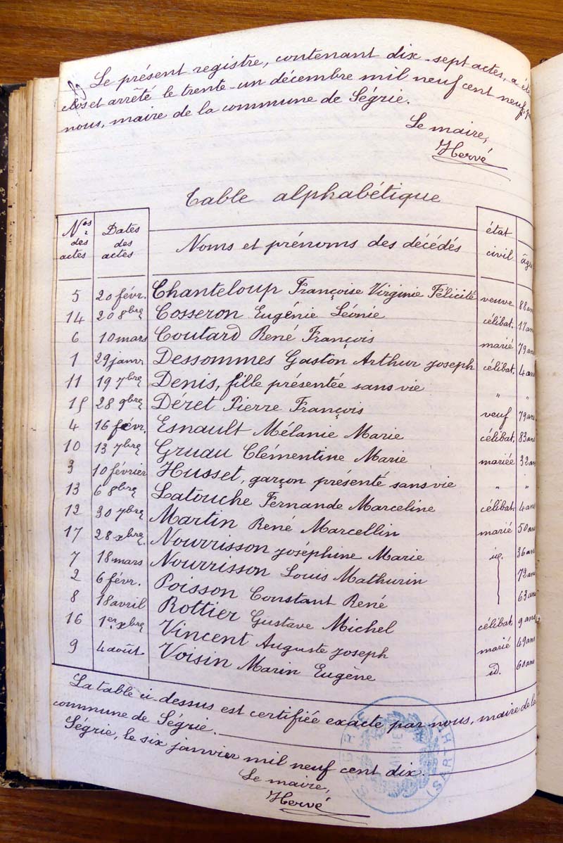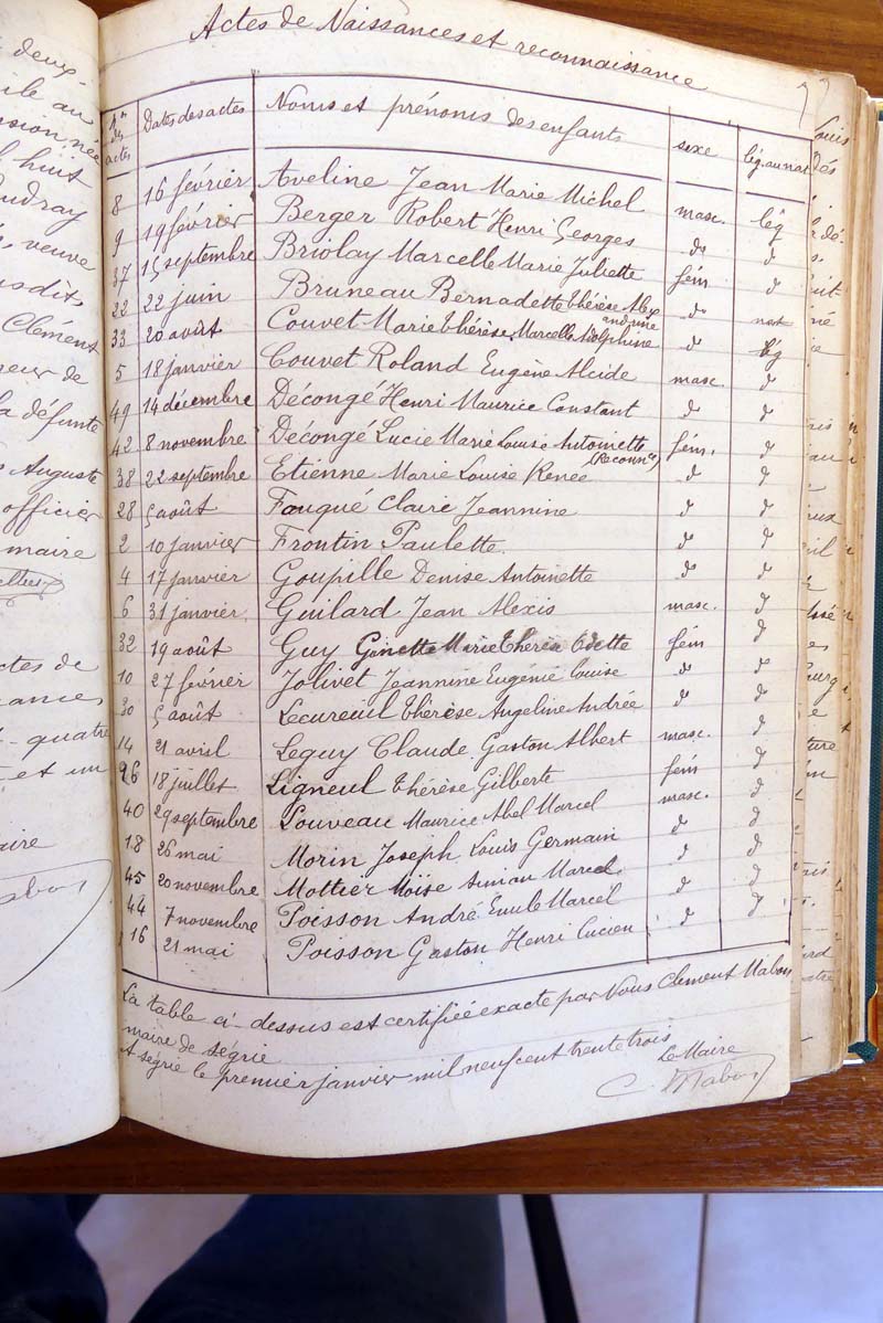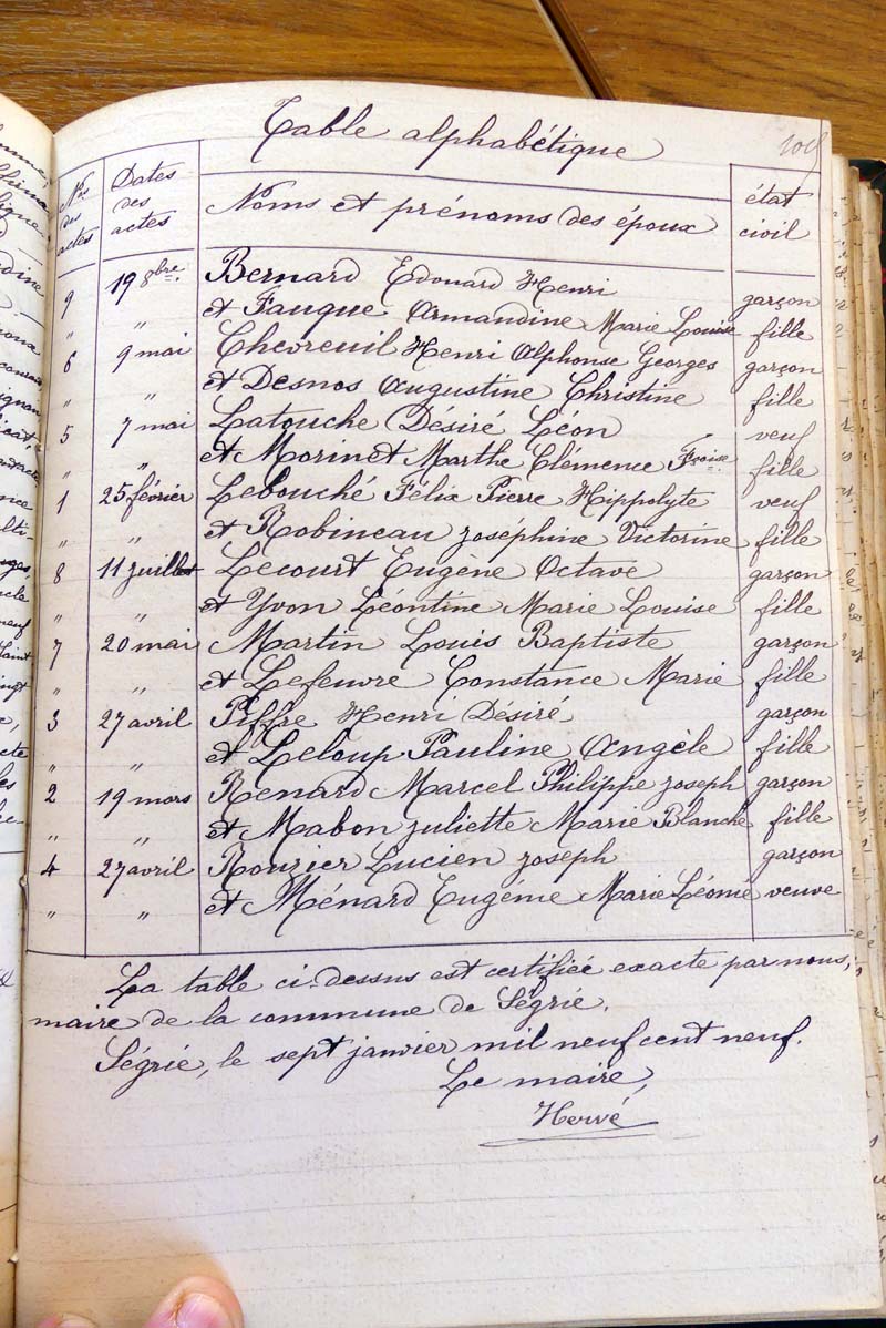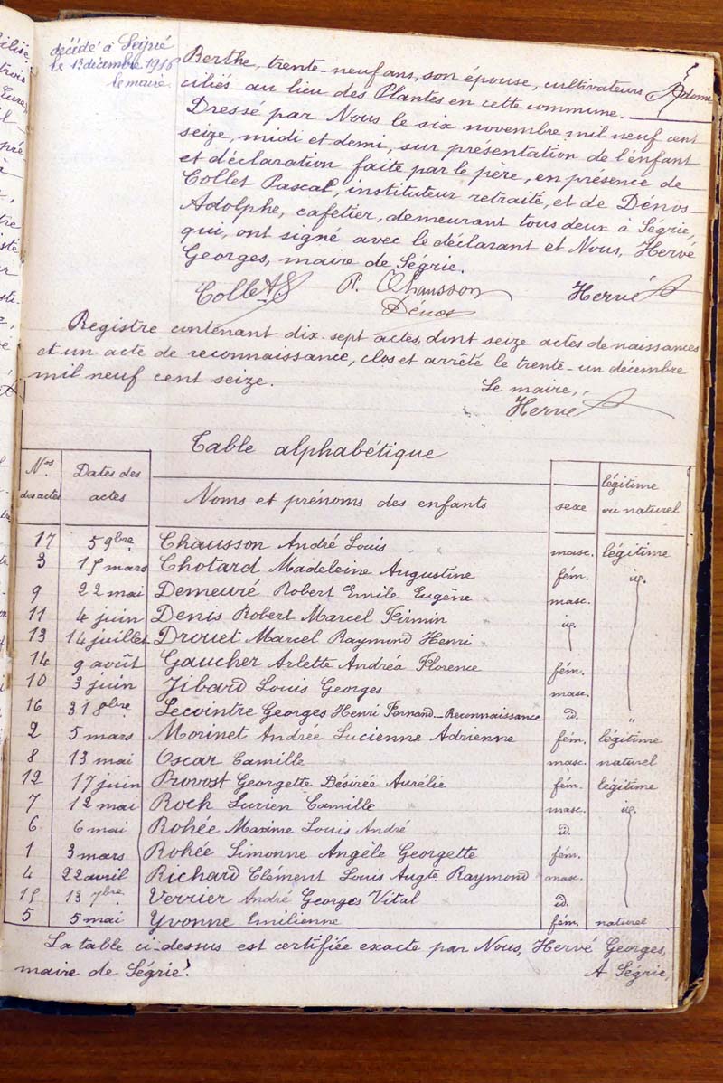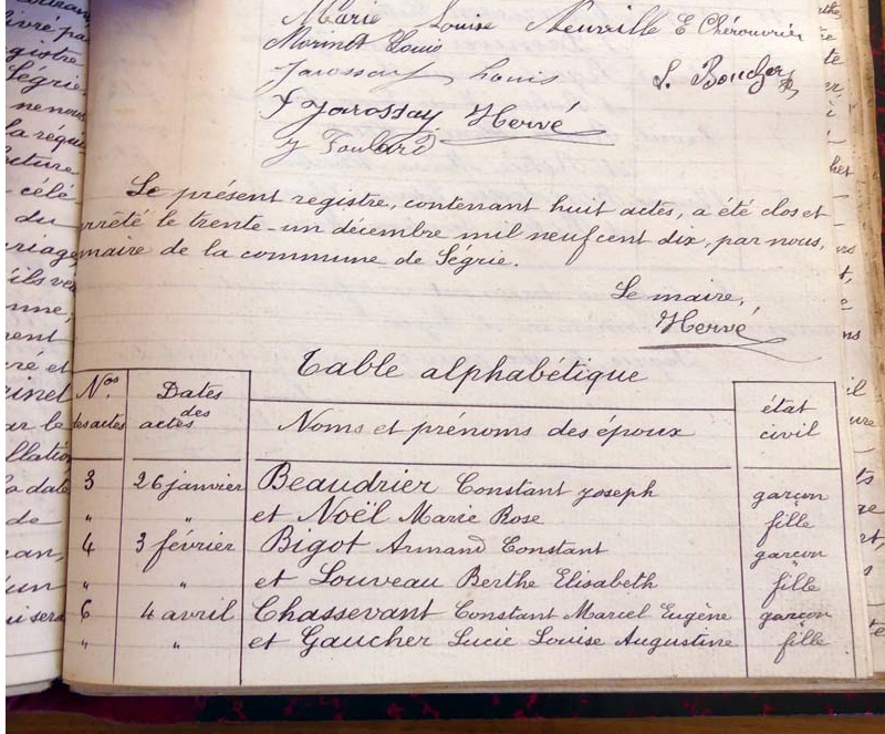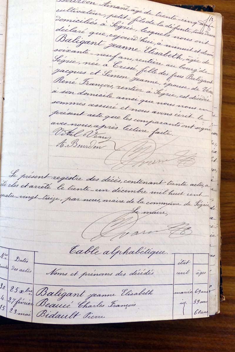 par ordre alphabétique (Elles proviennent des registres d'actes de naissance, de mariage et décès)...