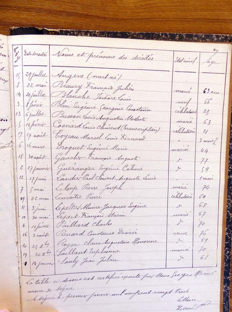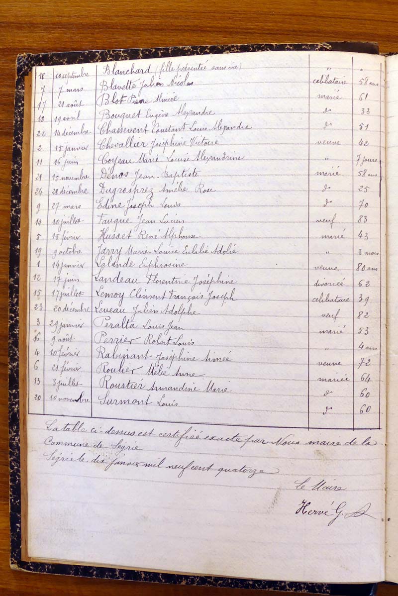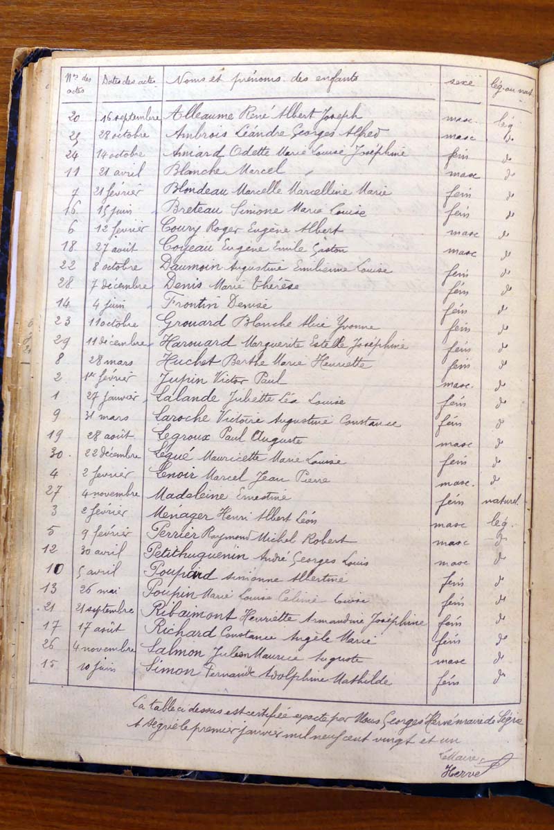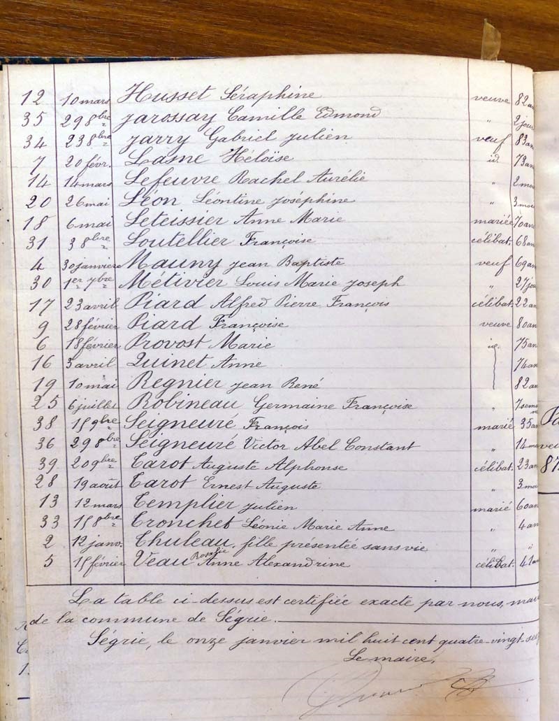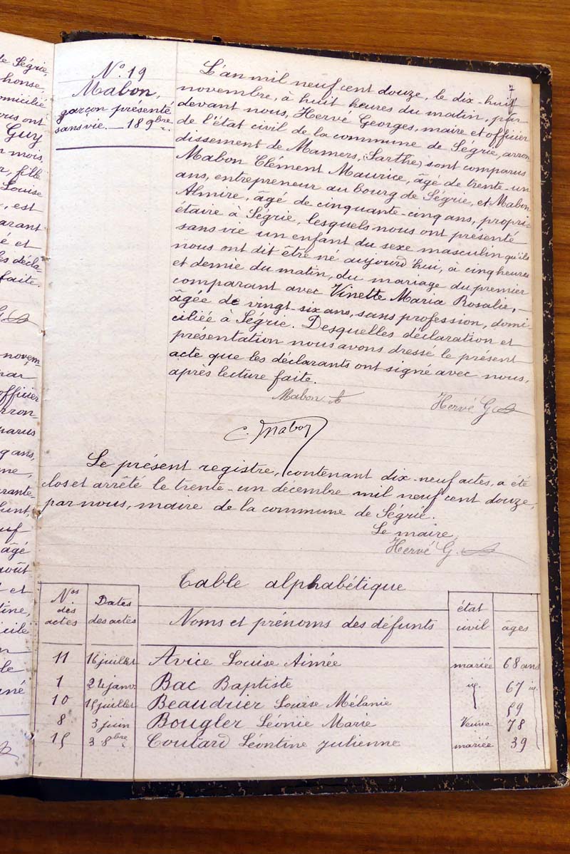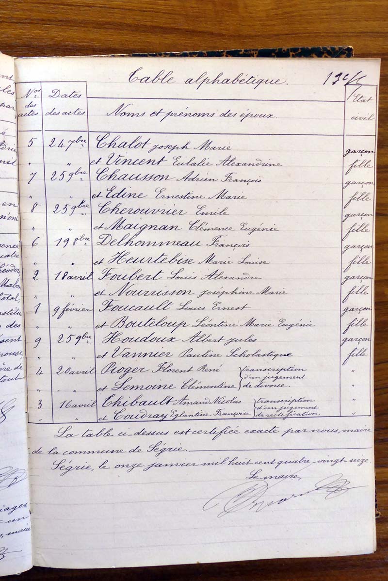 par ordre alphabétique (Elles proviennent des registres d'actes de naissance, de mariage et décès)...