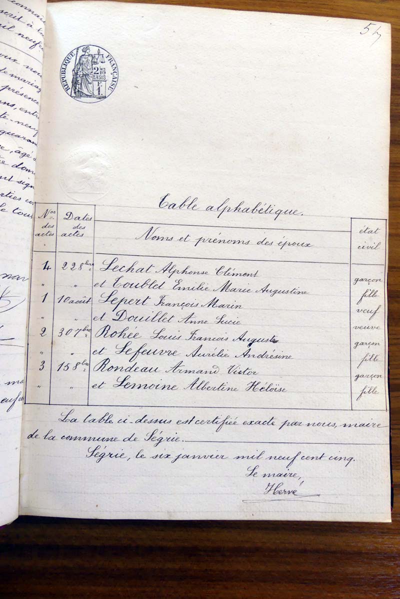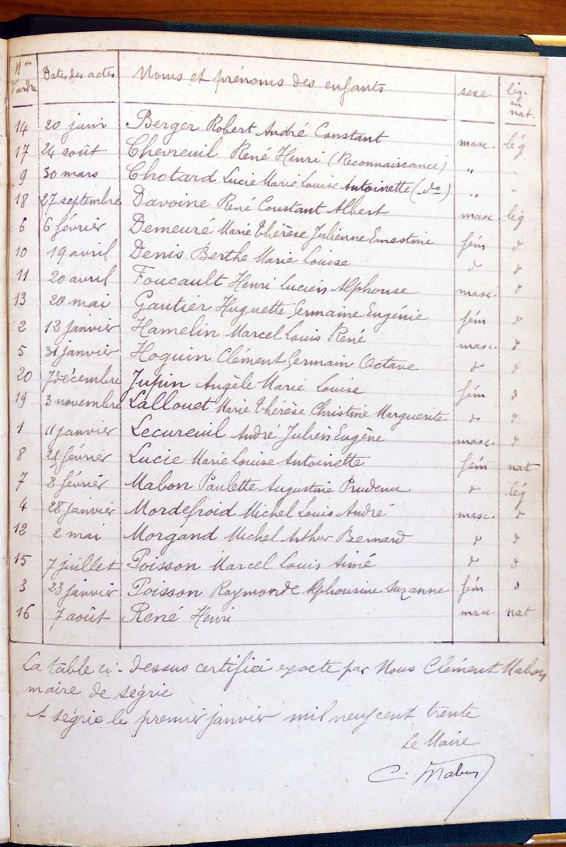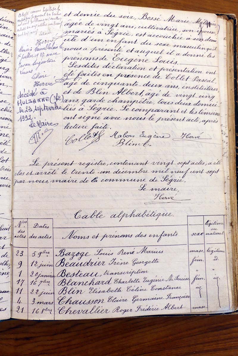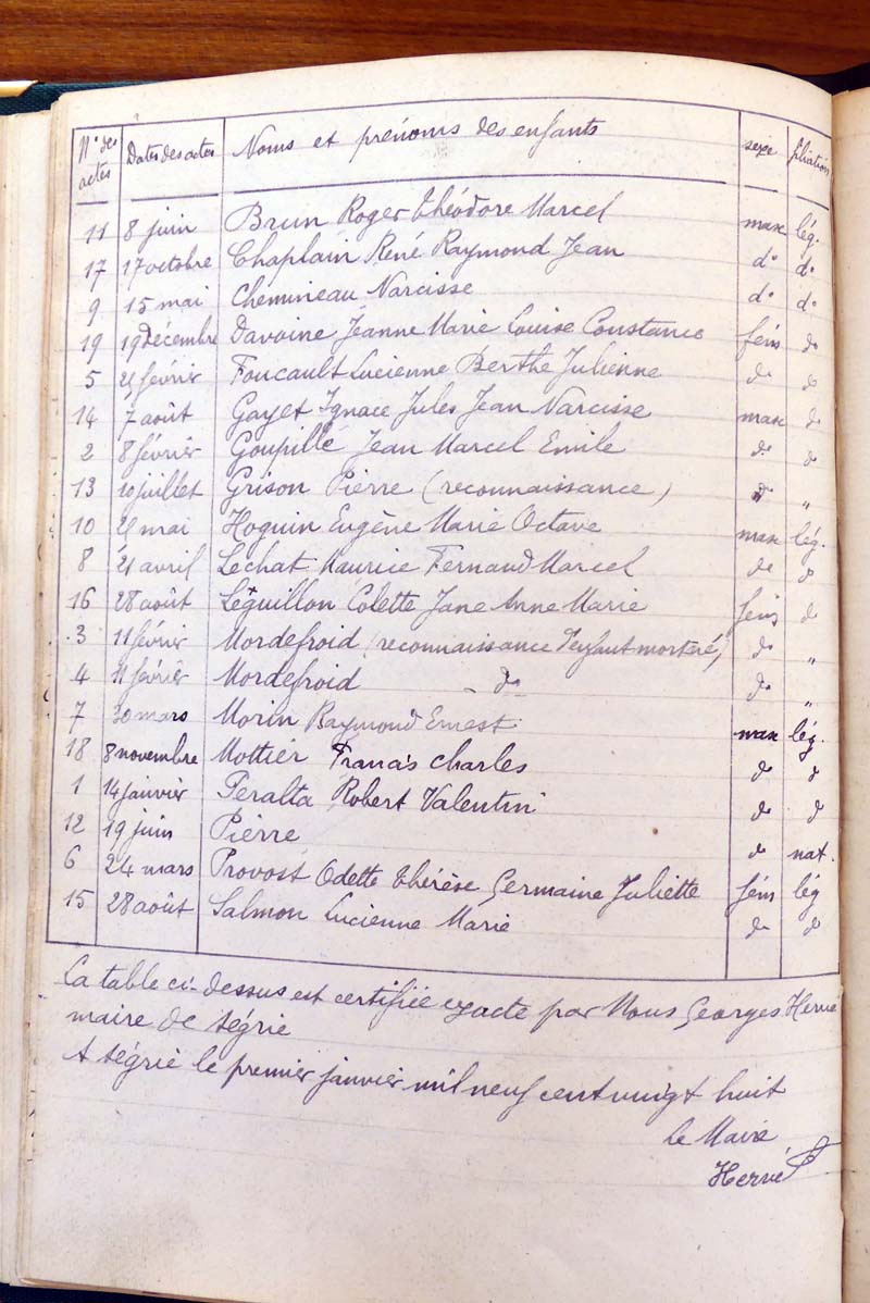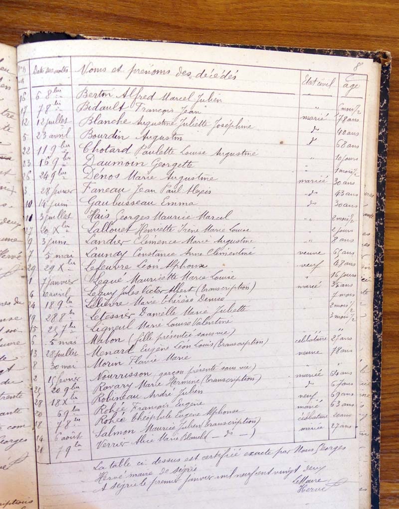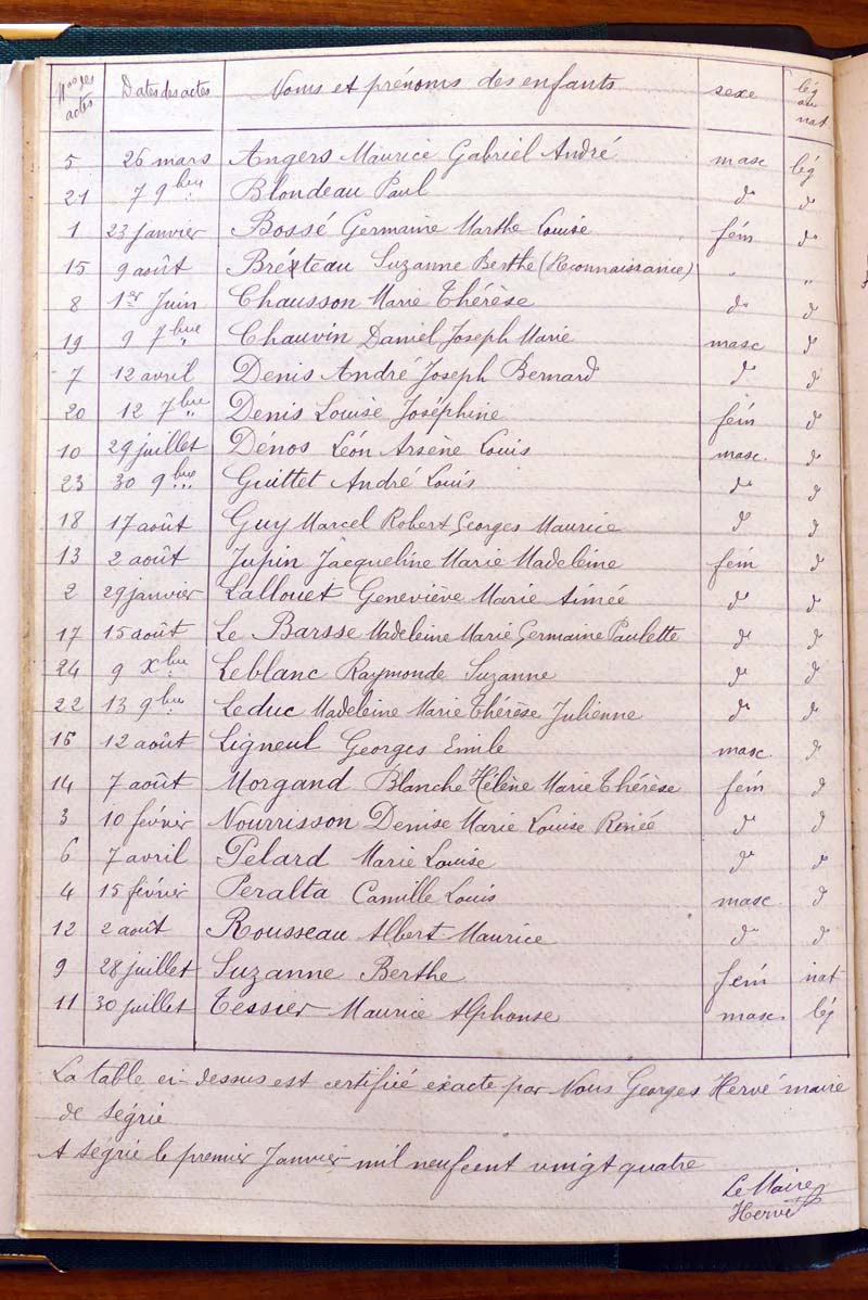 par ordre alphabétique (Elles proviennent des registres d'actes de naissance, de mariage et décès)...