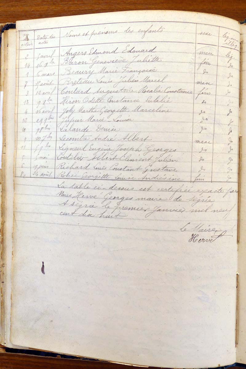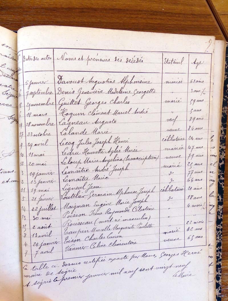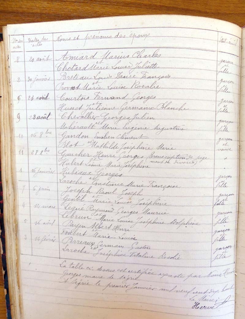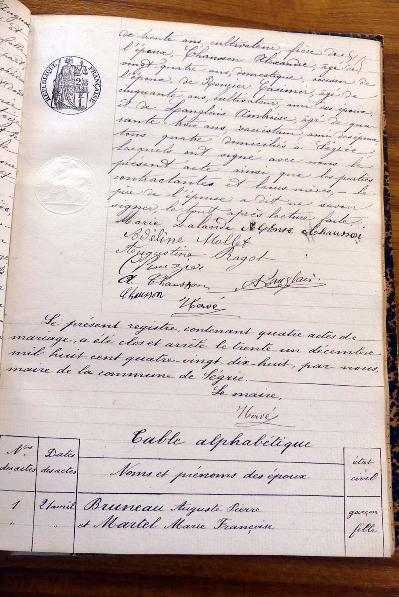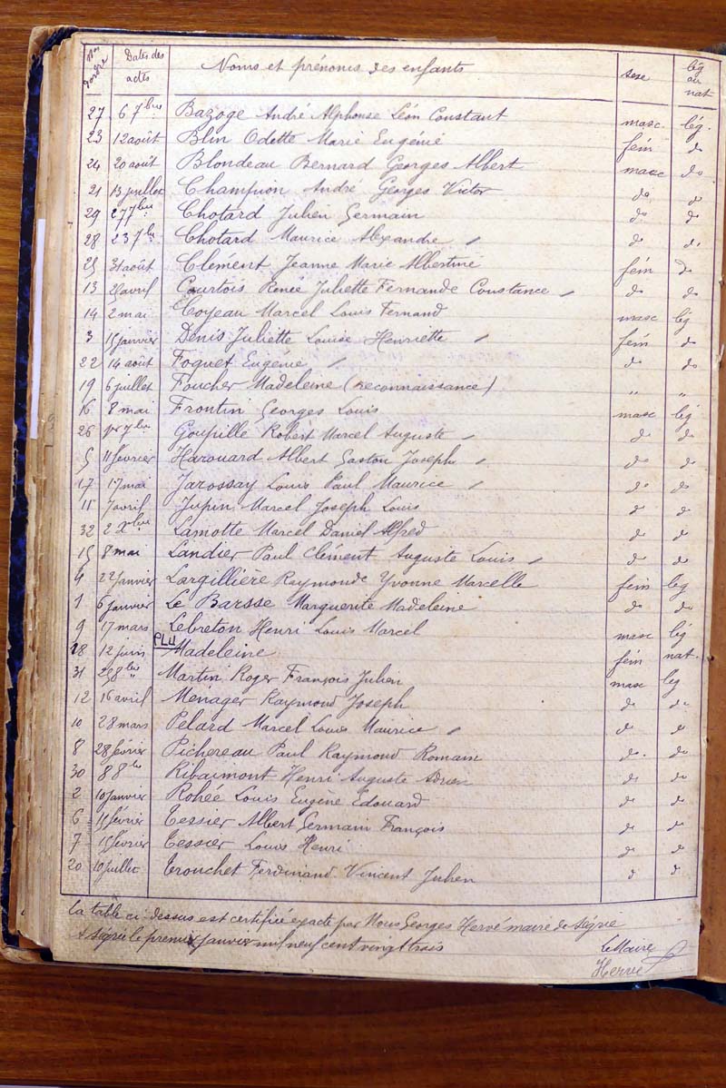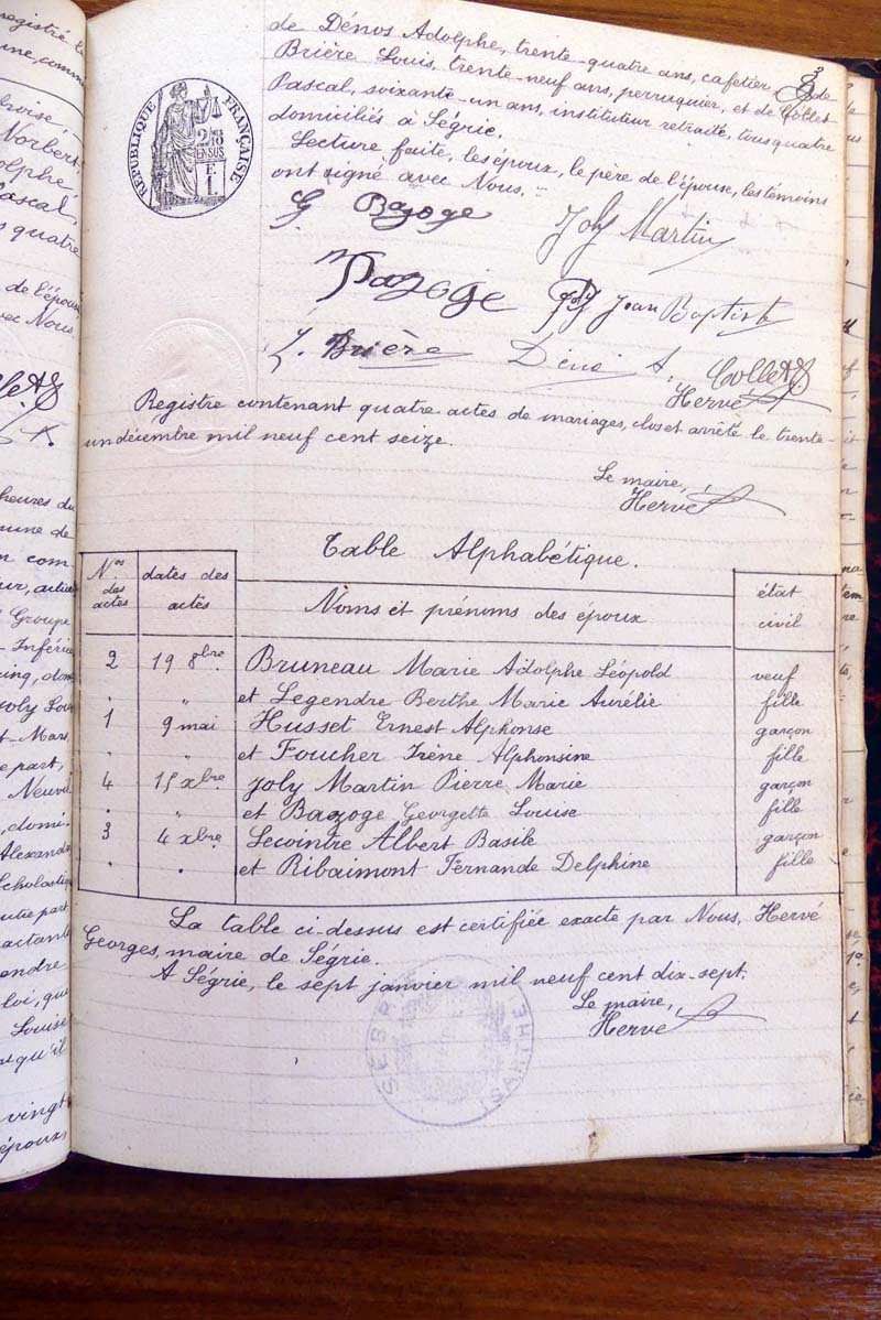 par ordre alphabétique (Elles proviennent des registres d'actes de naissance, de mariage et décès)...
