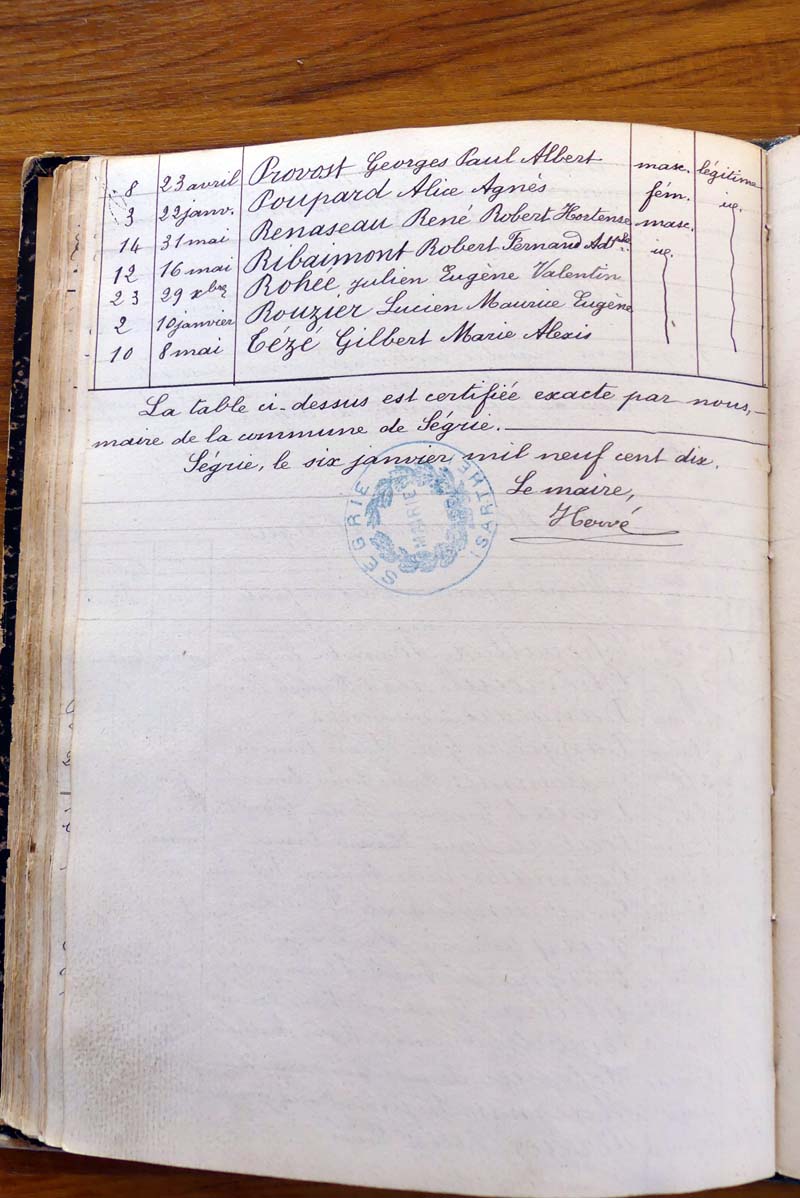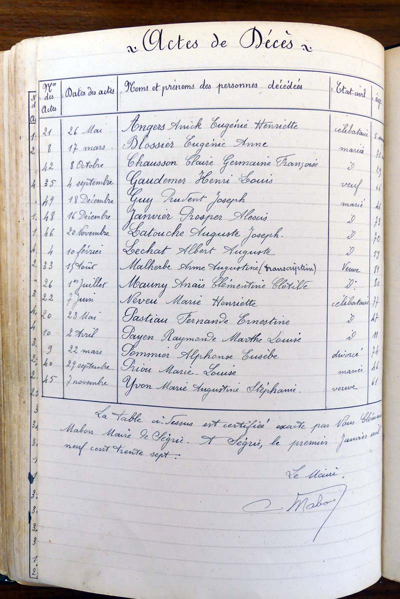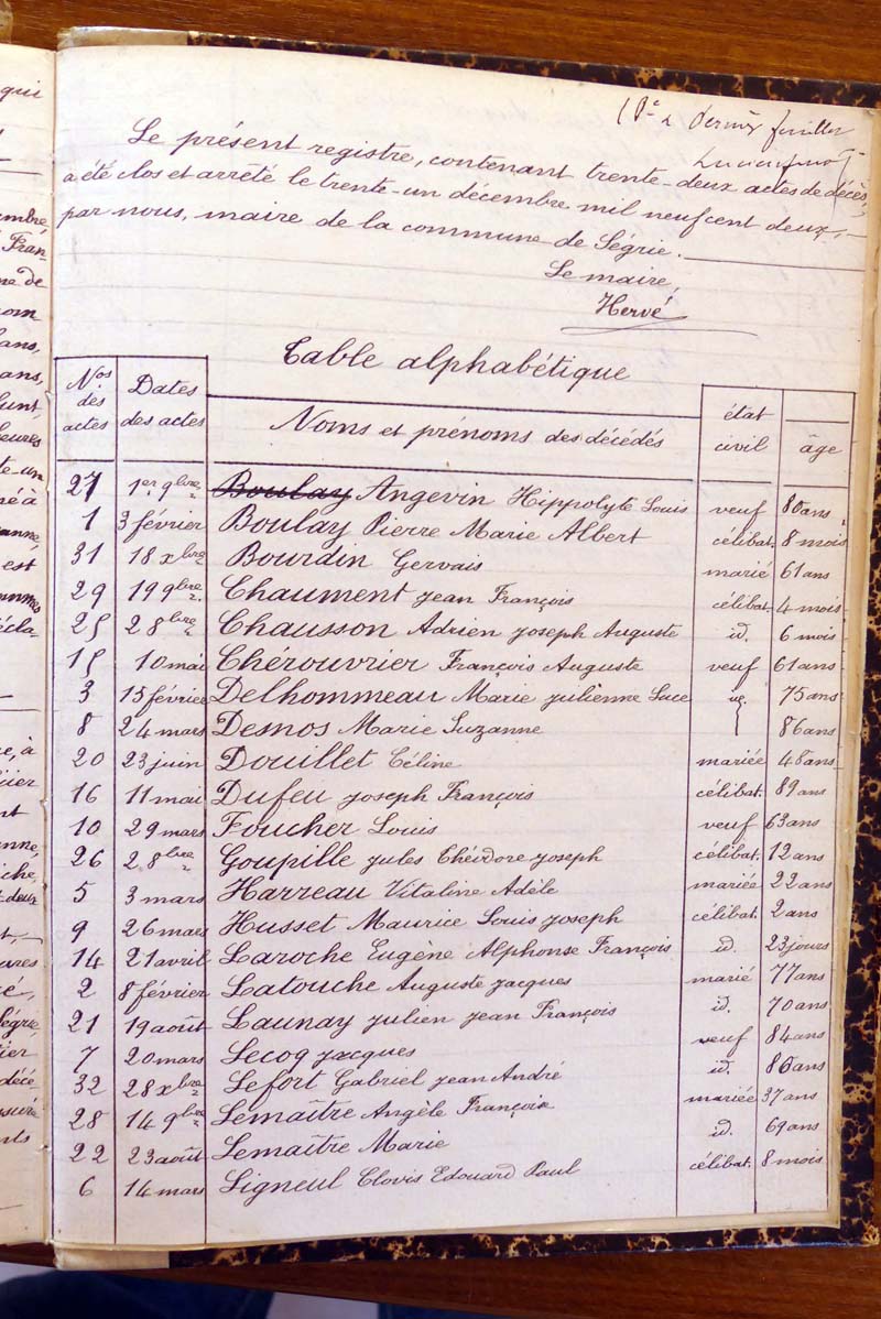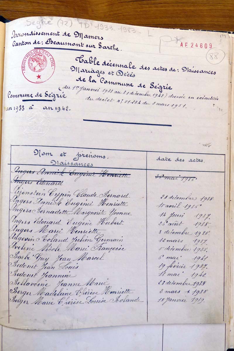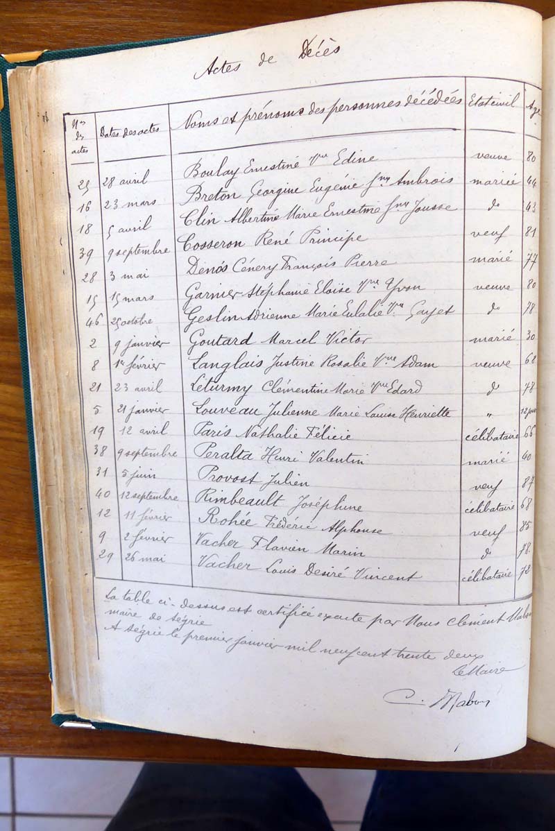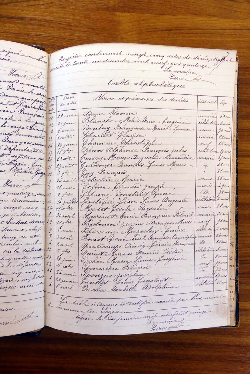 registre des tables décennales de 1893 à 1932 ayant disparu pour