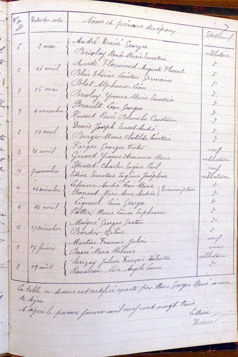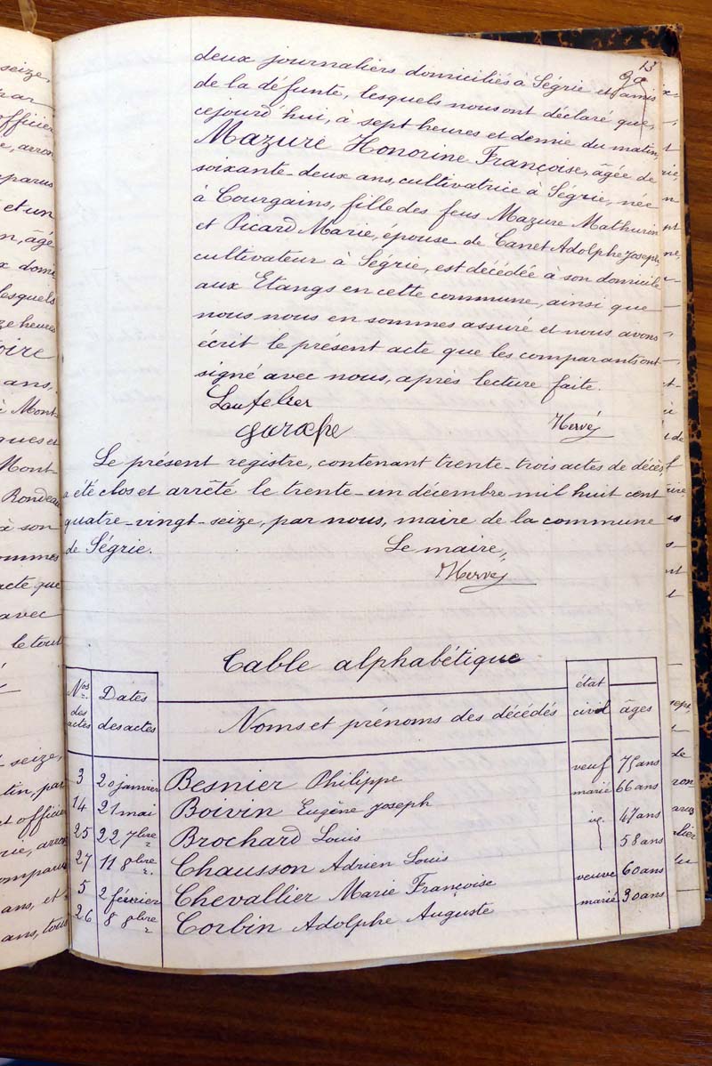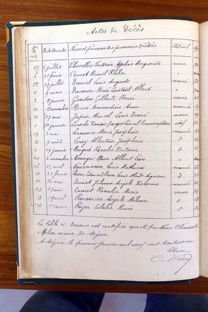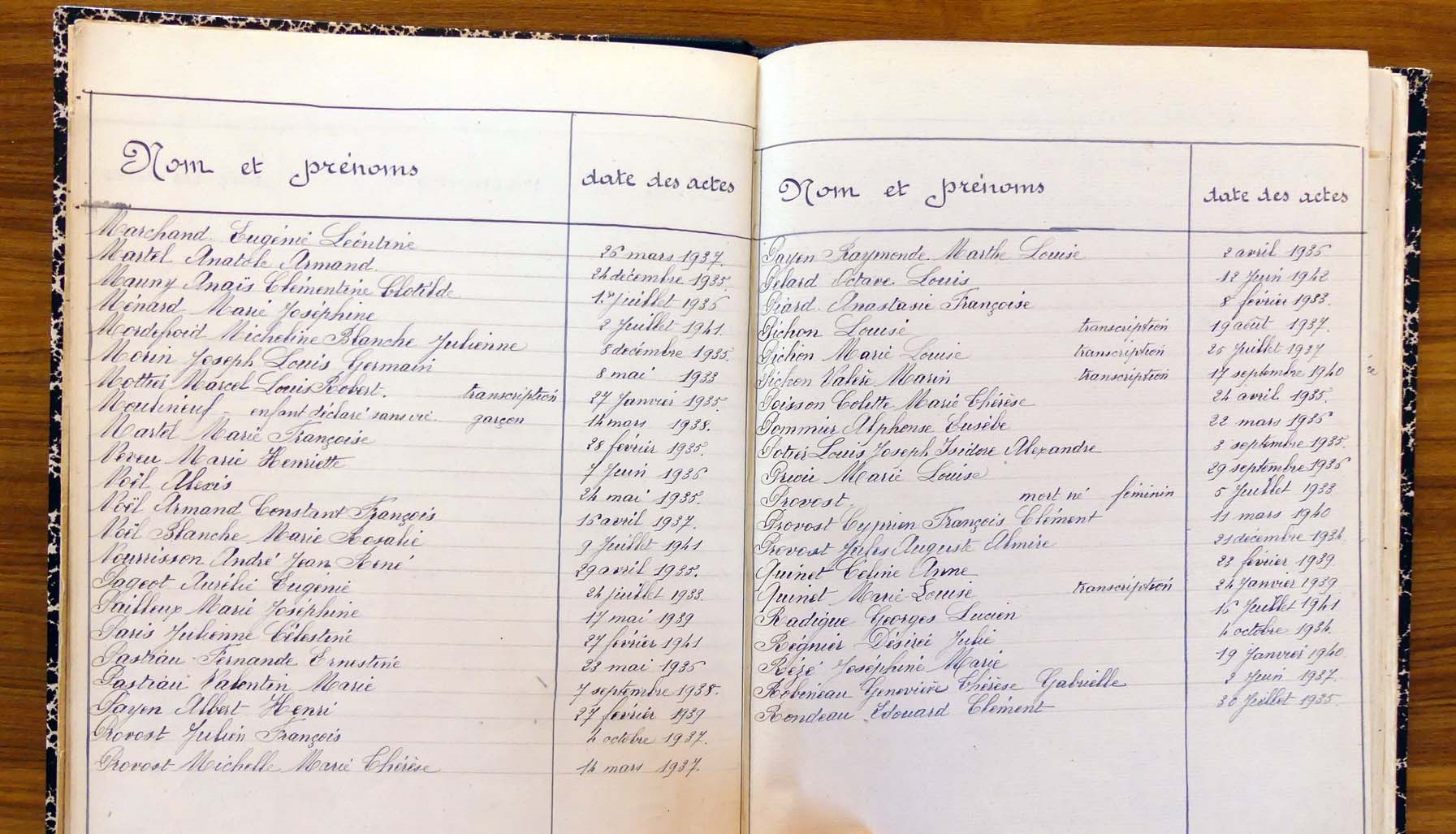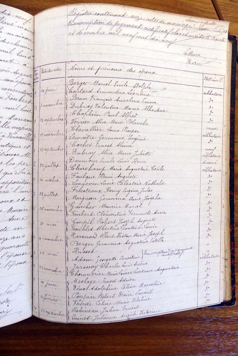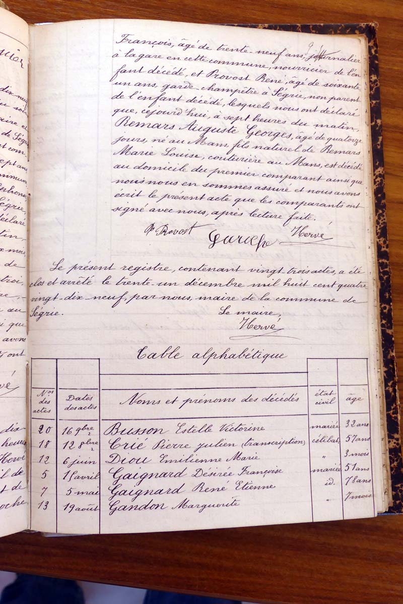 registre des tables décennales de 1893 à 1932 ayant disparu pour