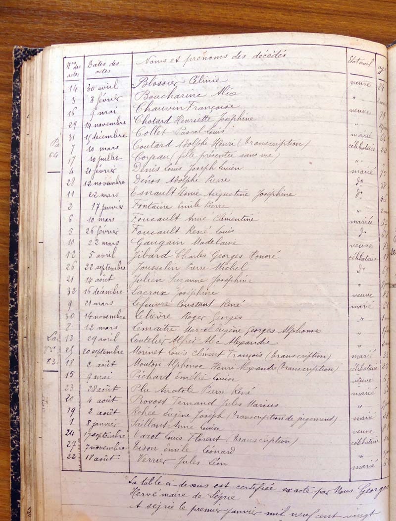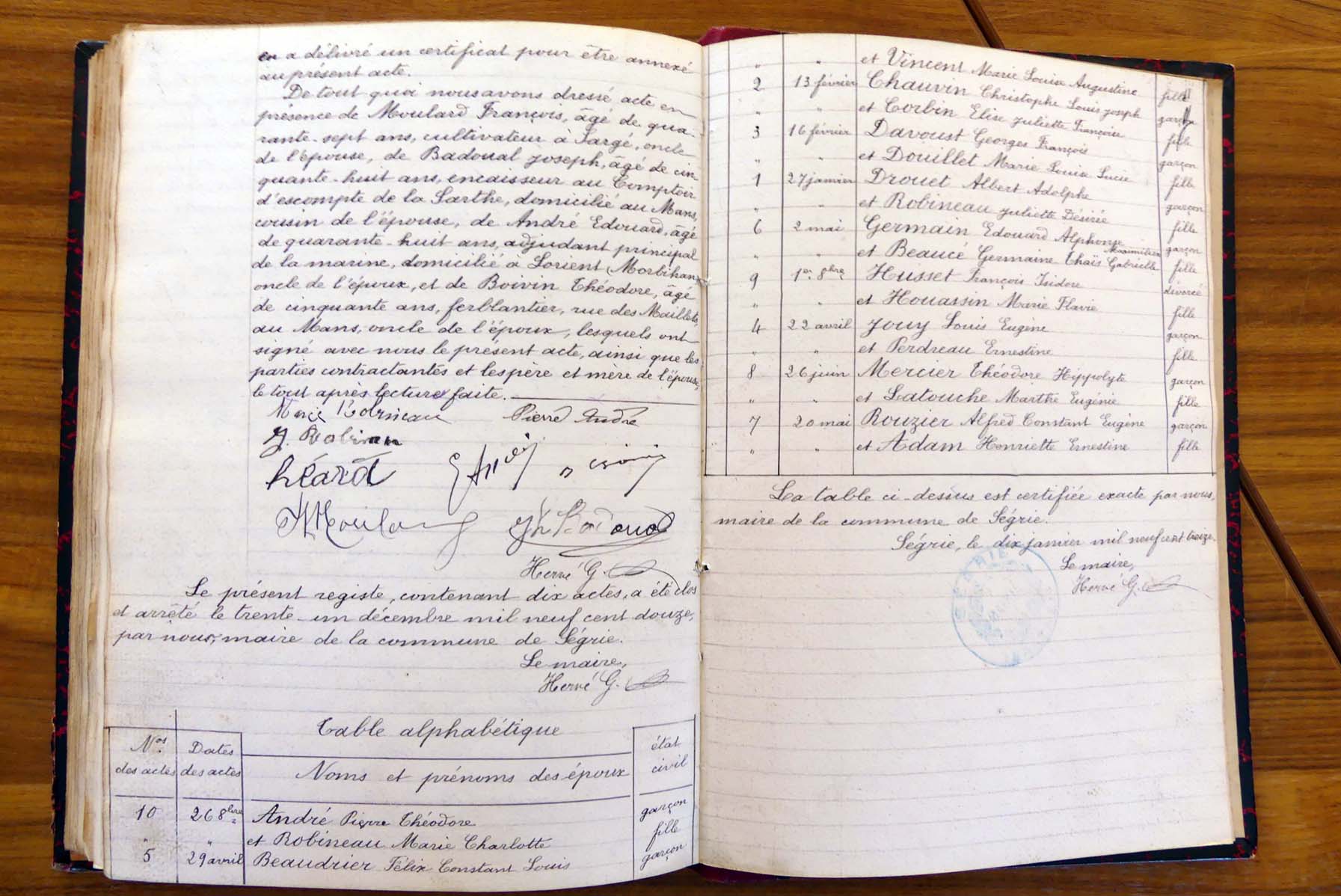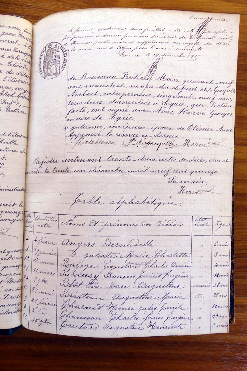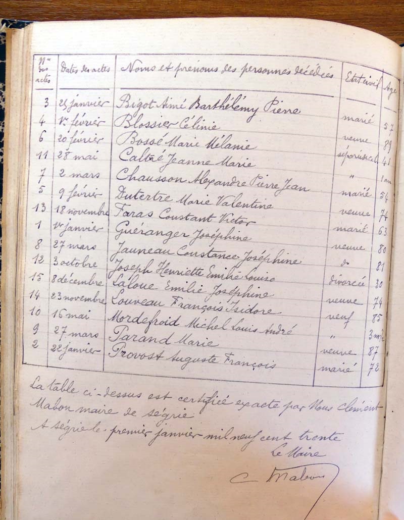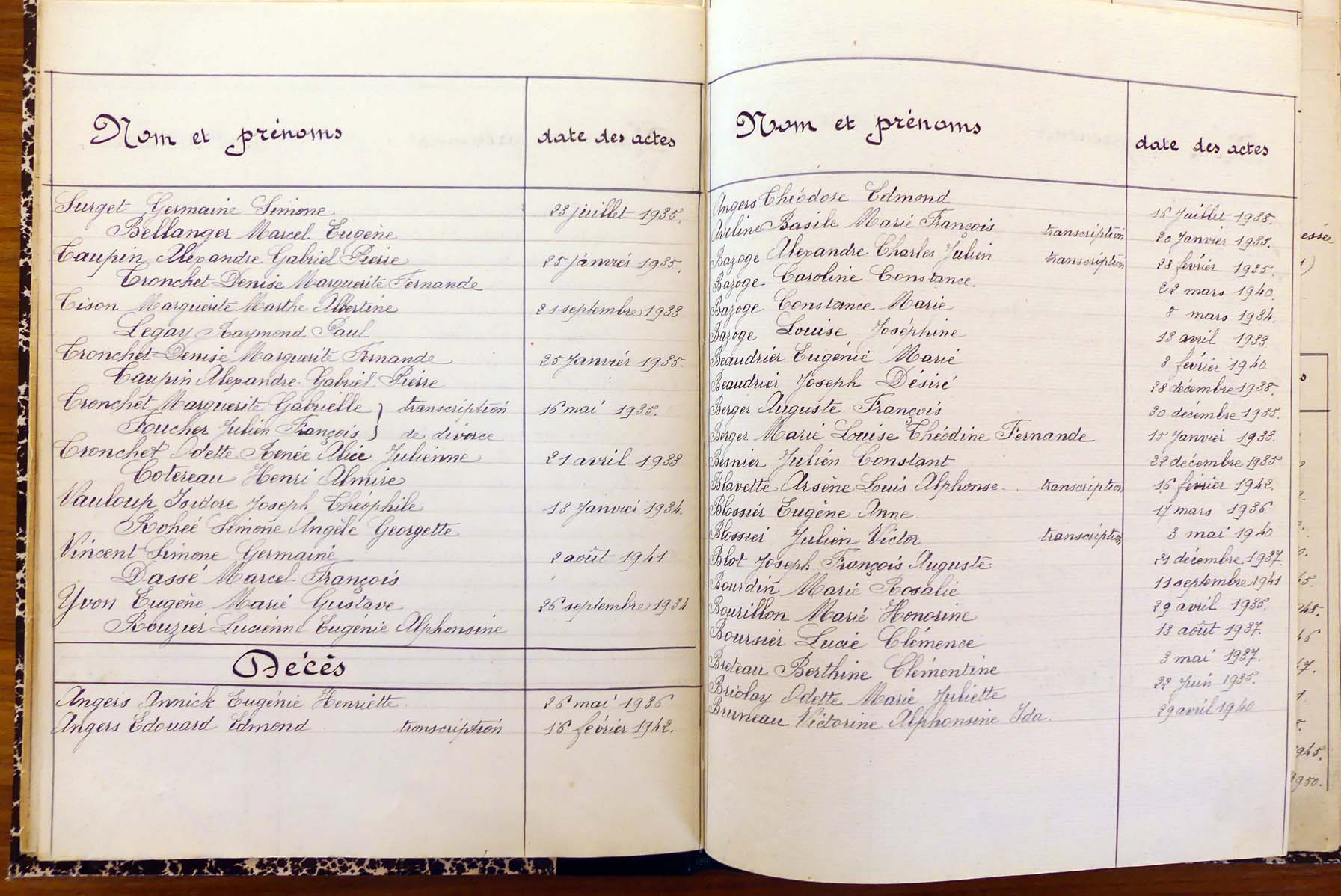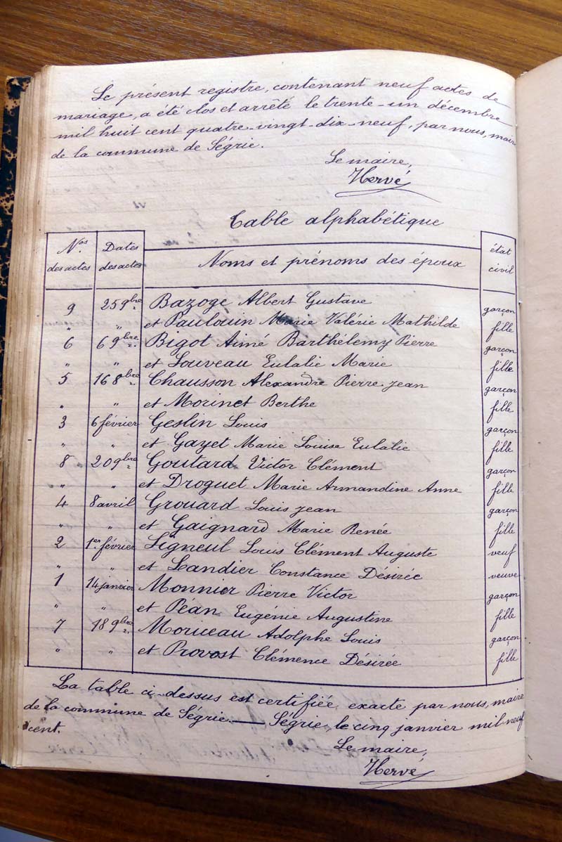 registre des tables décennales de 1893 à 1932 ayant disparu pour