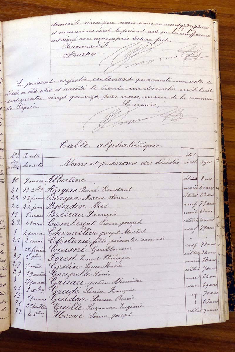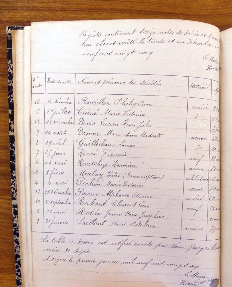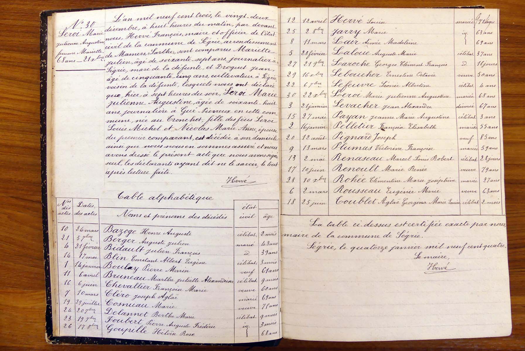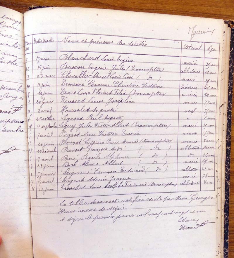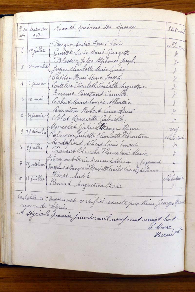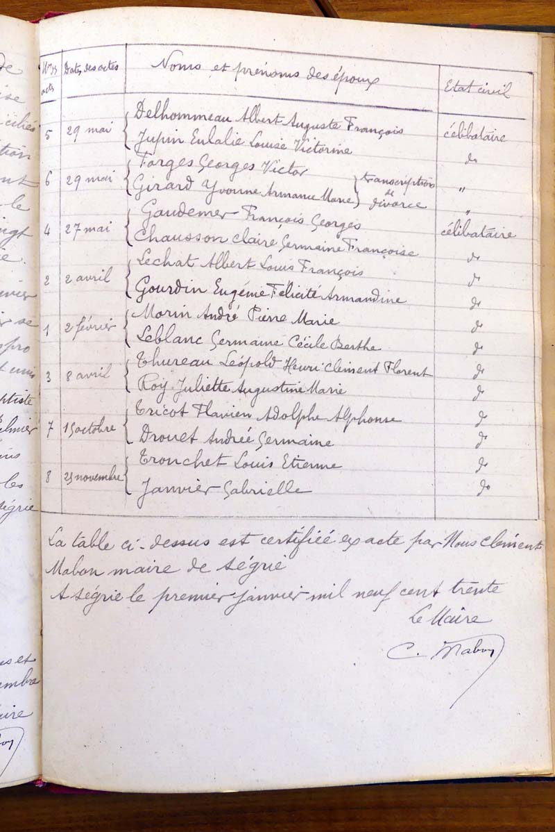 registre des tables décennales de 1893 à 1932 ayant disparu pour