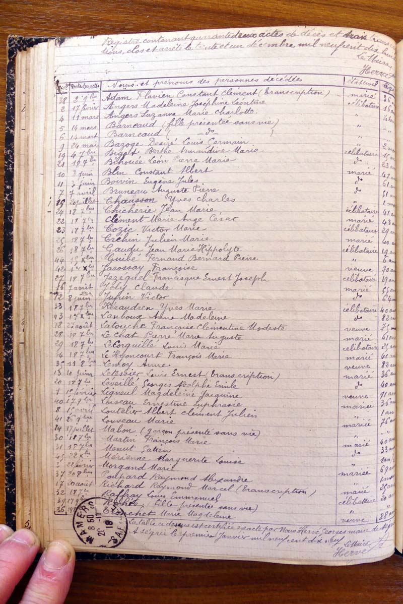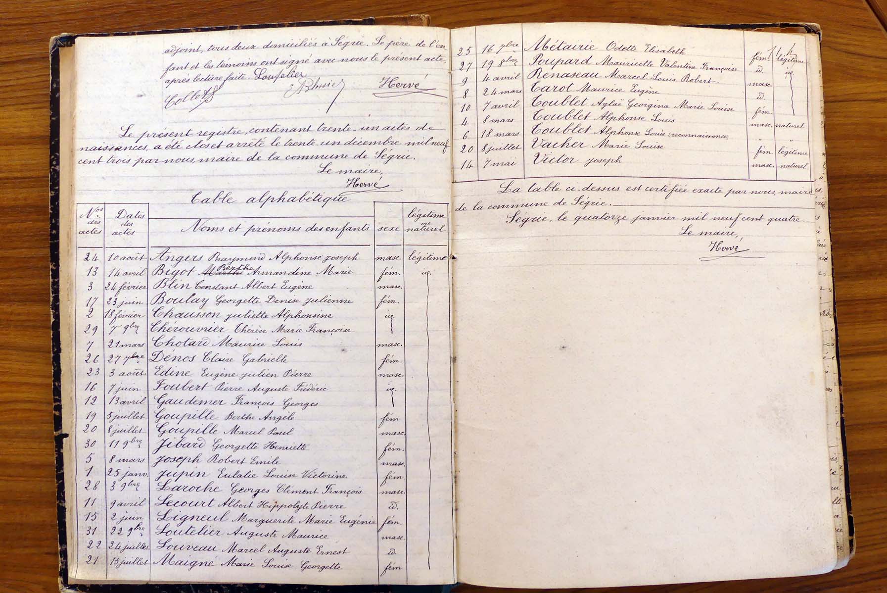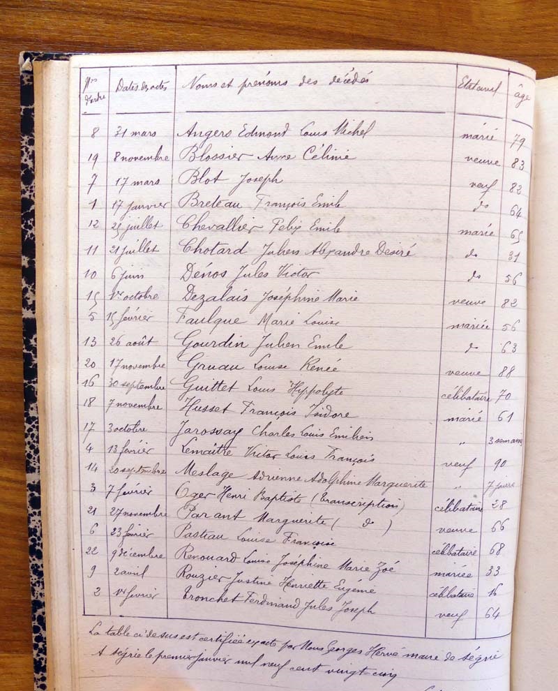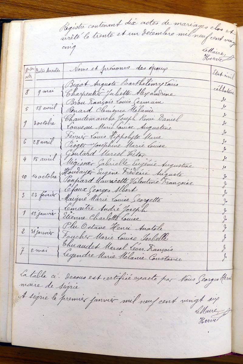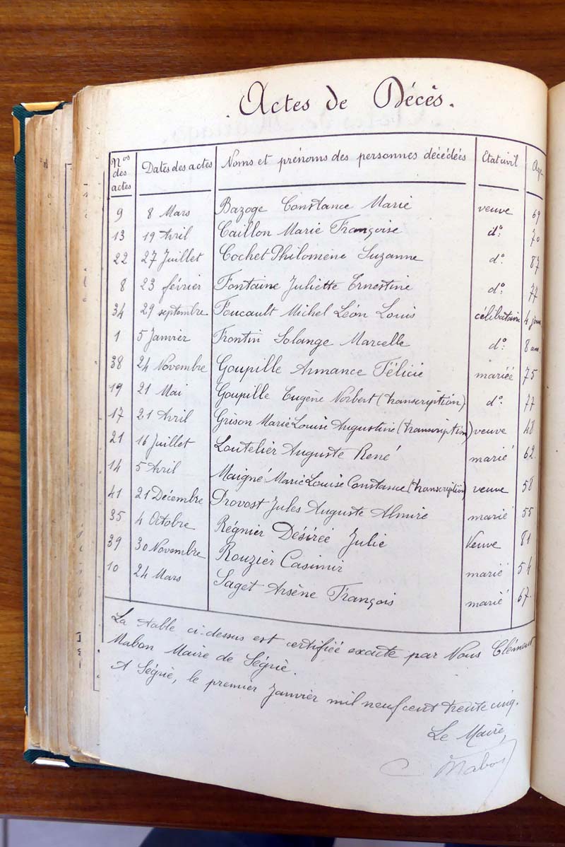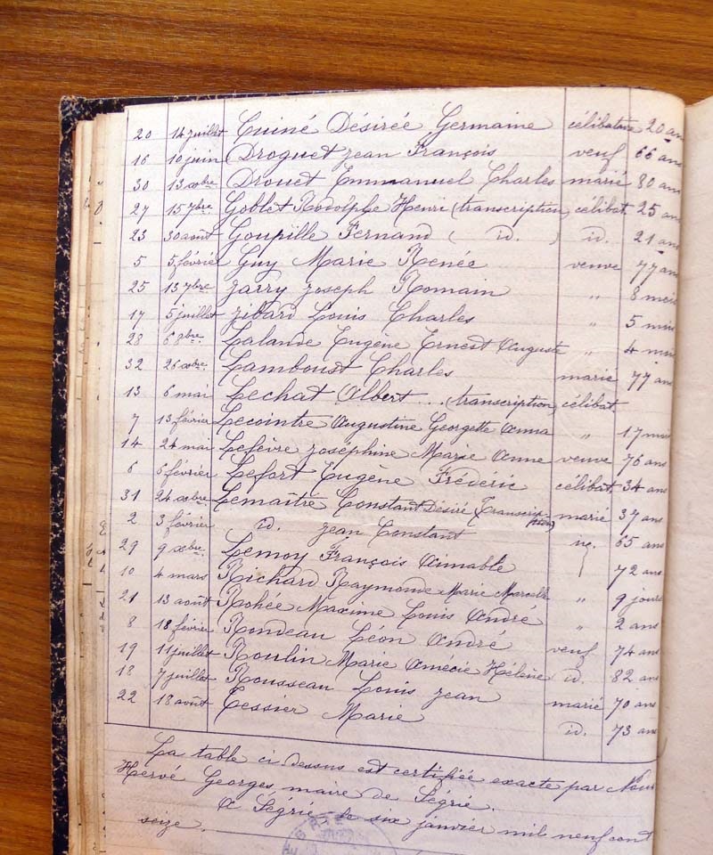 registre des tables décennales de 1893 à 1932 ayant disparu pour