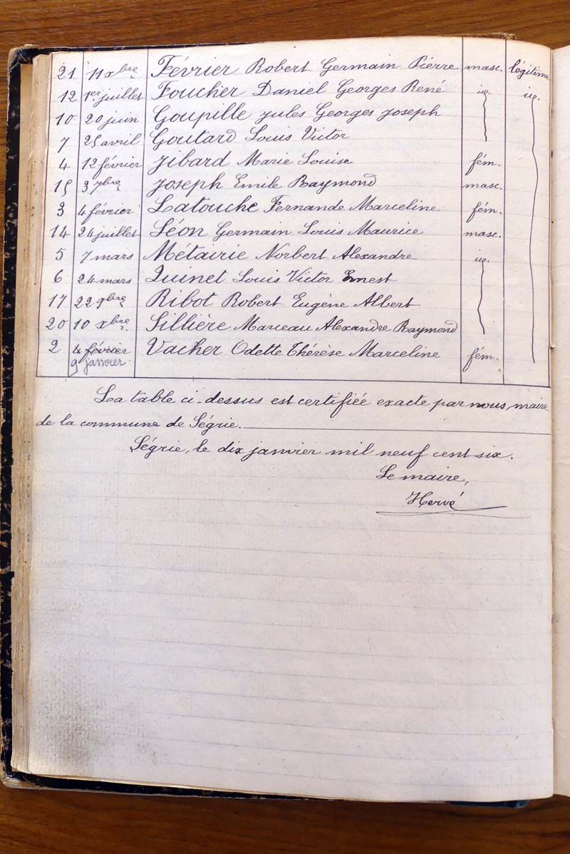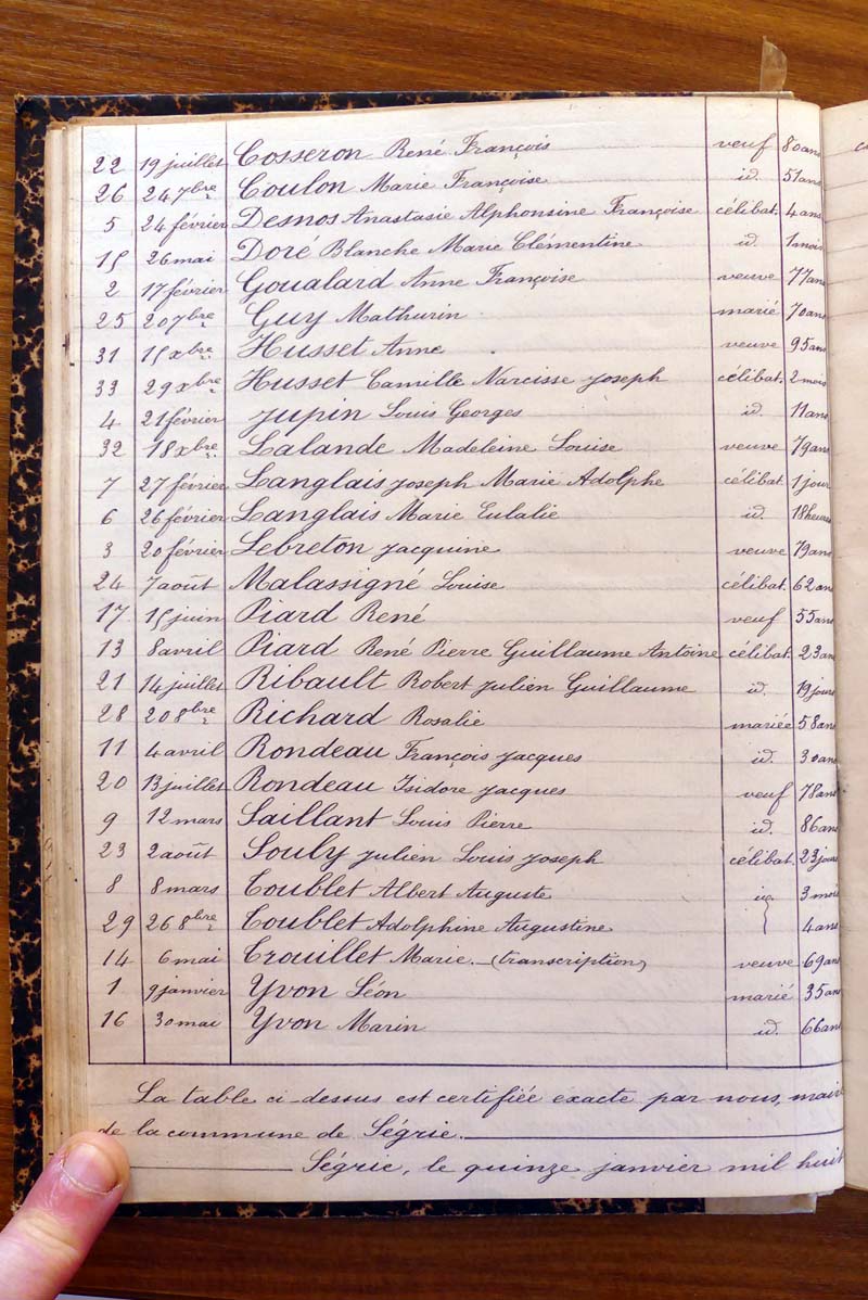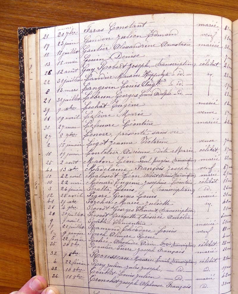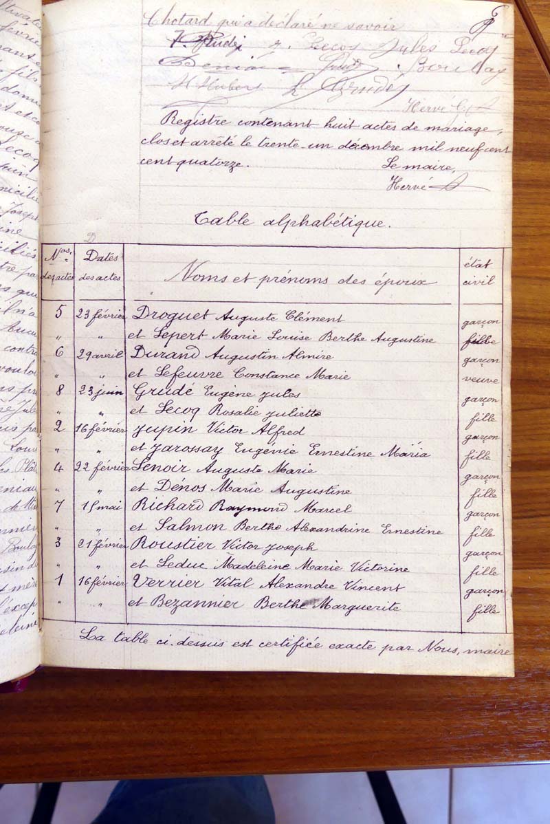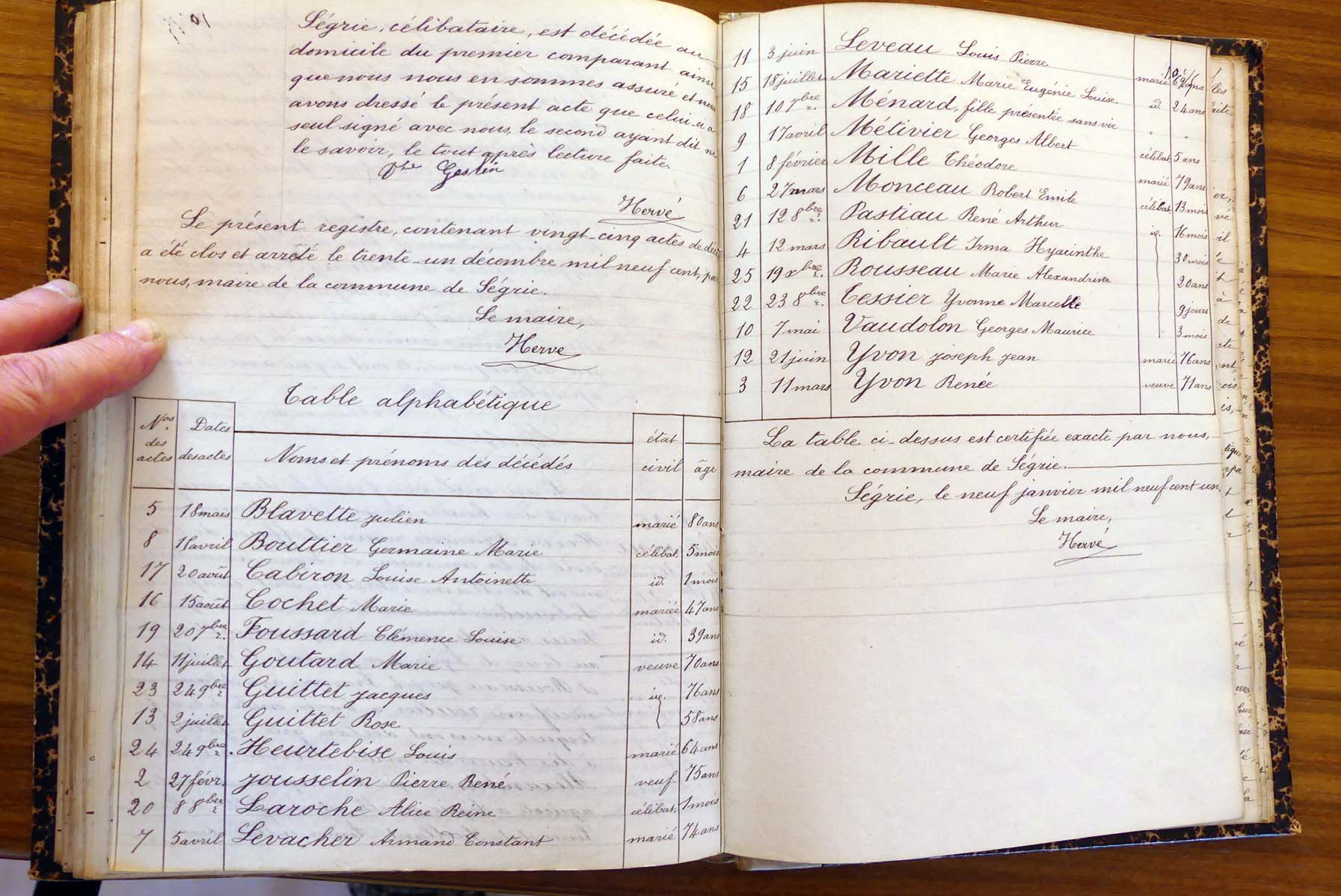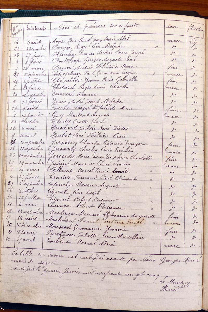 registre des tables décennales de 1893 à 1932 ayant disparu pour