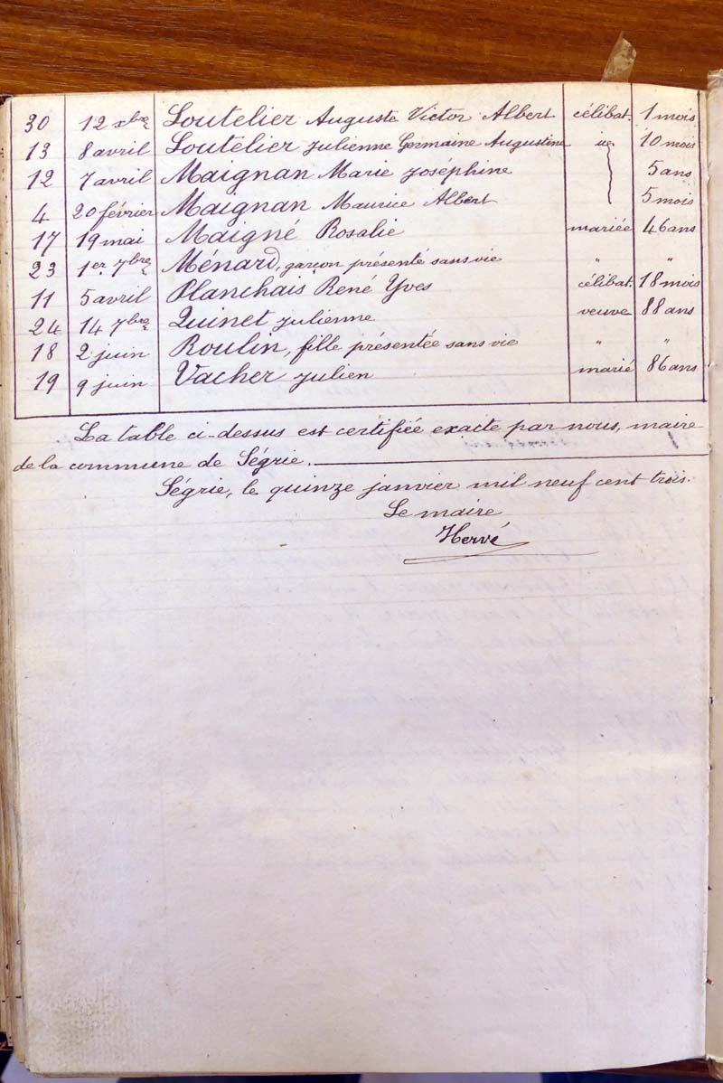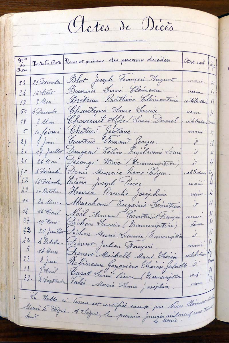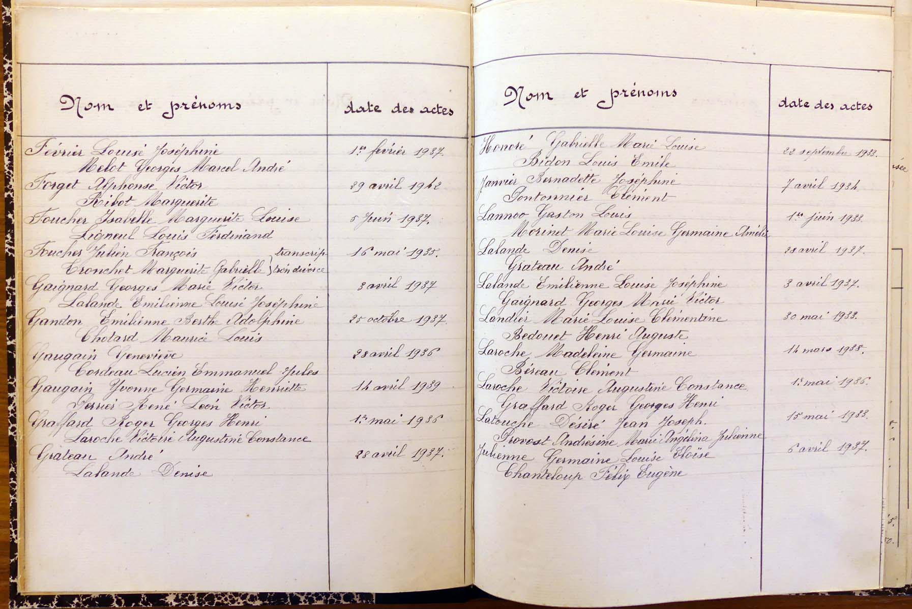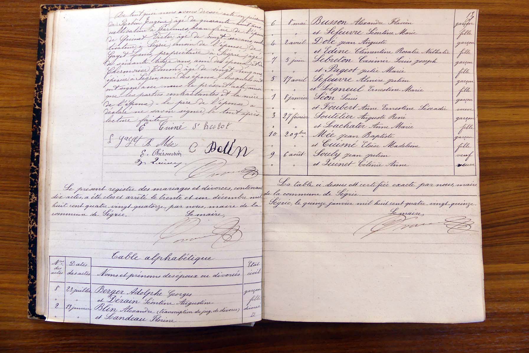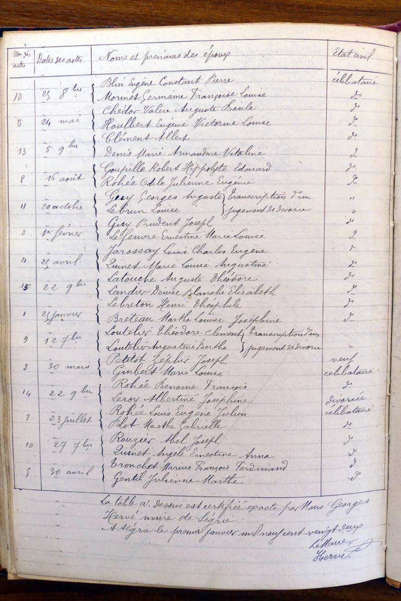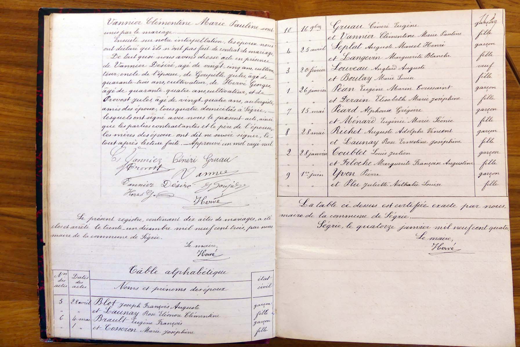 registre des tables décennales de 1893 à 1932 ayant disparu pour