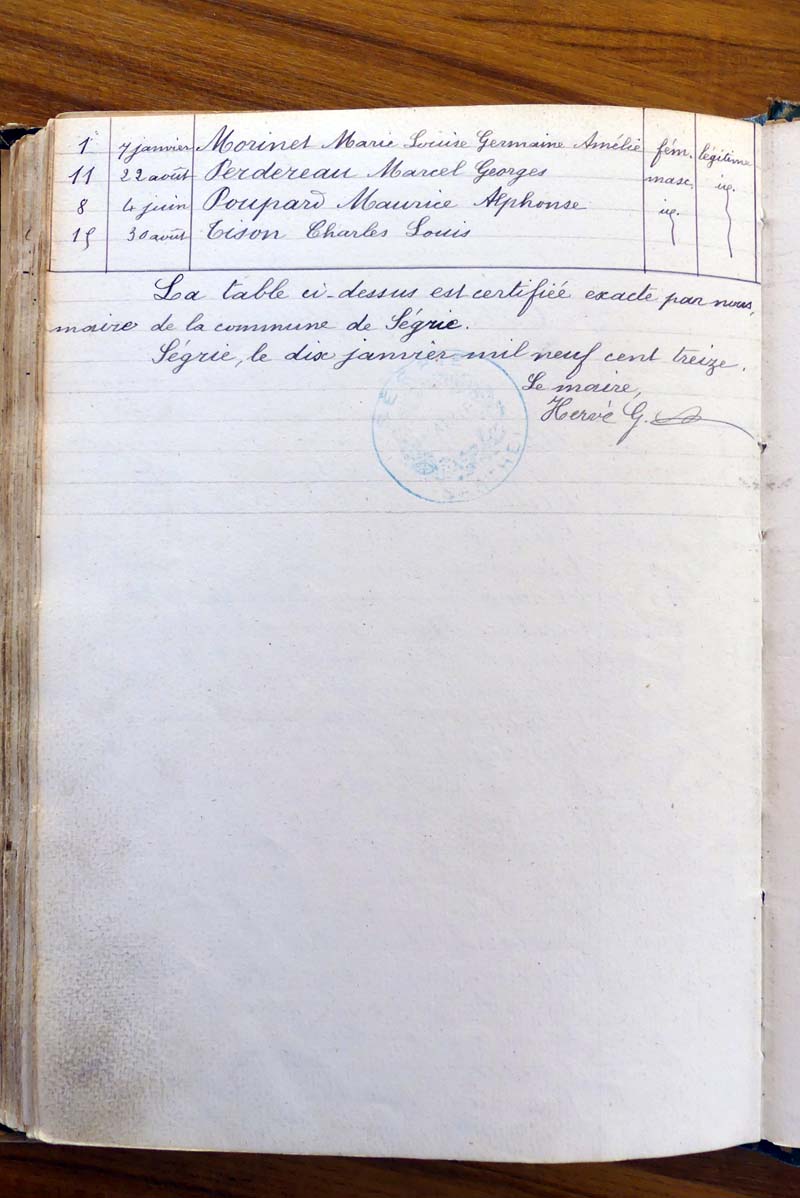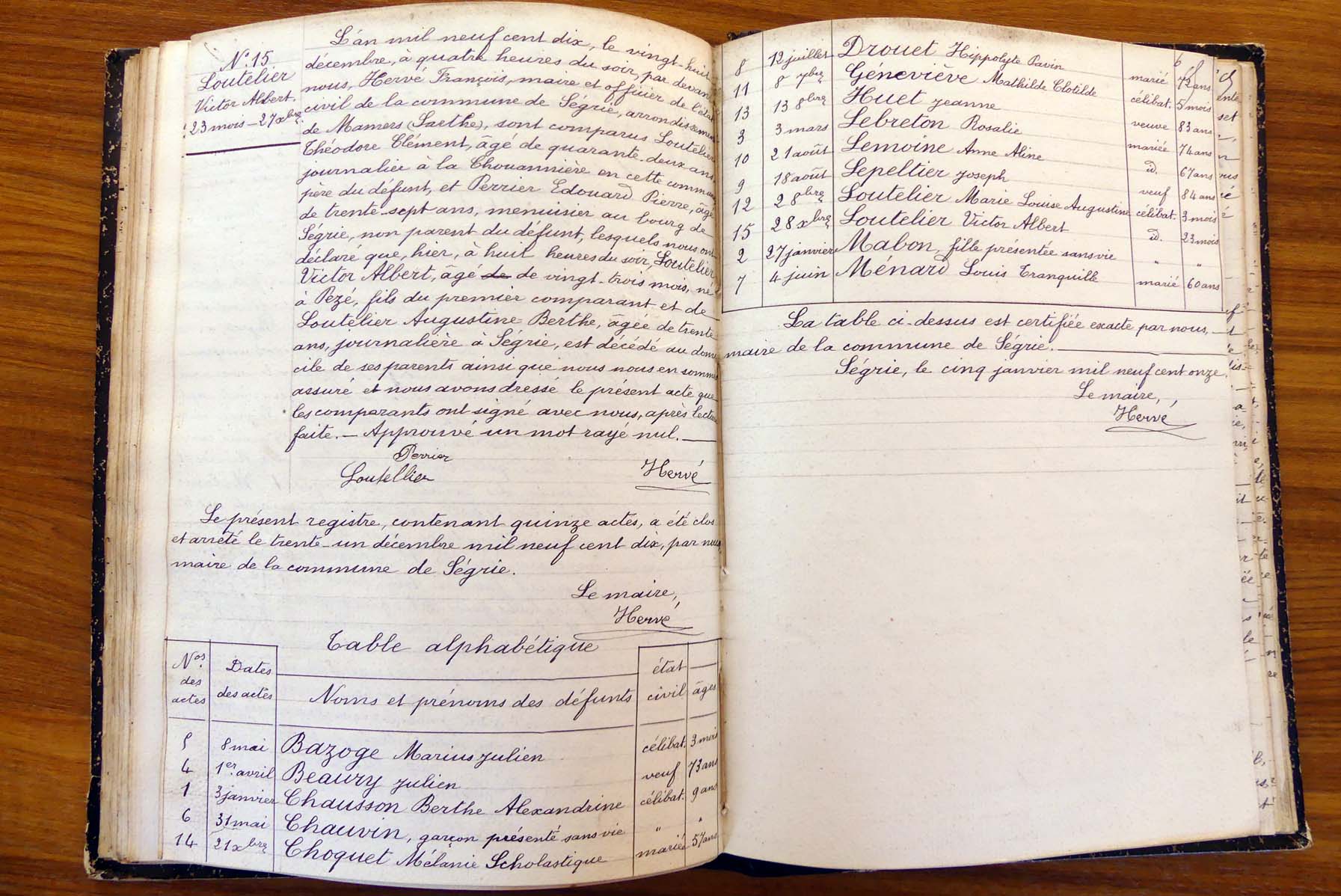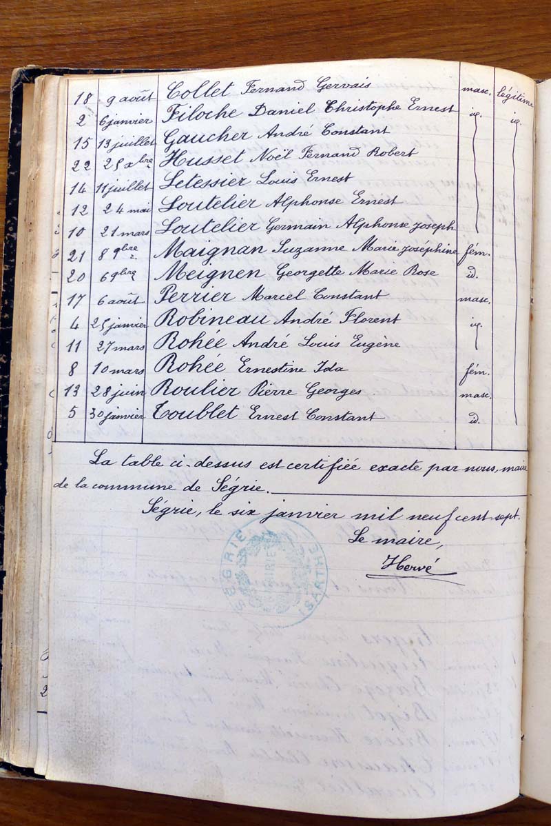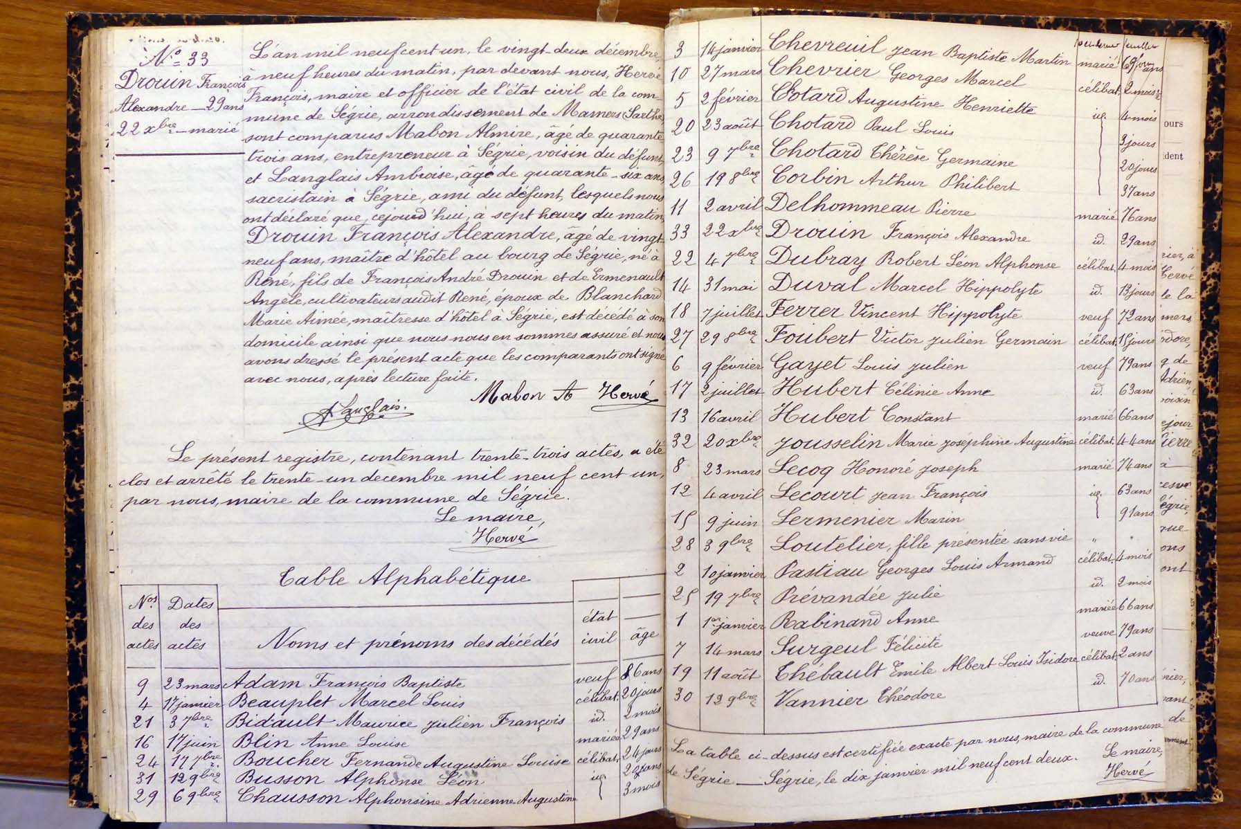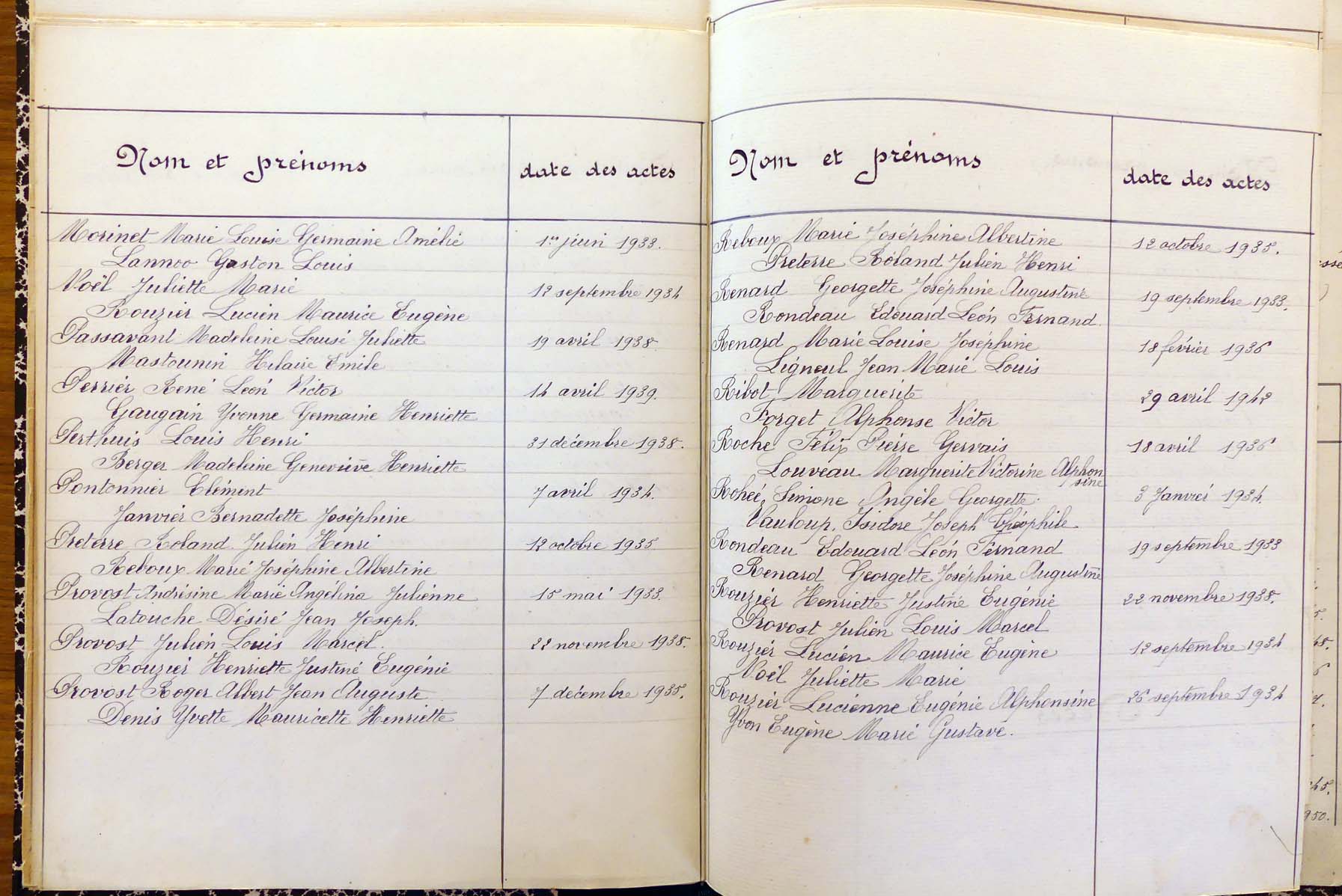 registre des tables décennales de 1893 à 1932 ayant disparu pour