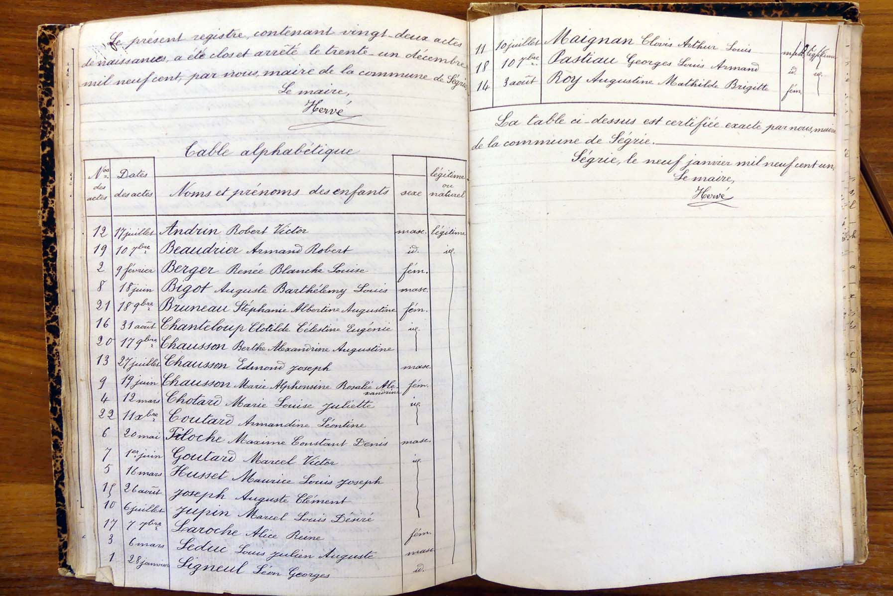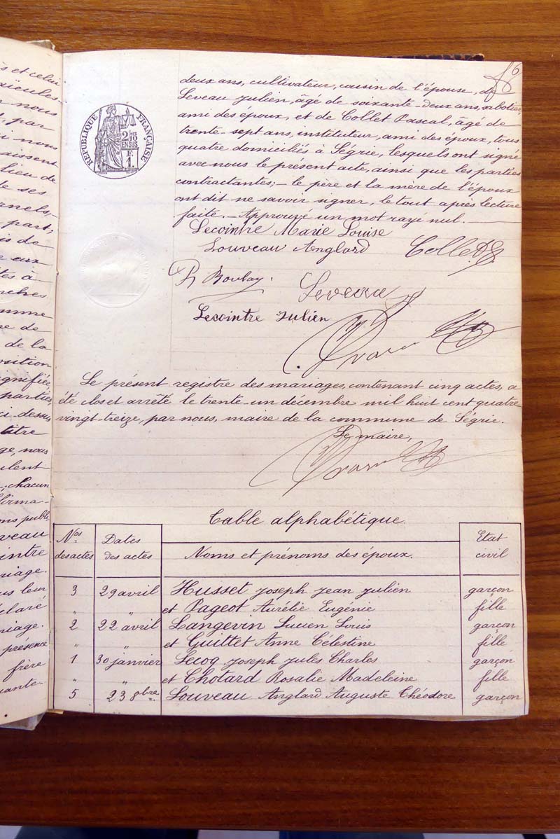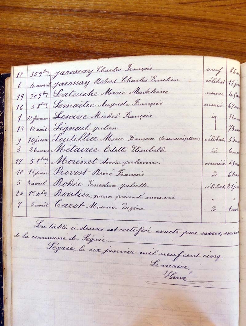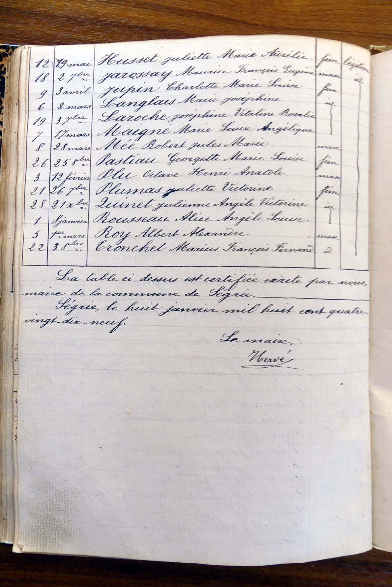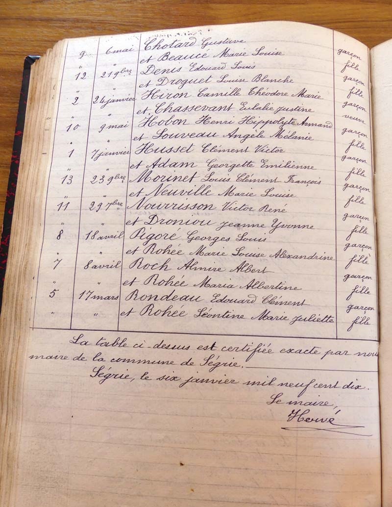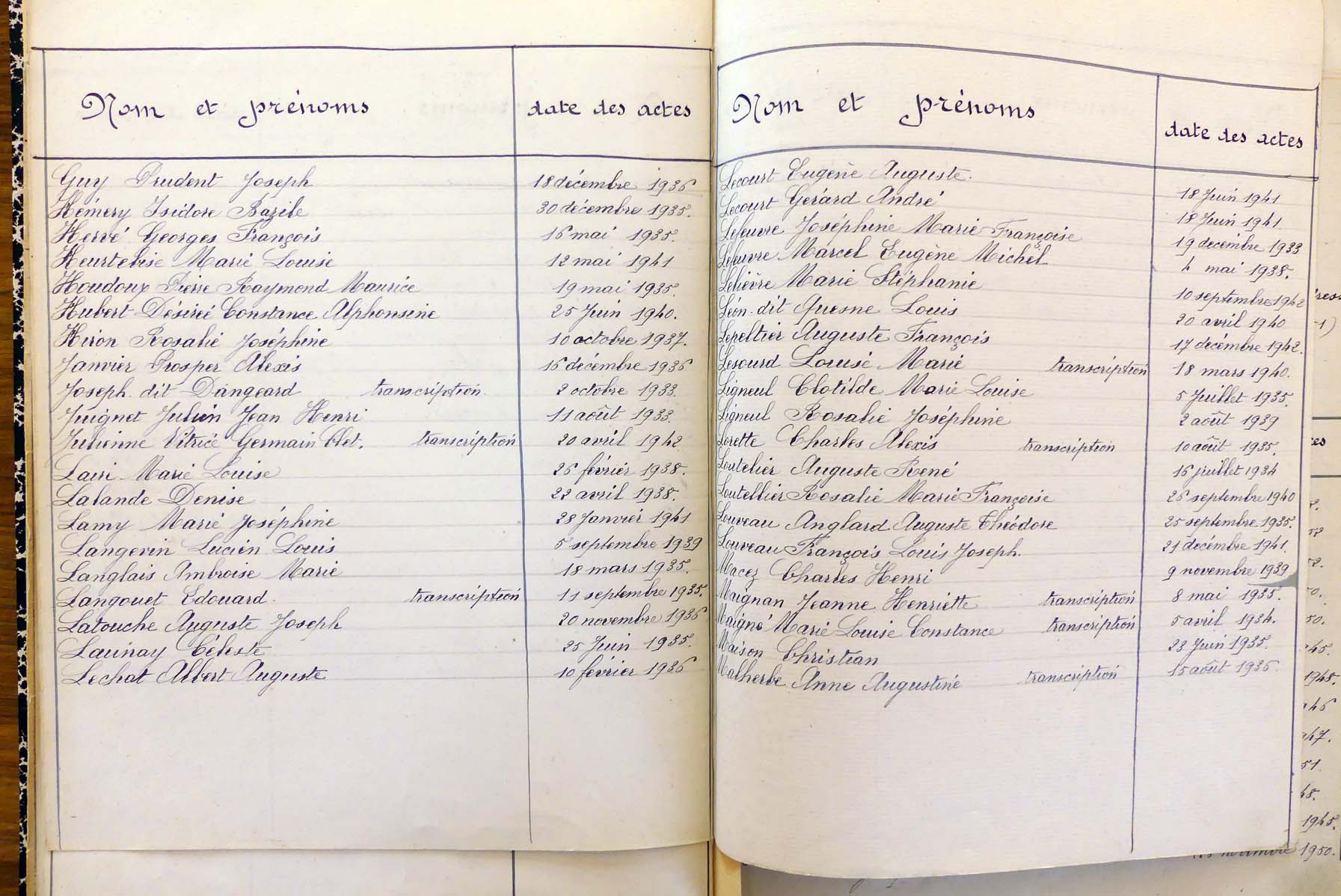 registre des tables décennales de 1893 à 1932 ayant disparu pour