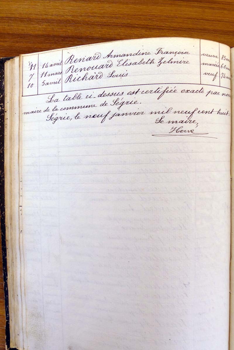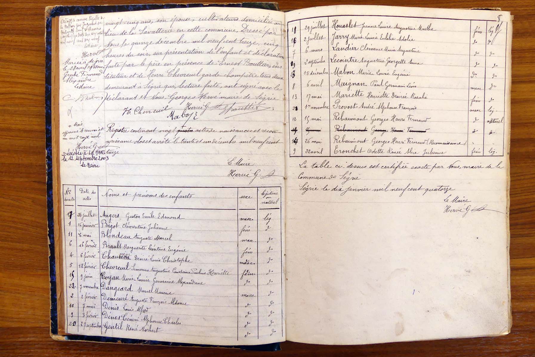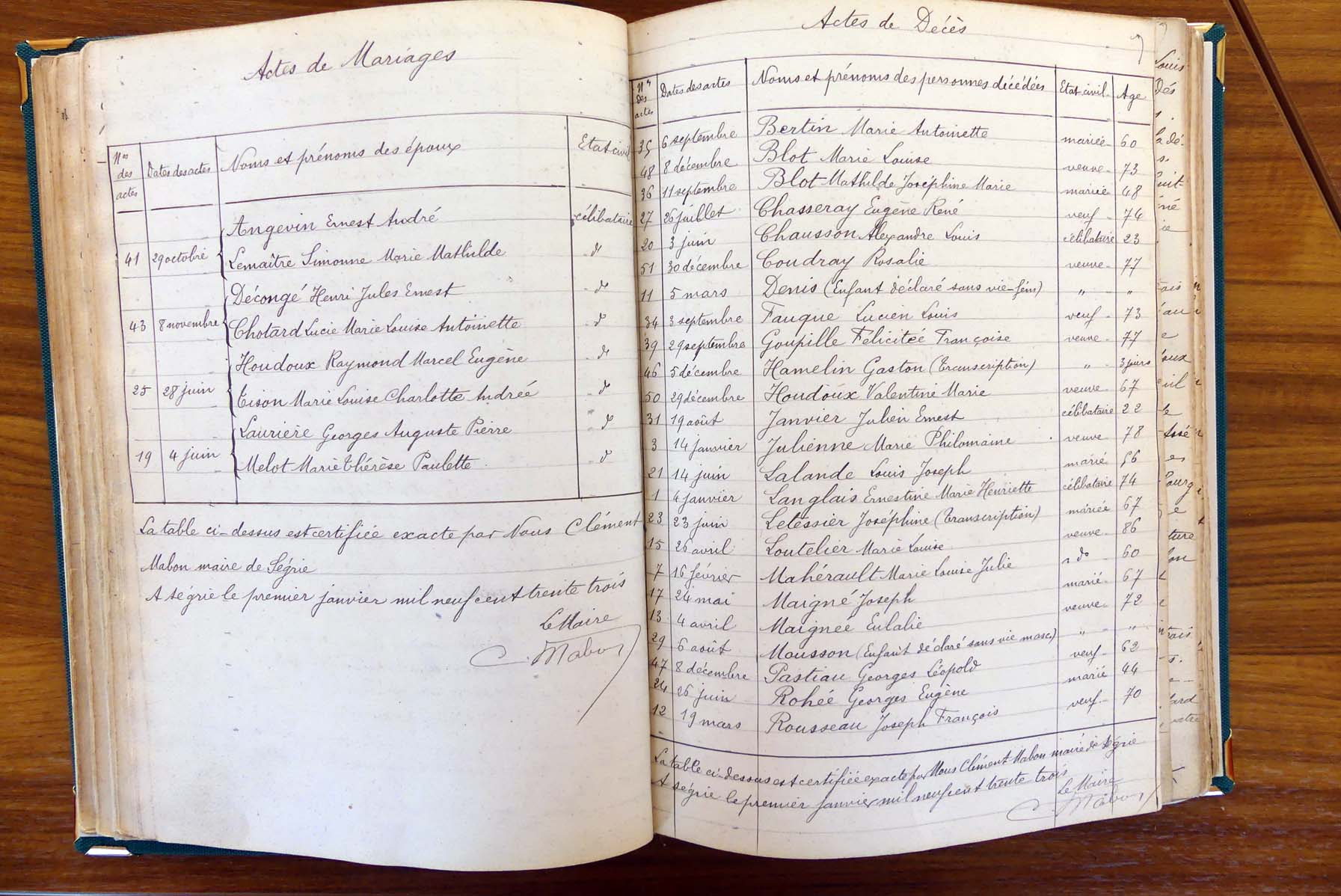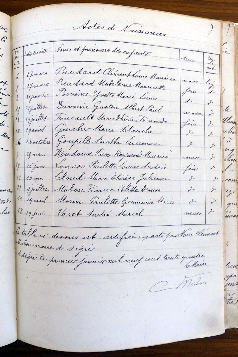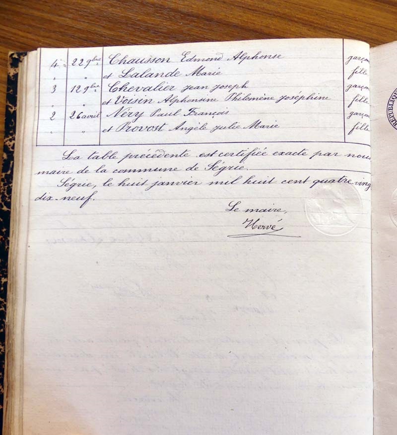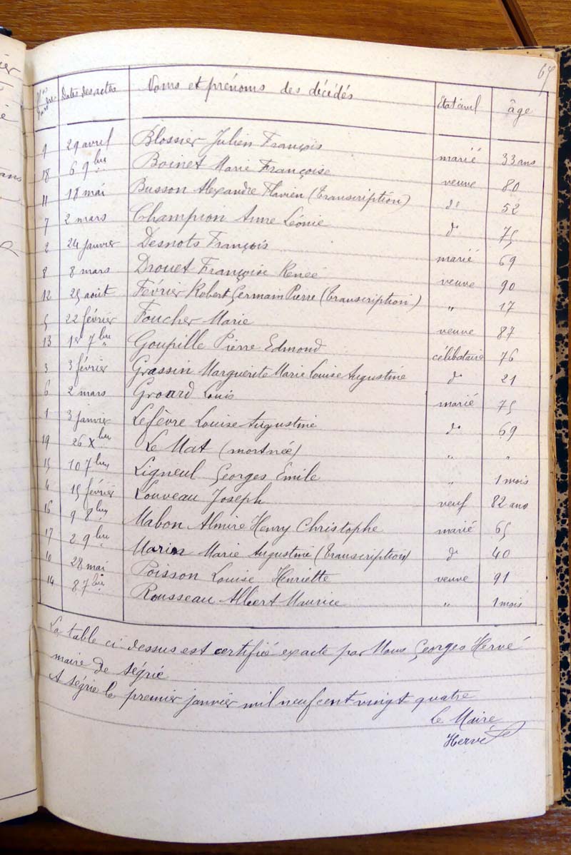 registre des tables décennales de 1893 à 1932 ayant disparu pour