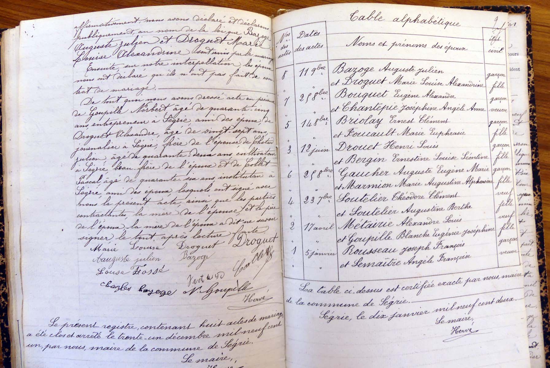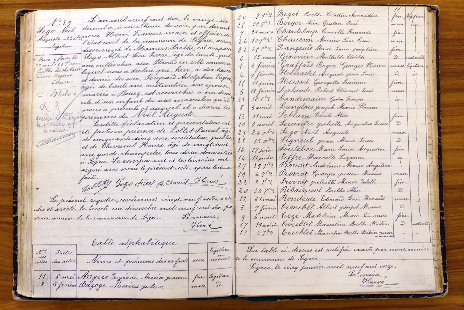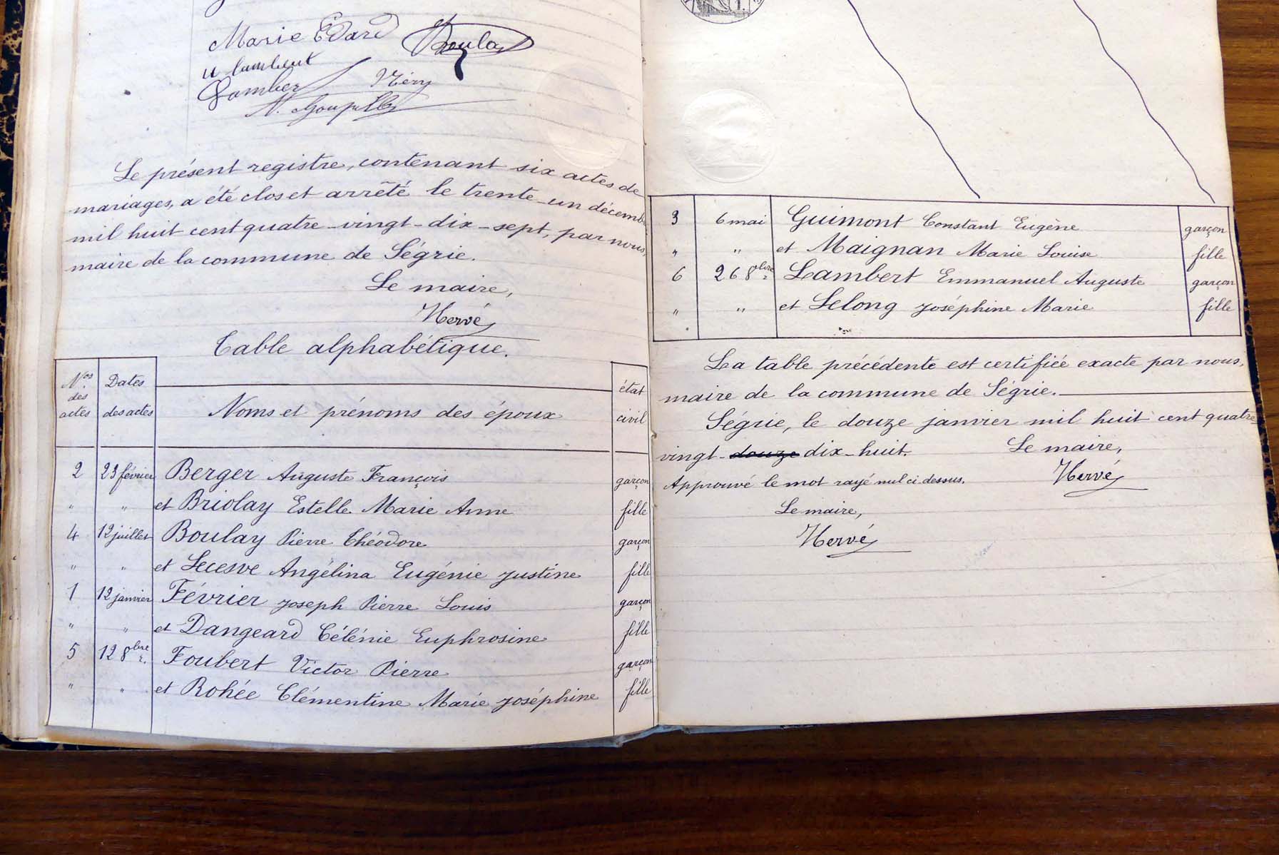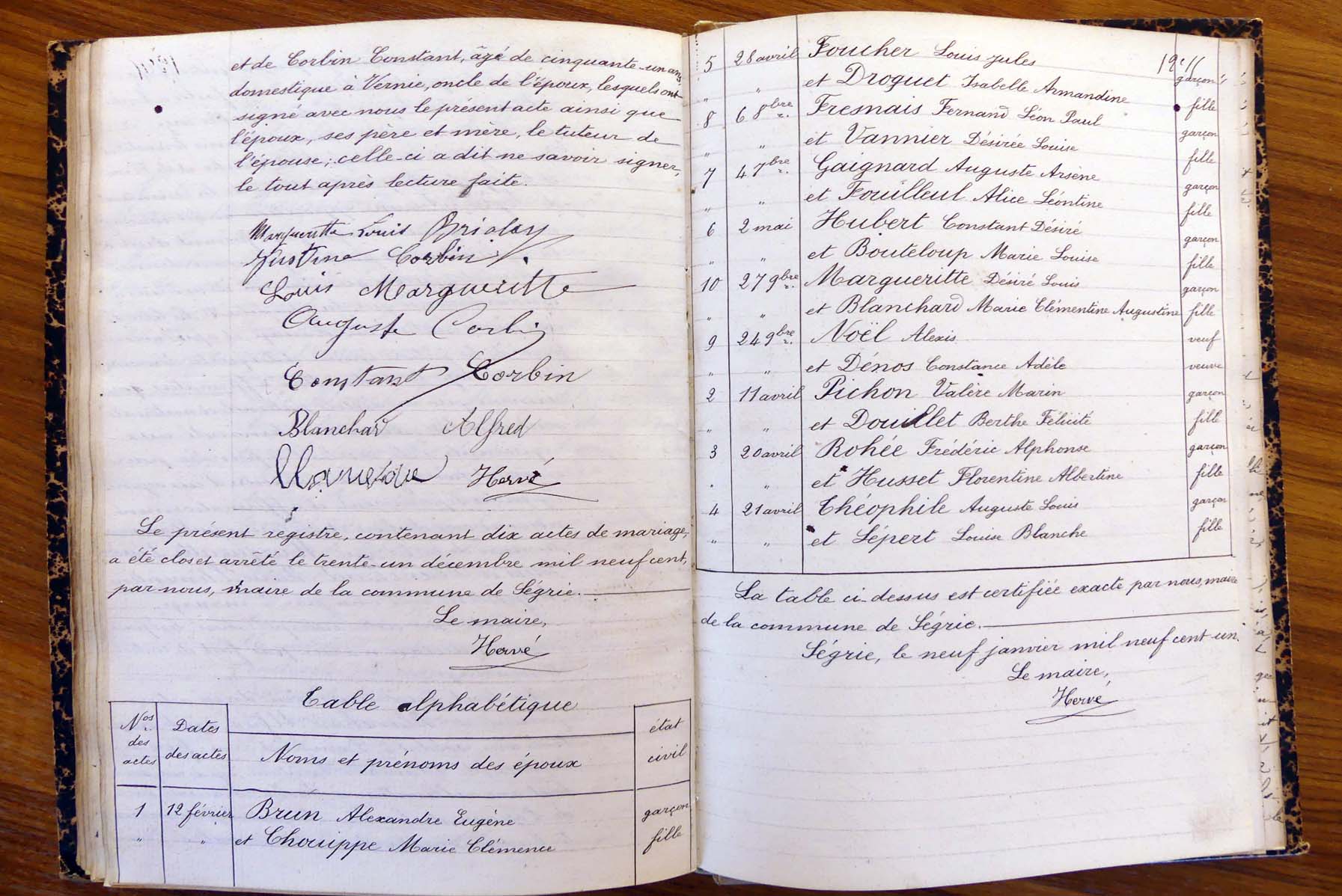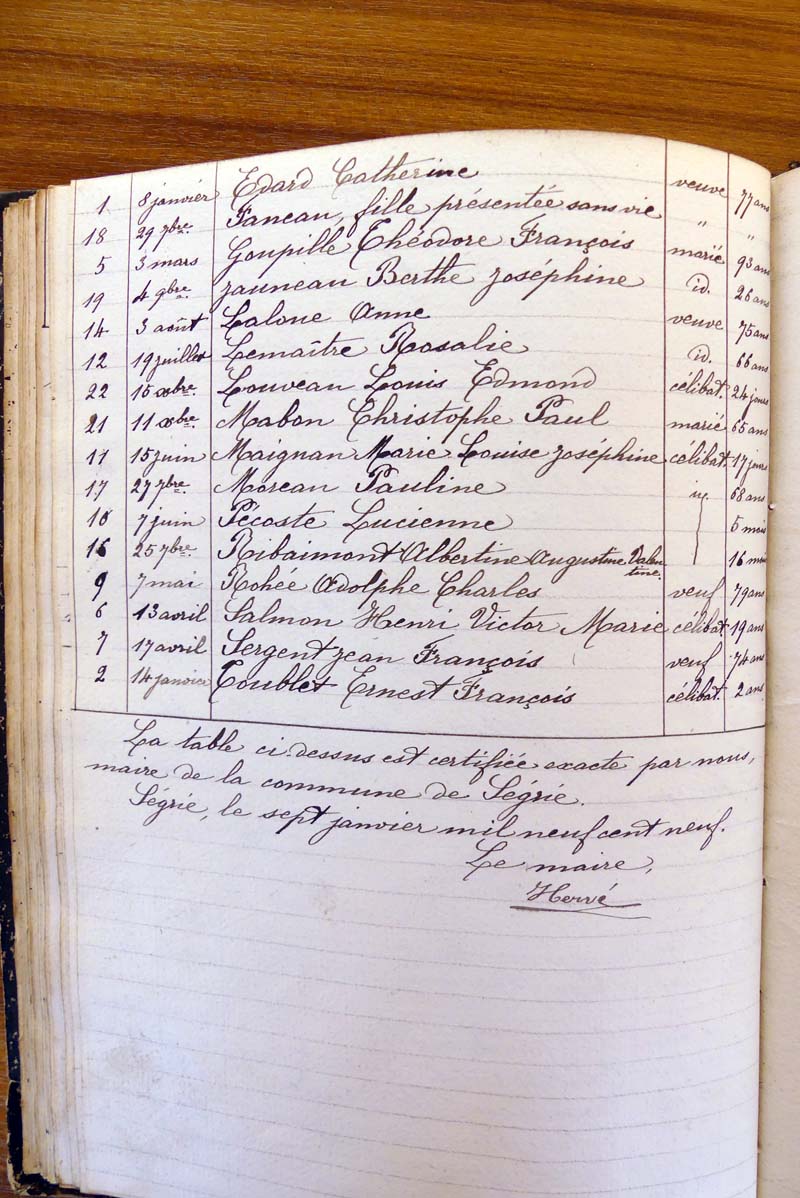 registre des tables décennales de 1893 à 1932 ayant disparu pour