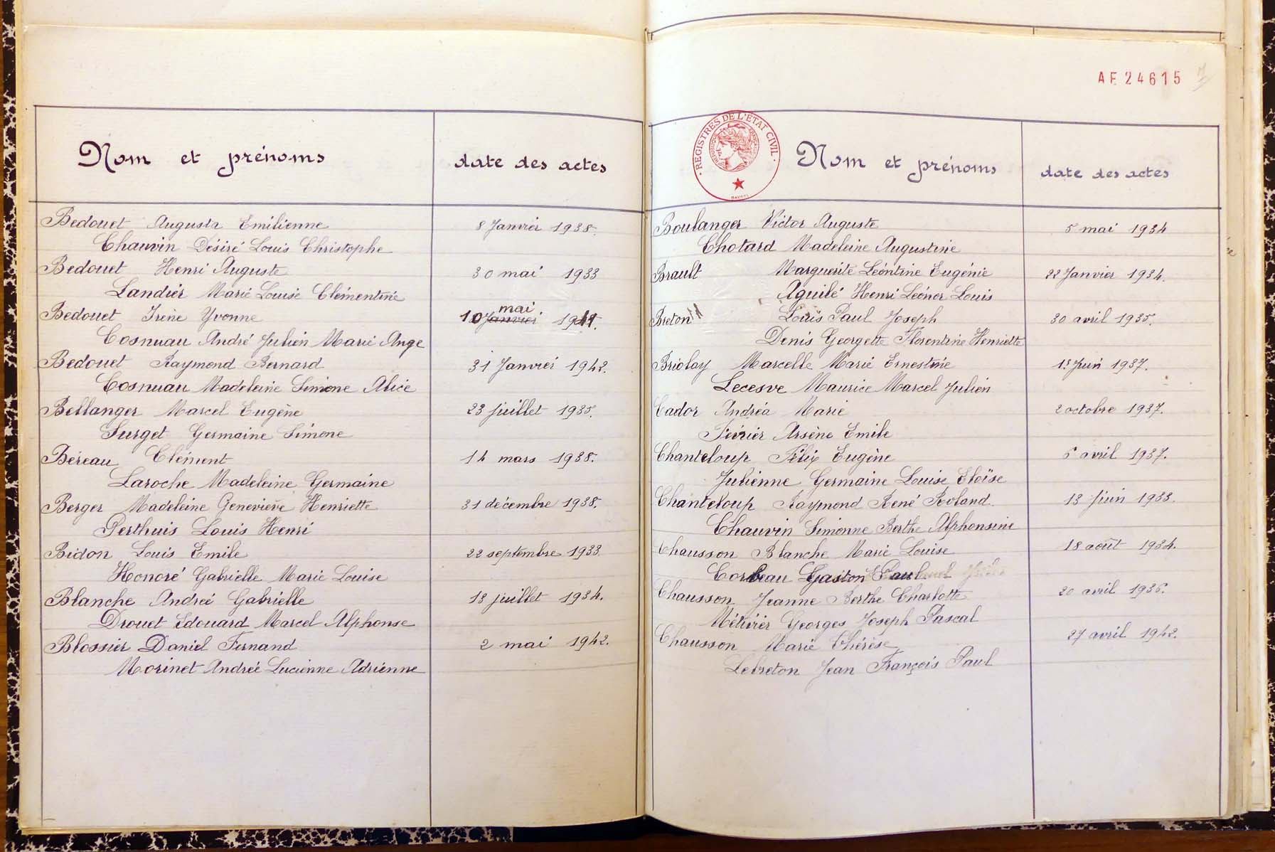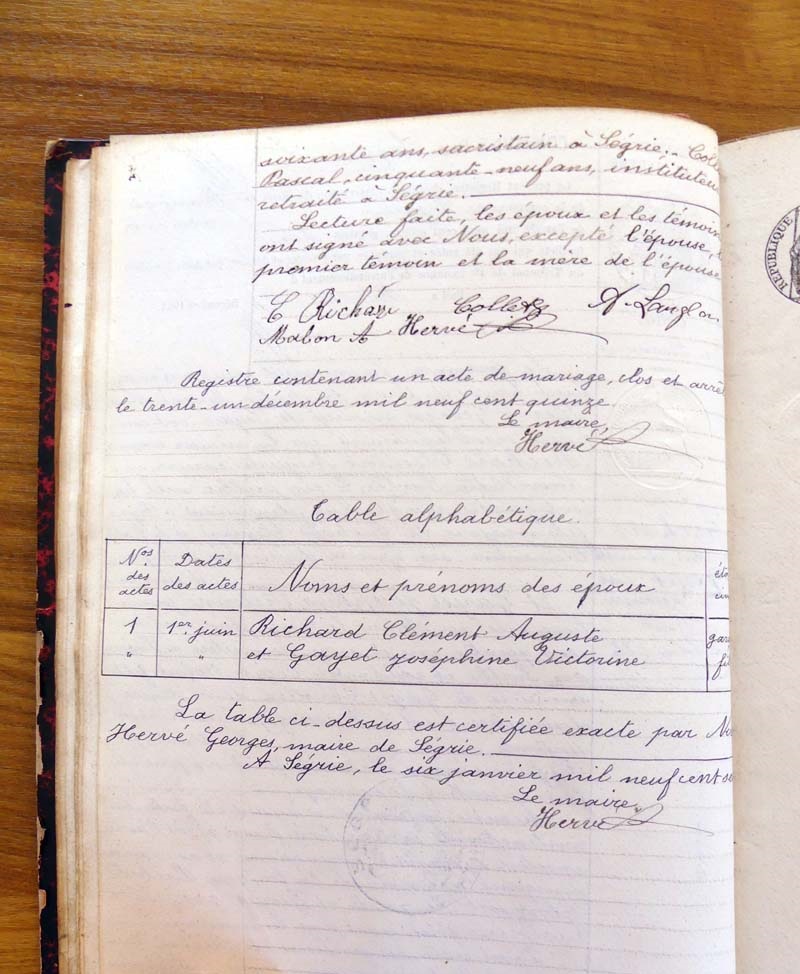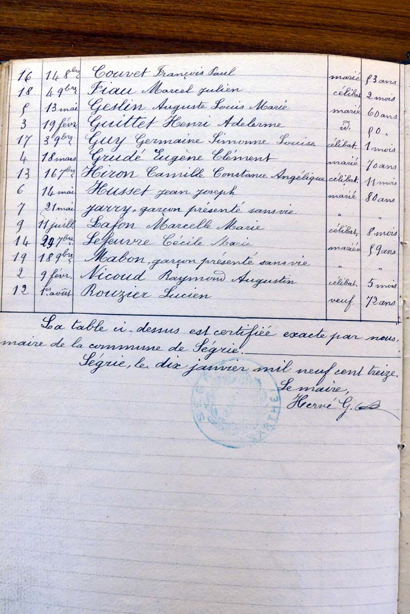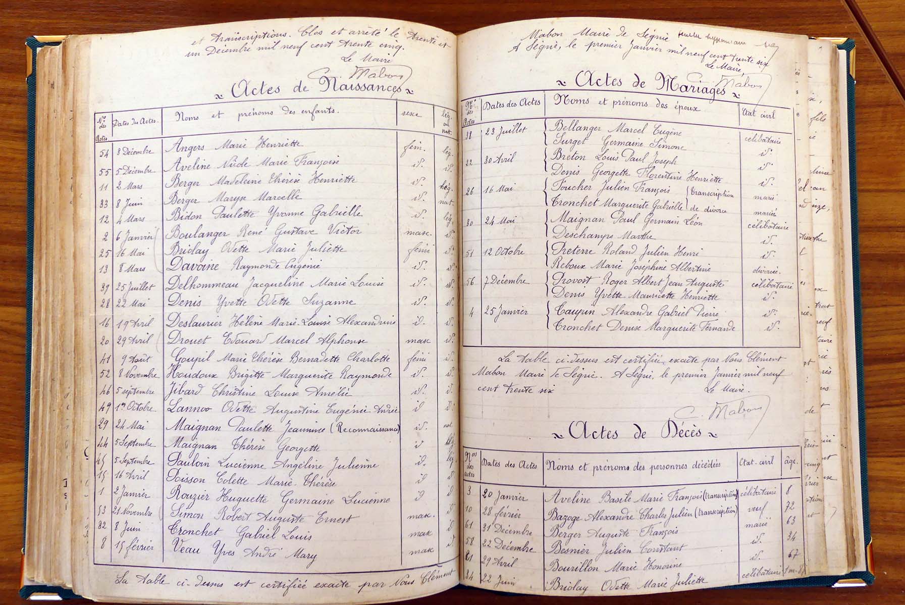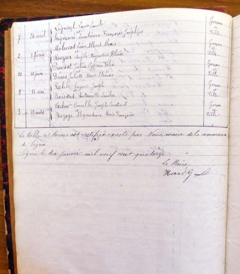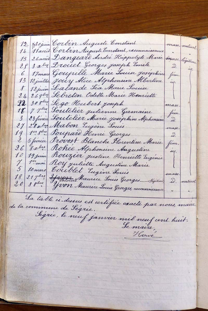 registre des tables décennales de 1893 à 1932 ayant disparu pour