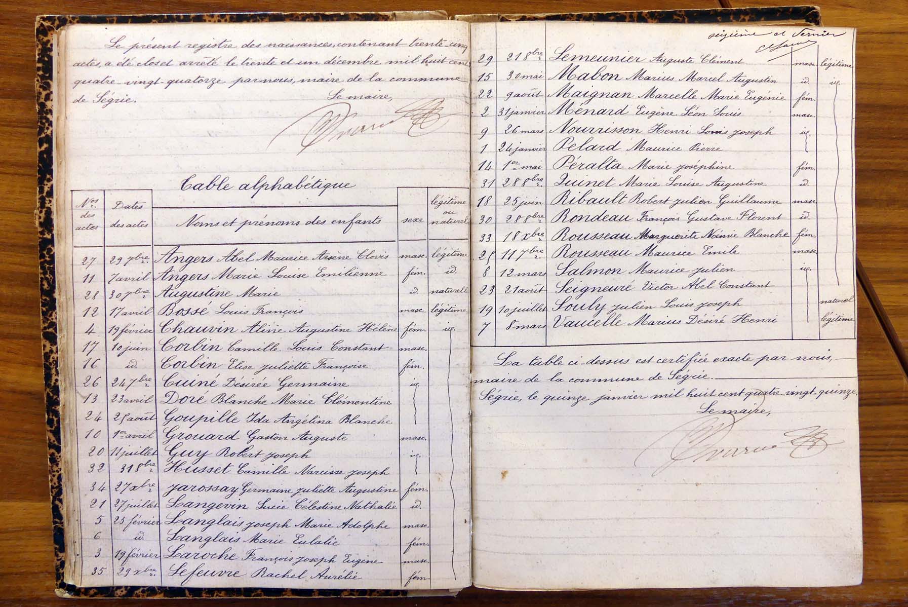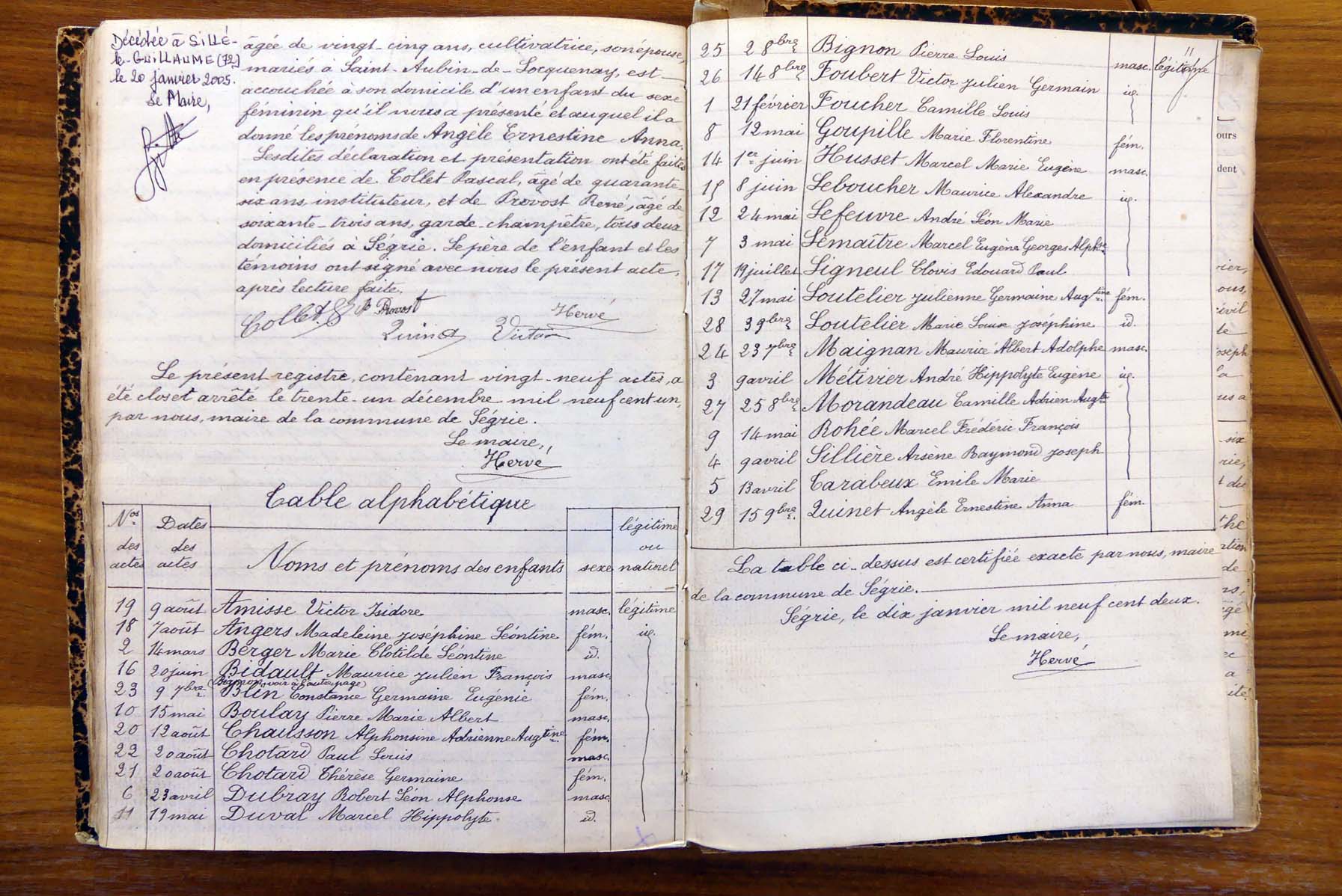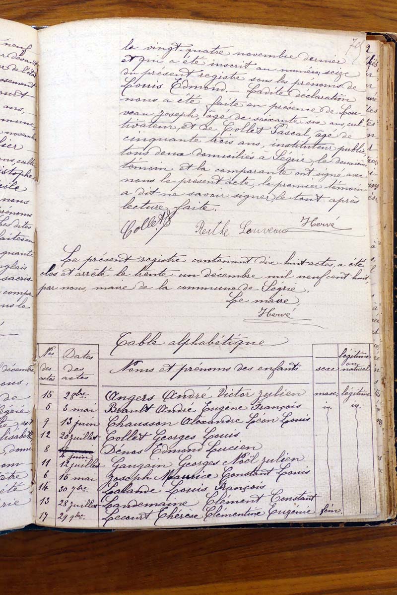 tables décennales du registre dédié.