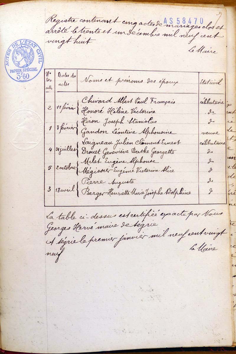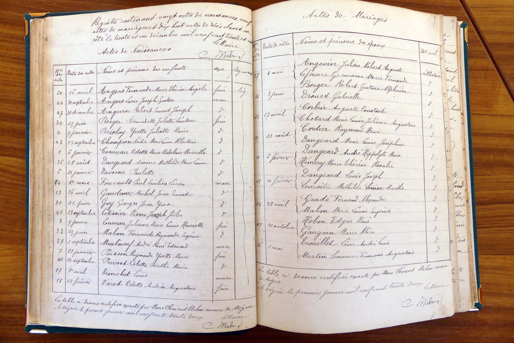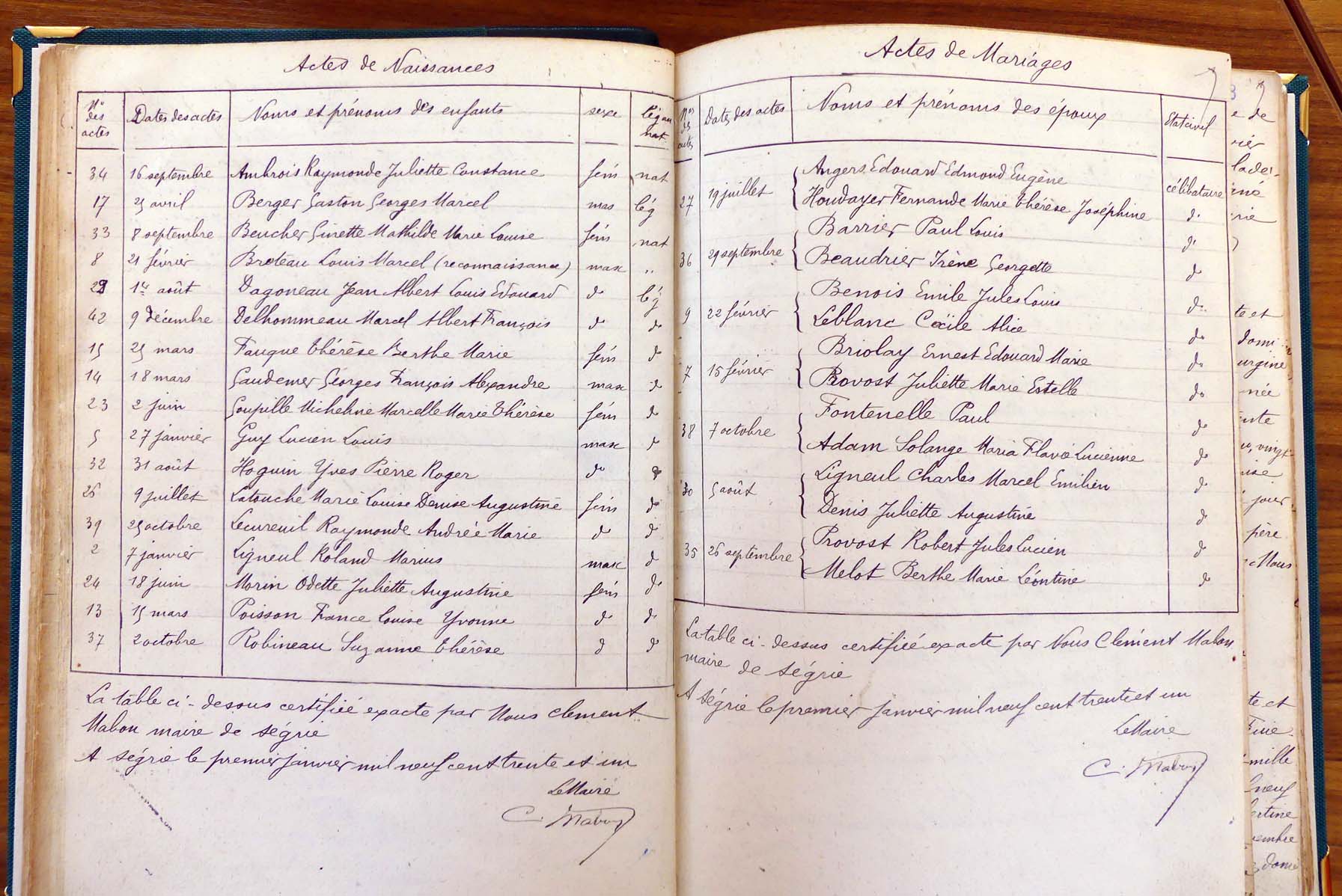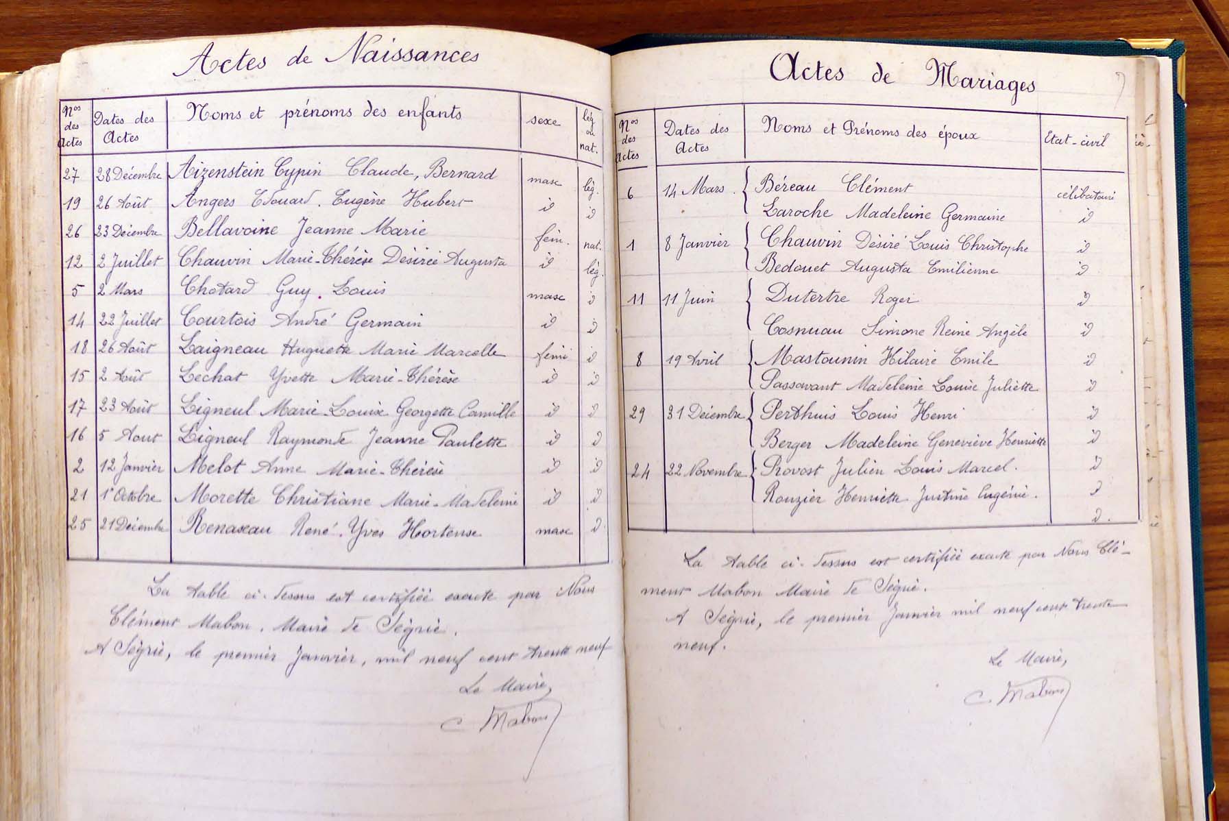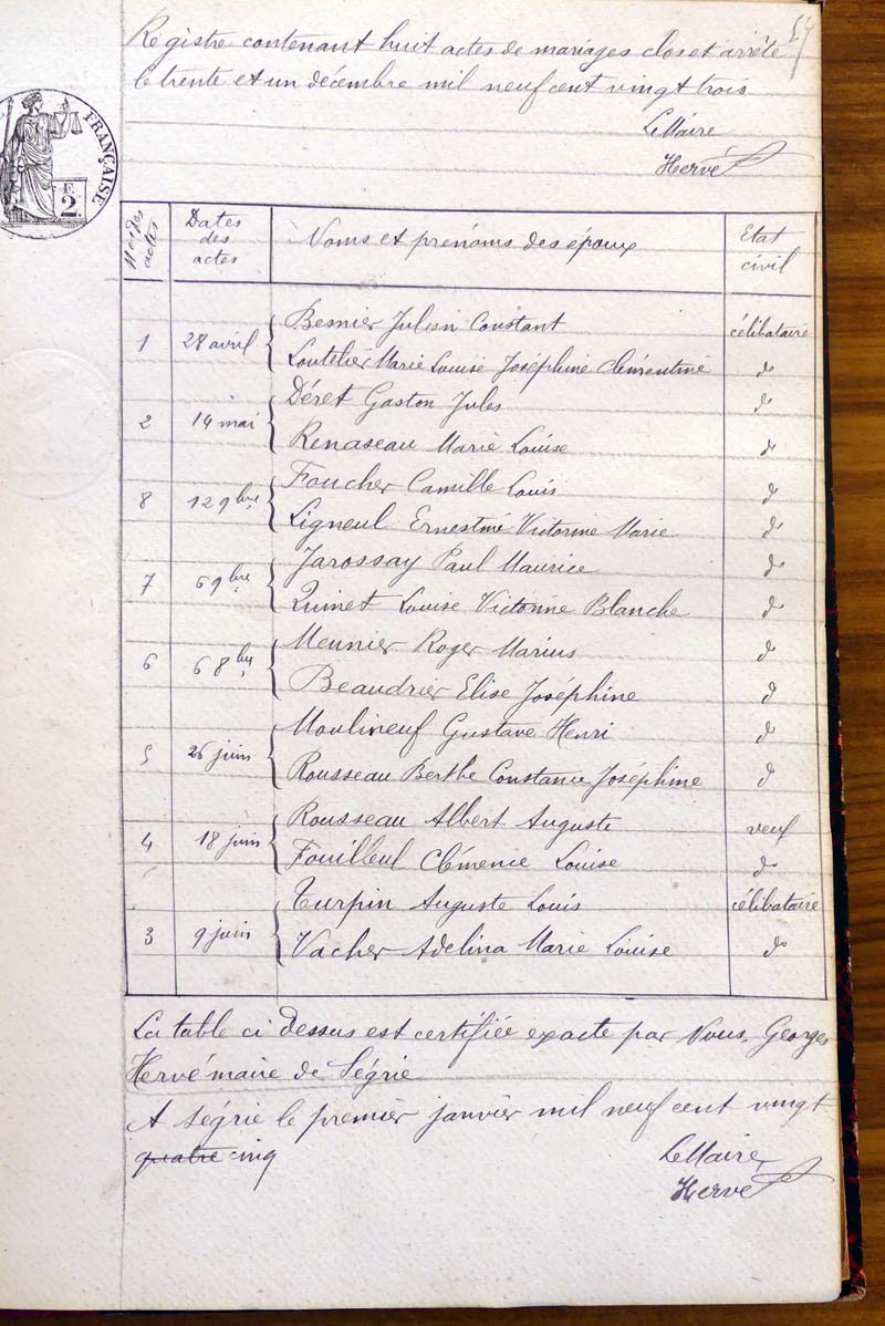 les registres de naissance, de mariage et de décès, ainsi que dans les