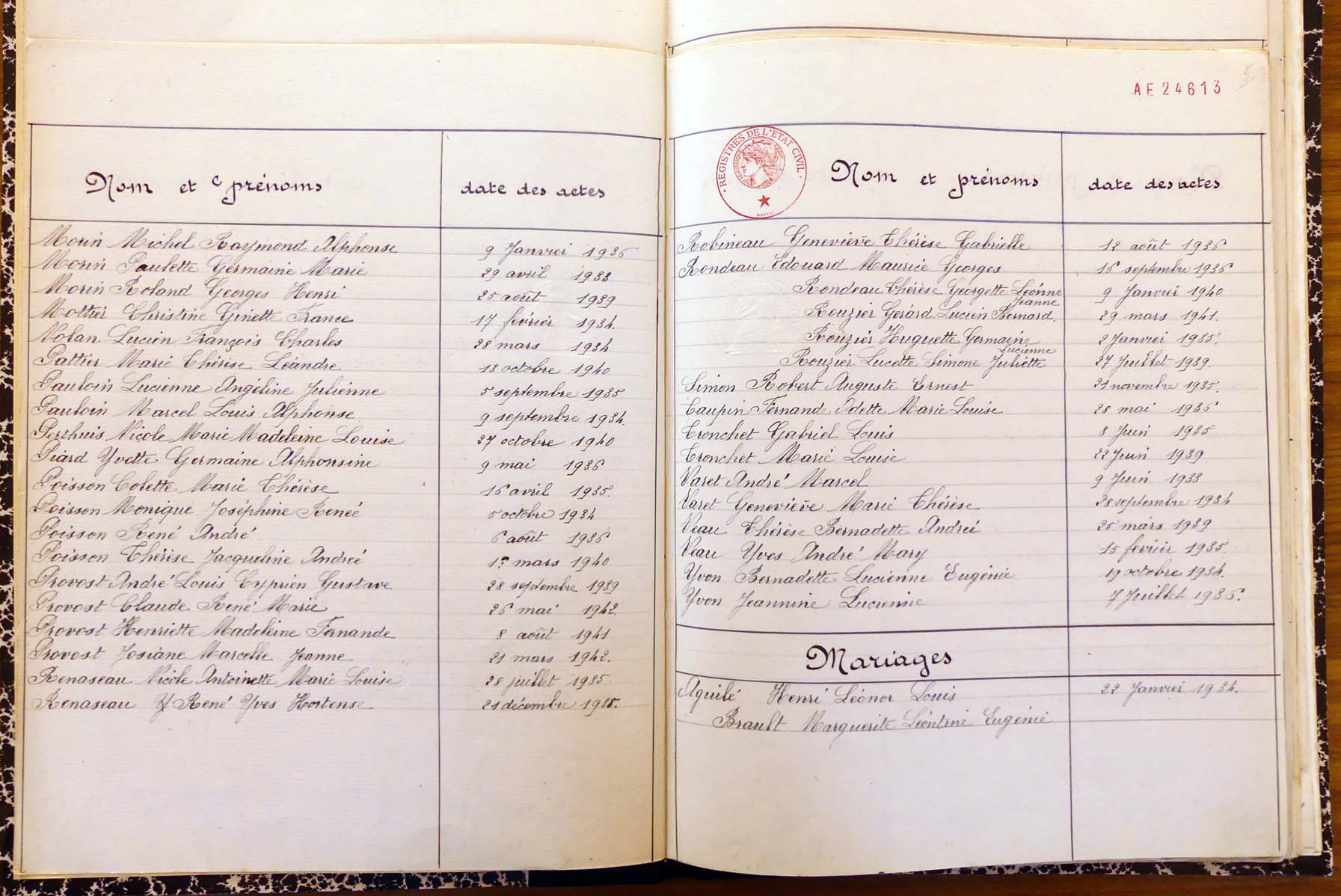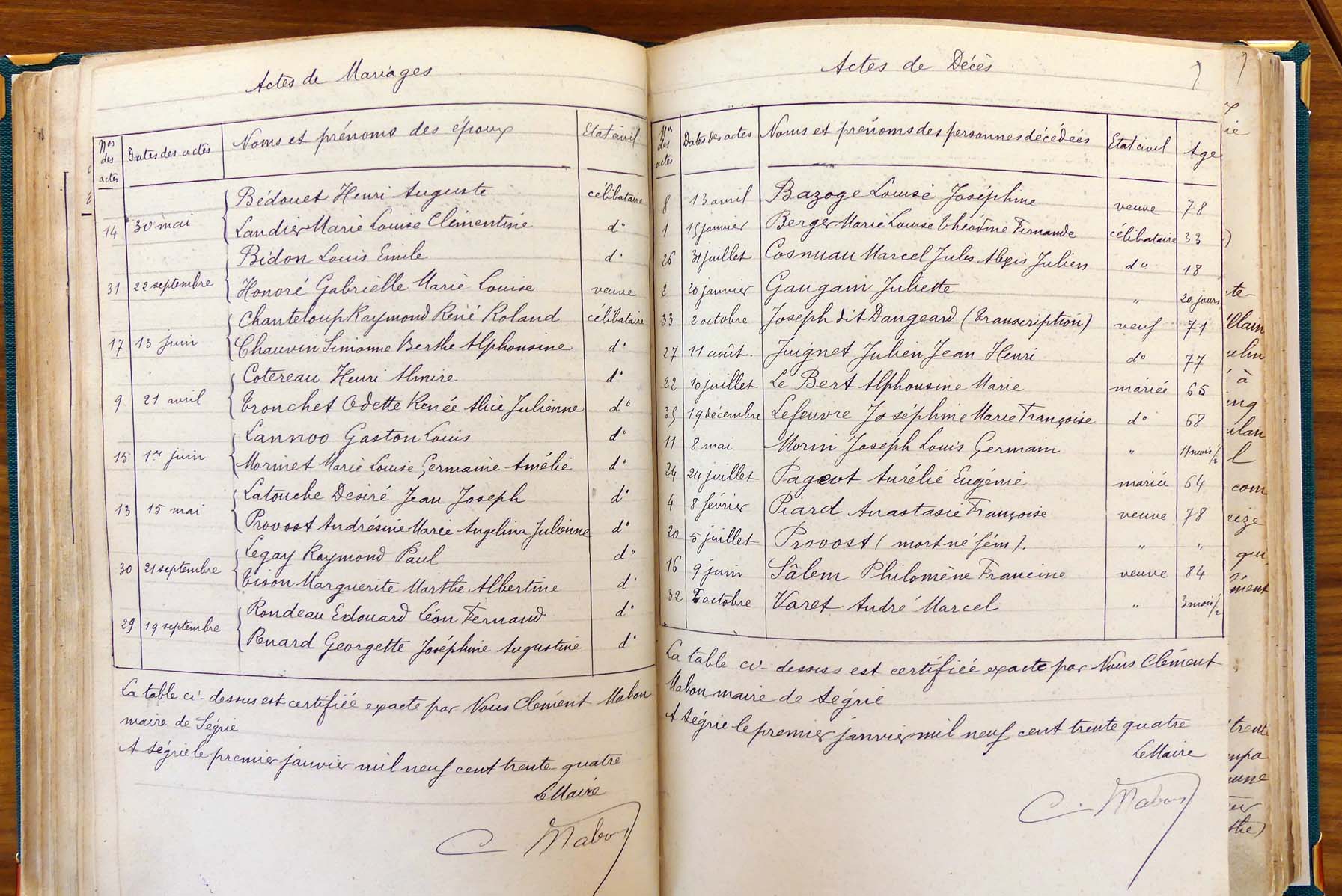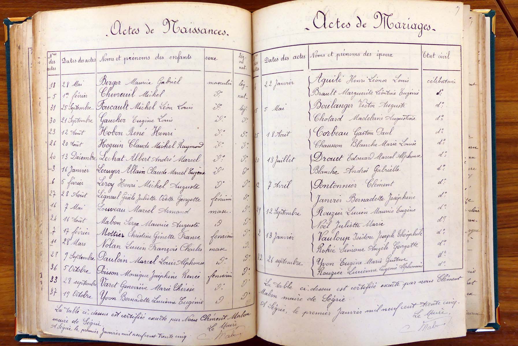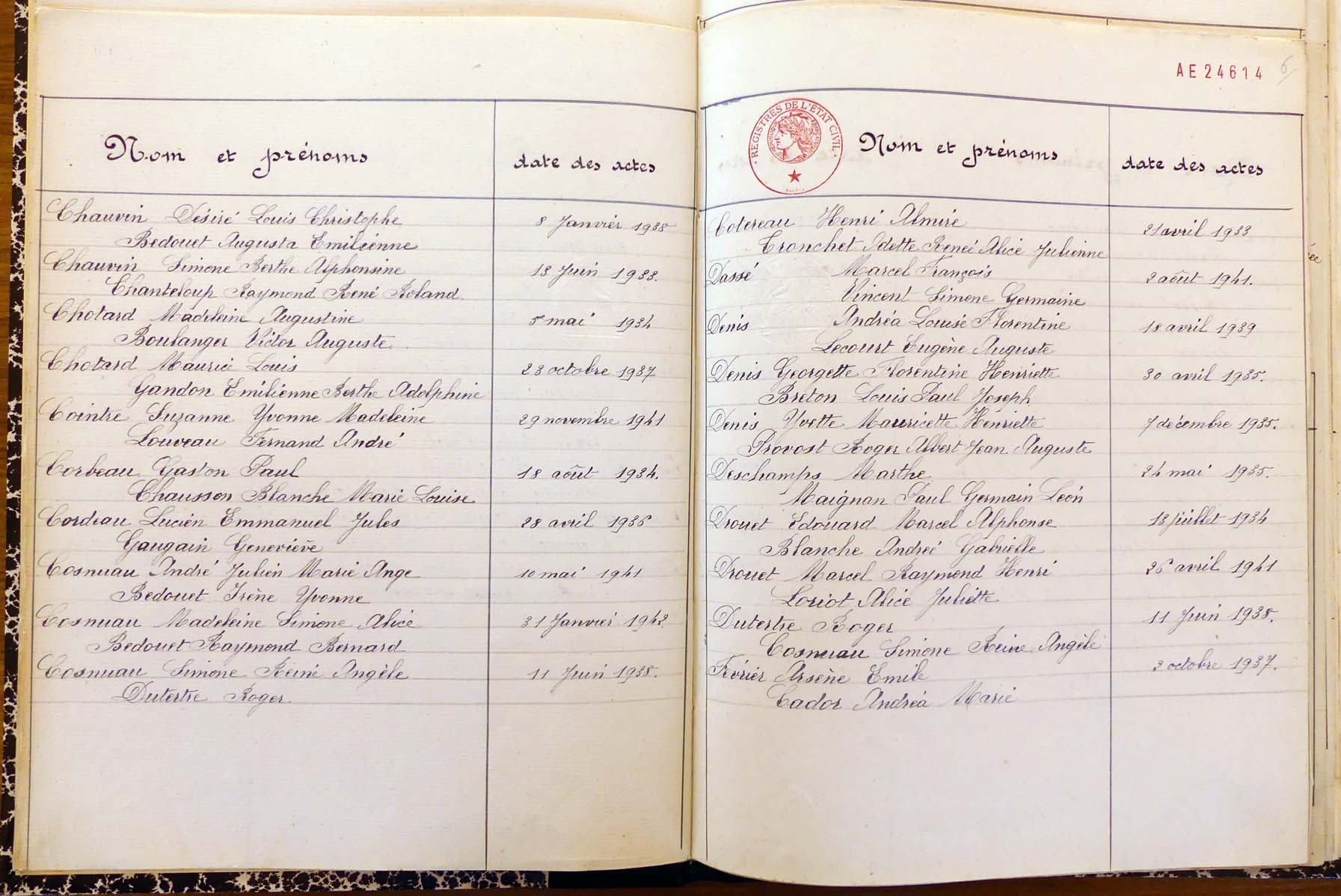 les registres de naissance, de mariage et de décès, ainsi que dans les