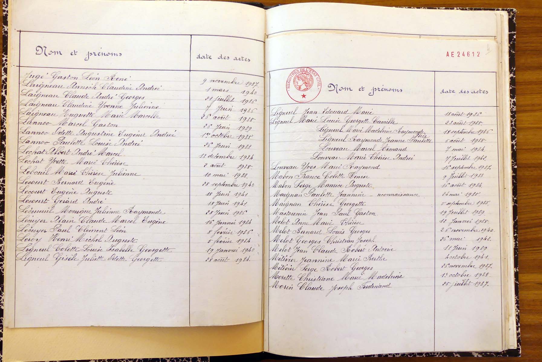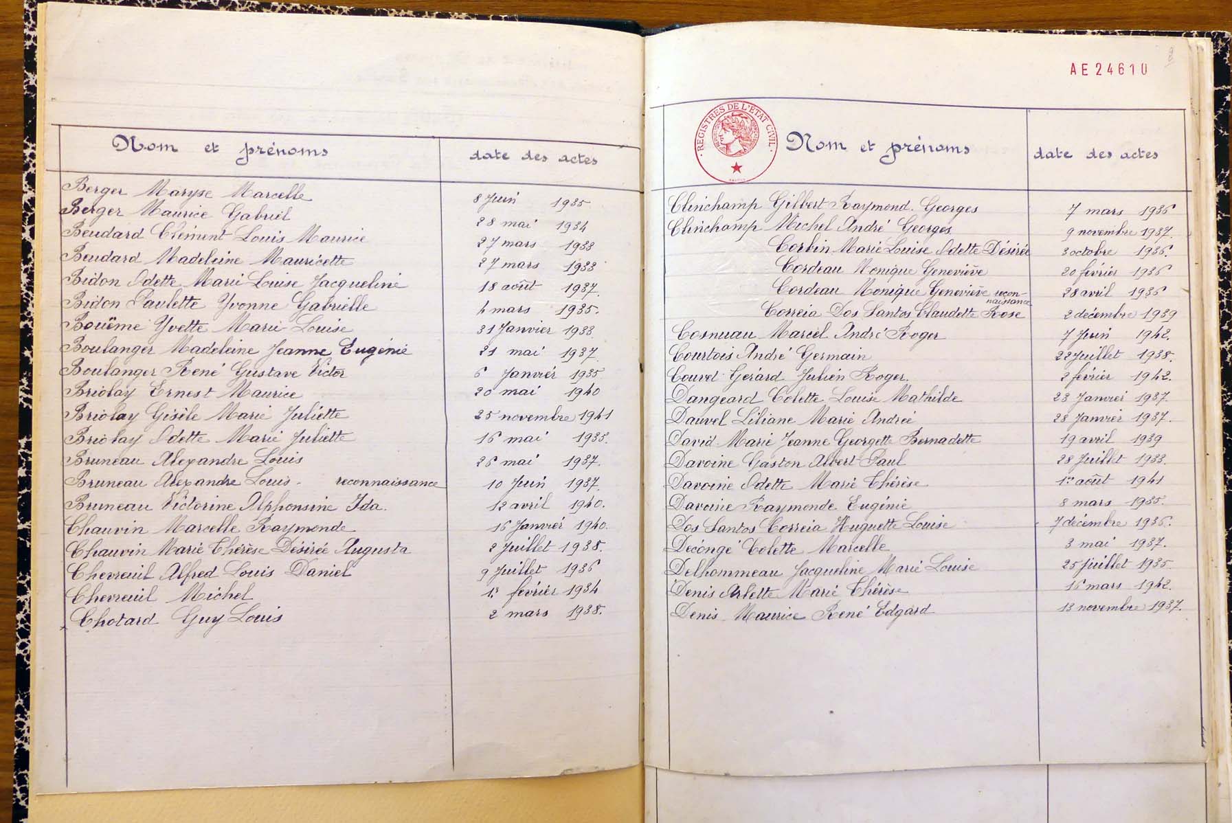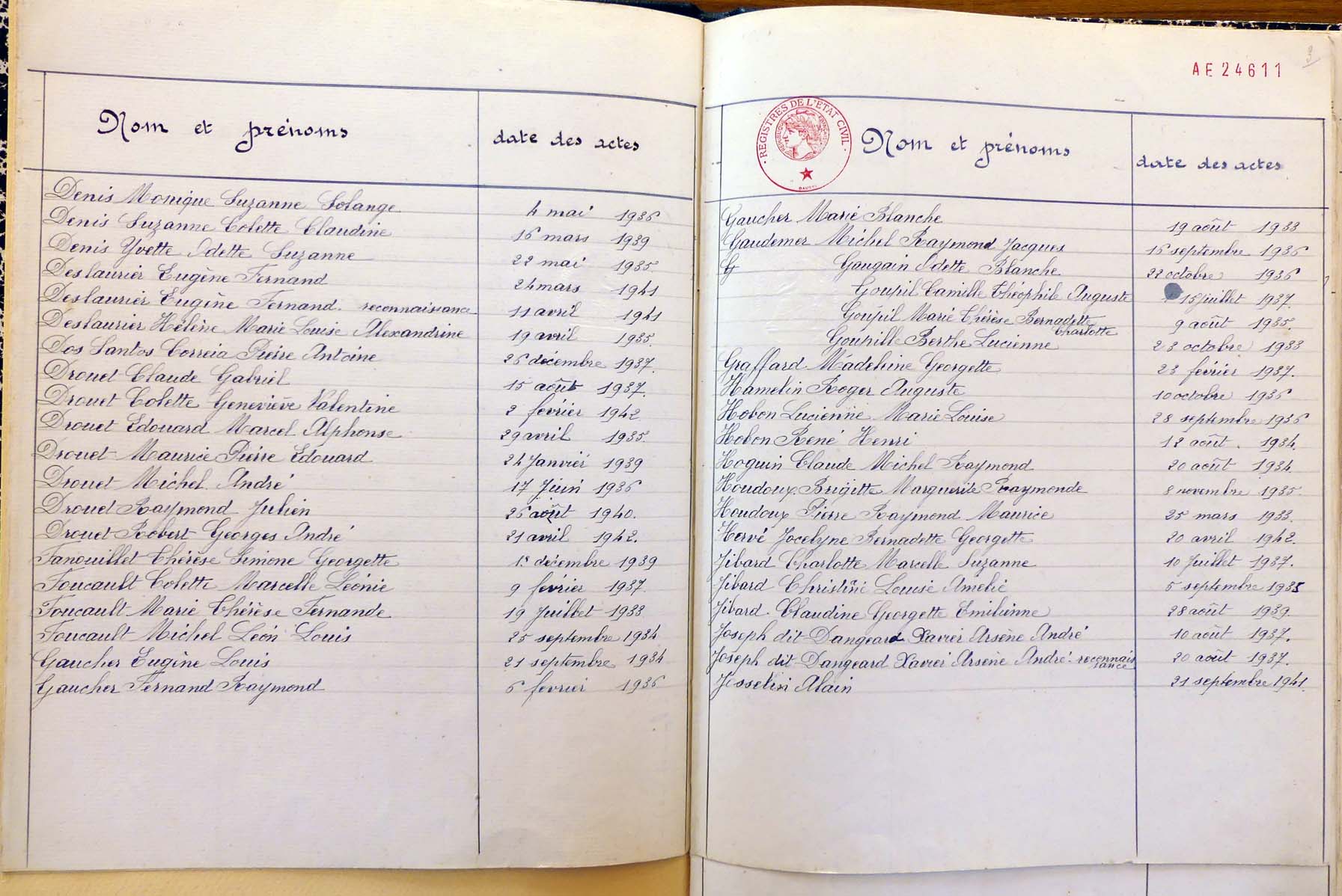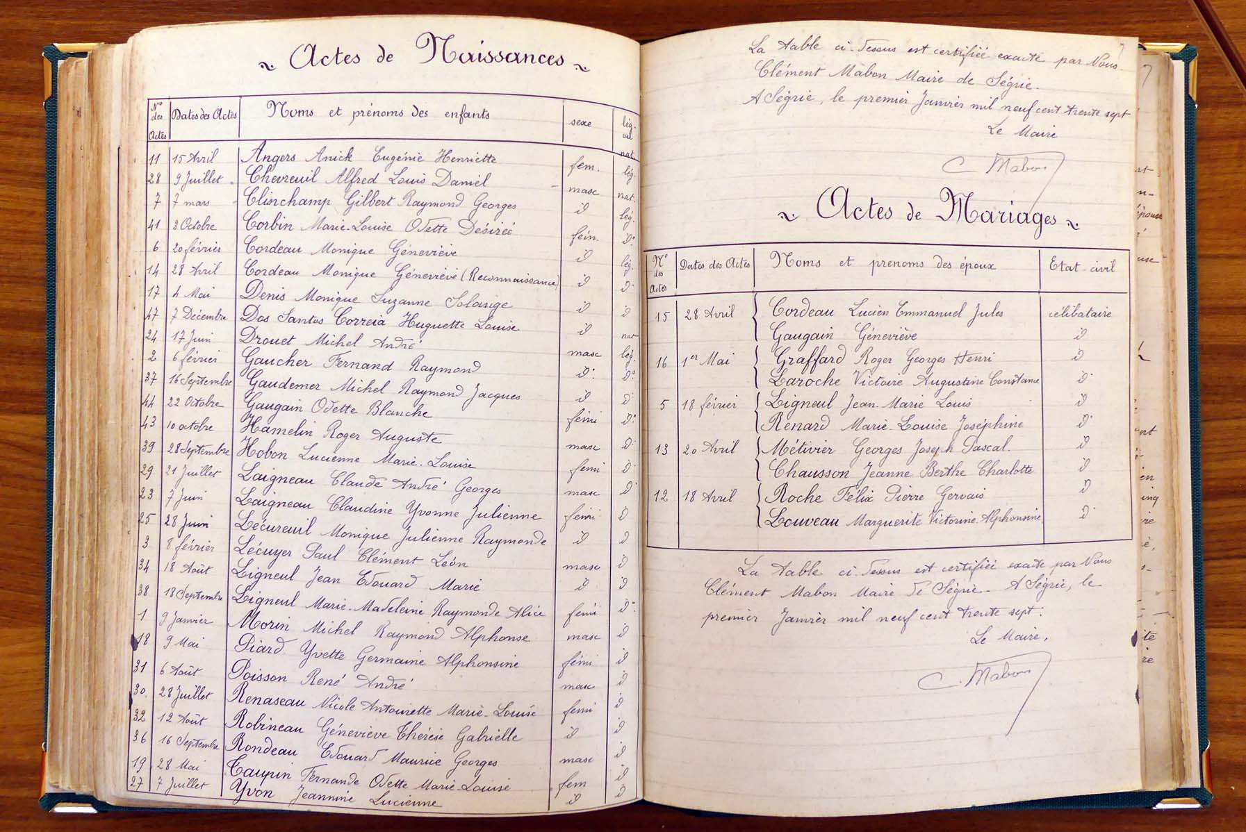 les registres de naissance, de mariage et de décès, ainsi que dans les