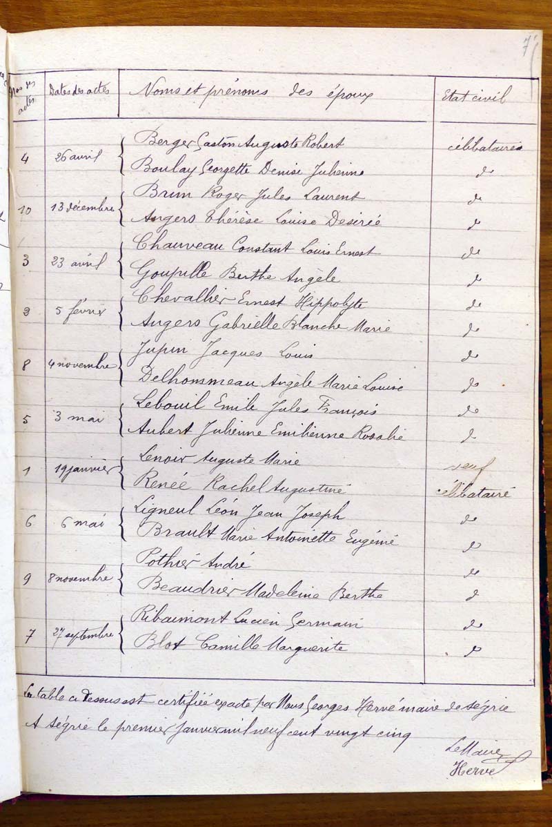 cette commune, les tables de cette période sont classées par année et non