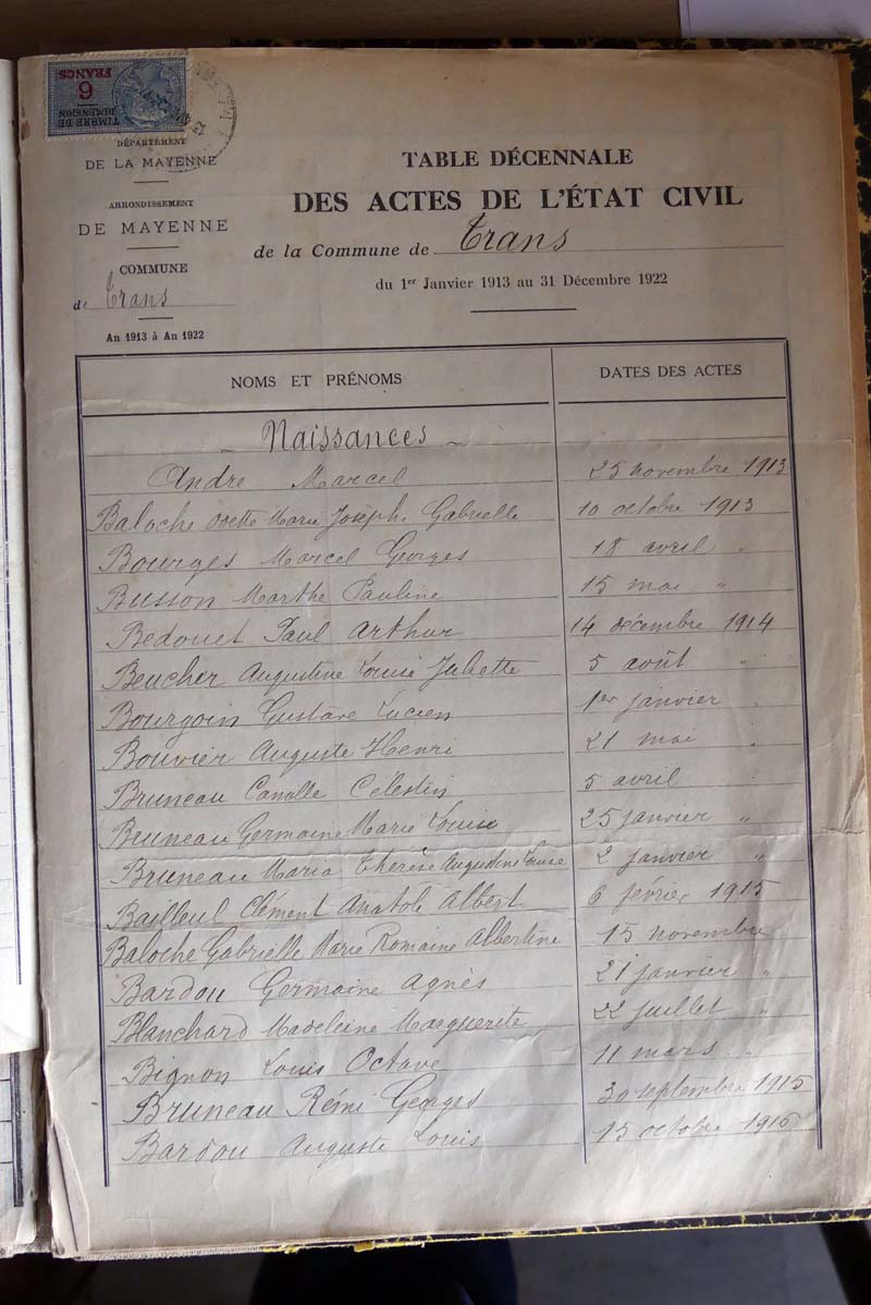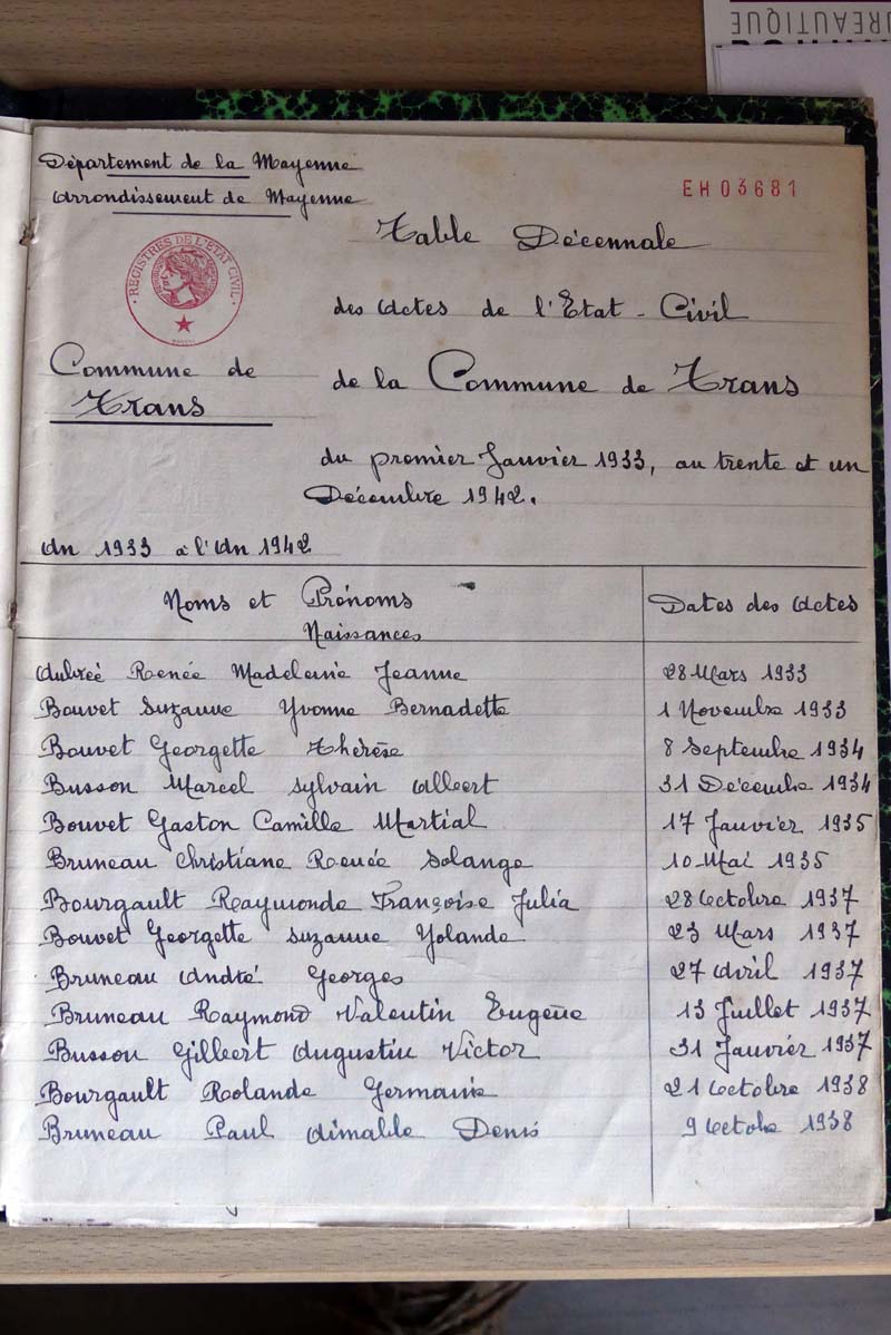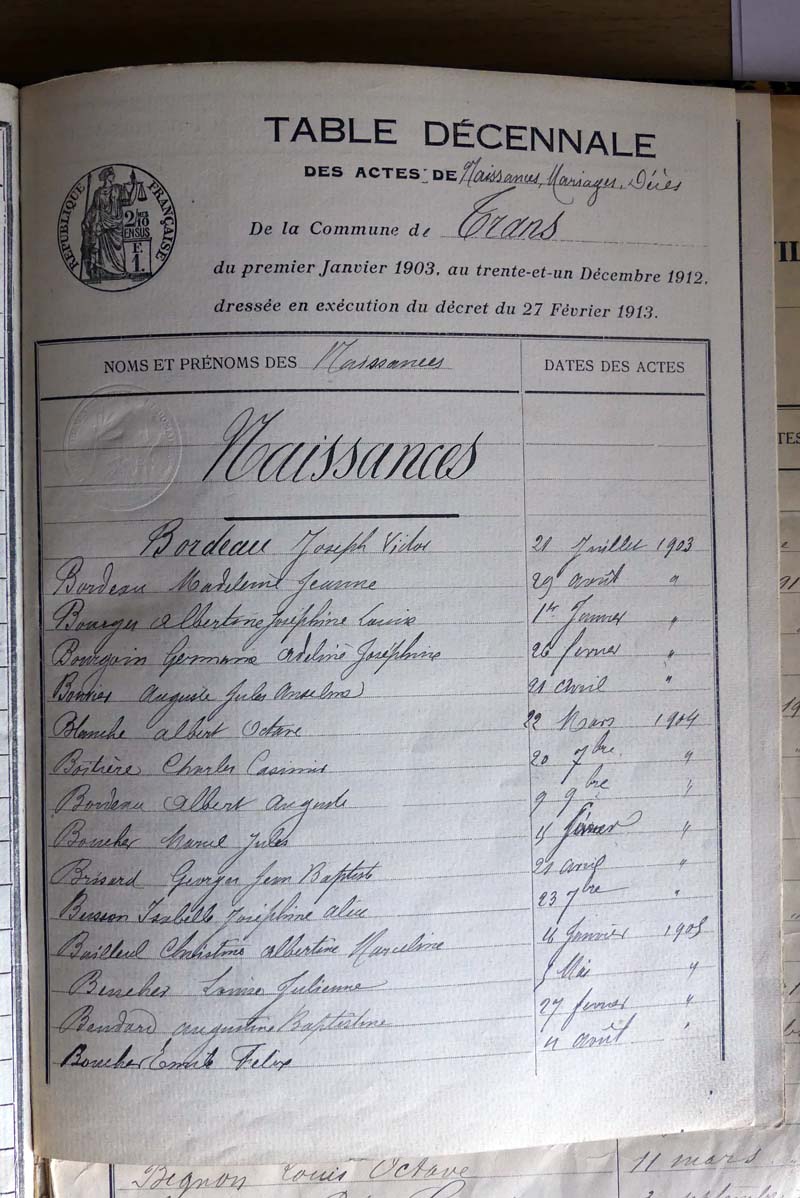 Ressources généalogiques de Trans - Tables décennales 1903 → 1942