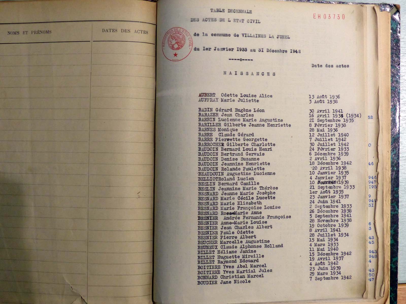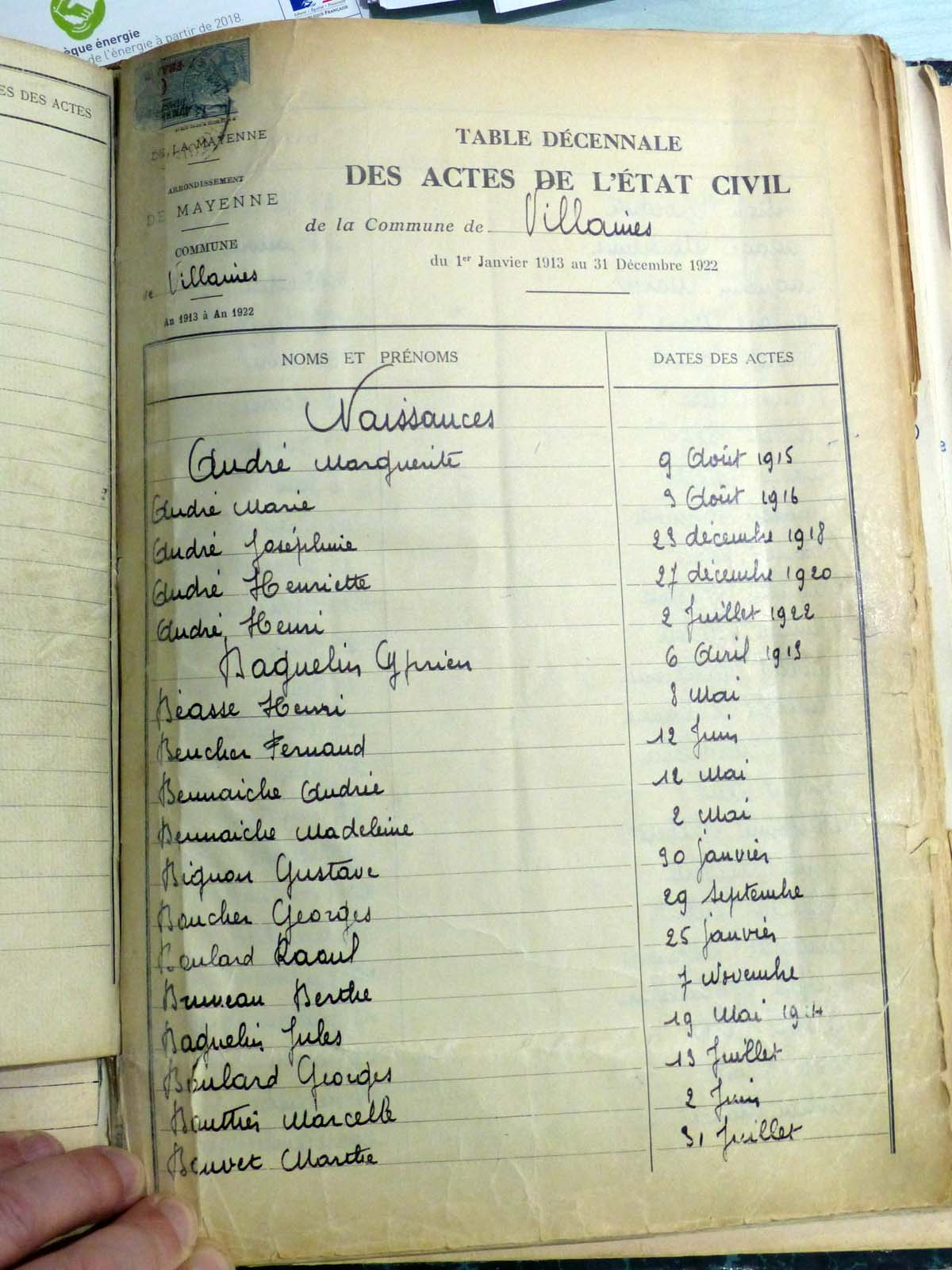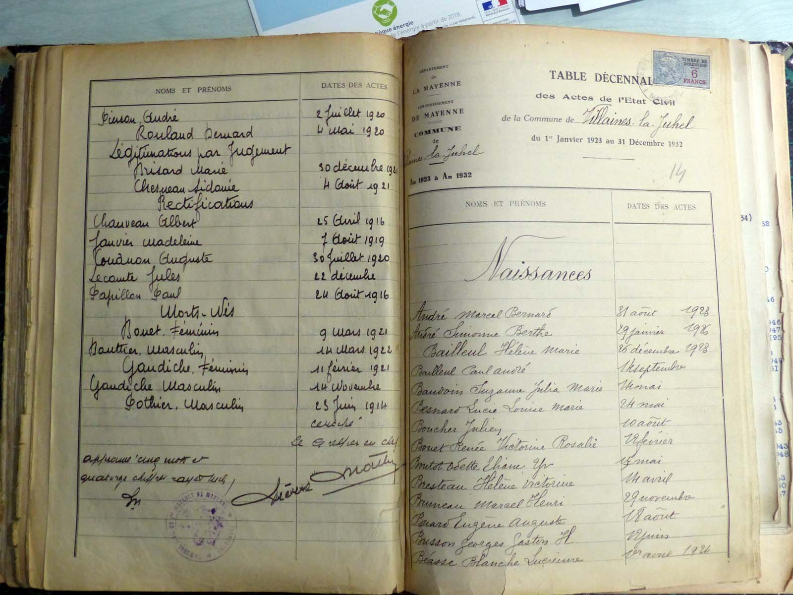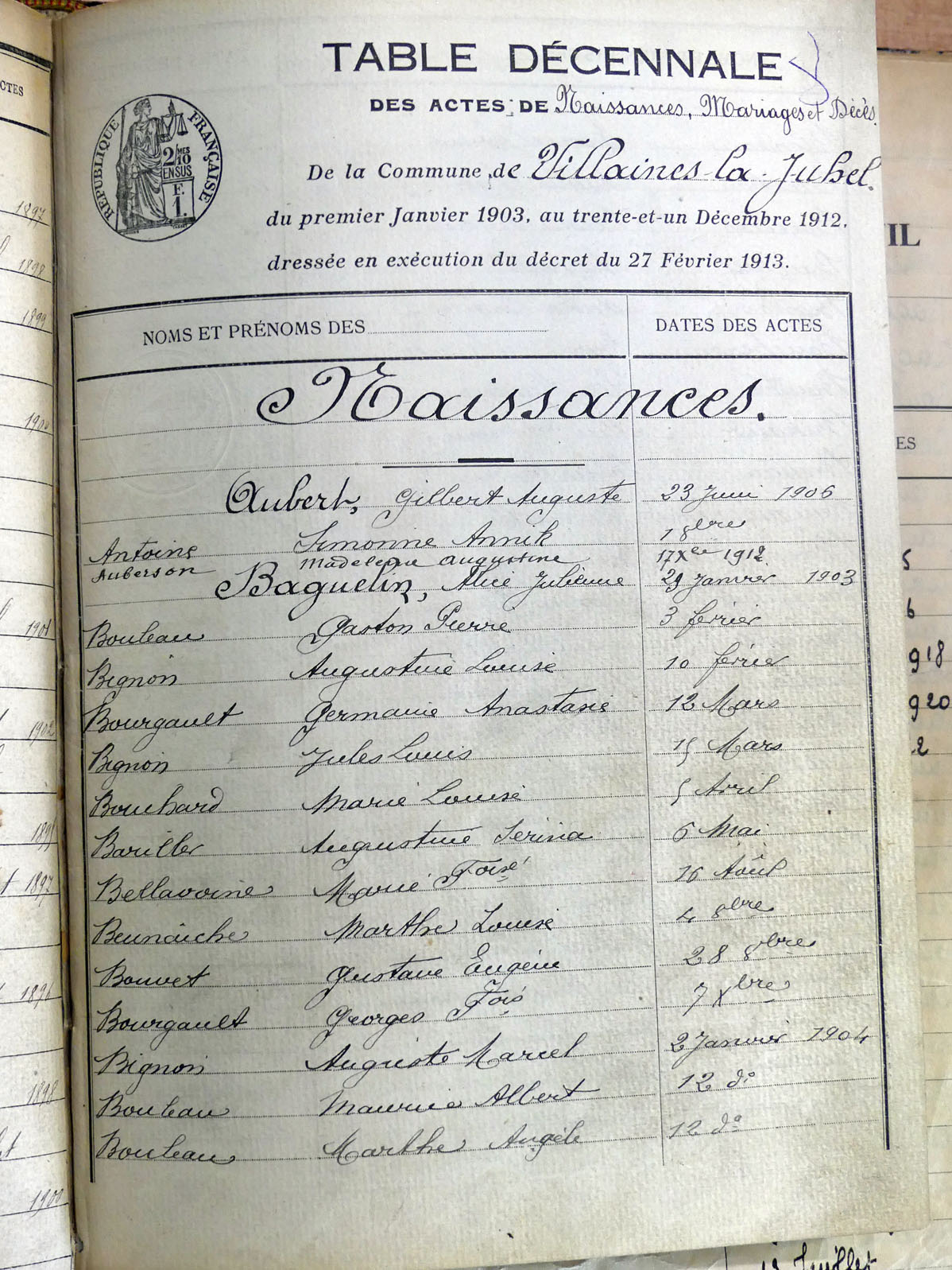 généalogiques de Villaines-la-Juhel - Tables décennales 1903 → 1942